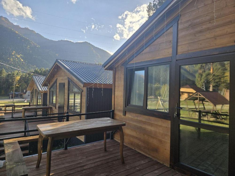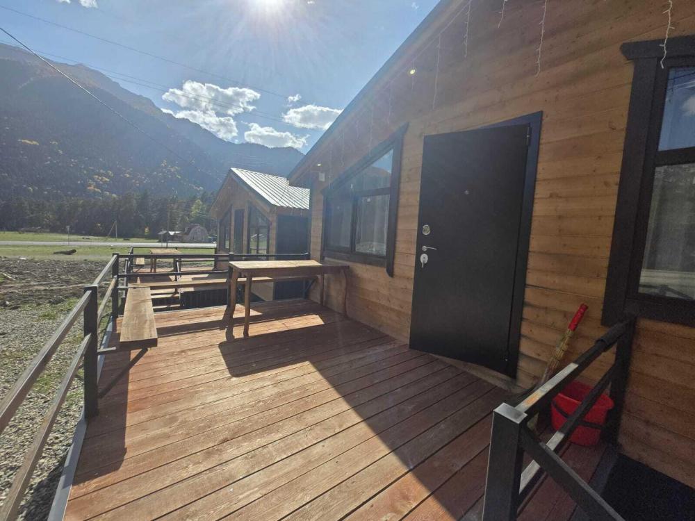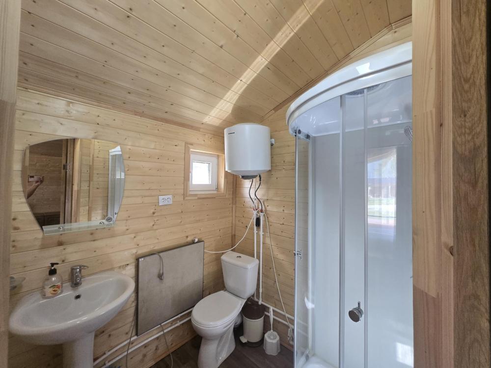 Дом отдельно стоящий площадь 25 кв. м. , комната просторная вмещает 4 гостя . В доме расположены две полуторные кровати , двухуровневая полуторная кровать , совмещенный санузел с душевой кабиной , кухонный гарнитур, холодильник, телевизор, WI-FI. Терраса стол, лавочки