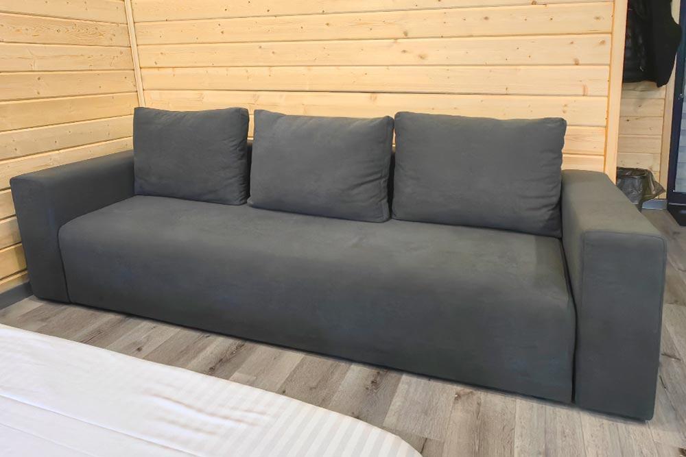 Двухэтажный дом с панорамными окнами и видом на лес и горы. На крыше коттеджа расположена просторная терраса с садовой мебелью и креслом-коконом. Часть террасы под крышей, часть открытая — идеальное место для завтрака на свежем воздухе или вечернего отдыха под звёздами. На первом этаже находится гостиная с диваном-кроватью и обеденной зоной. На втором этаже — небольшой балкон и изолированная спальня с двумя кроватями box-spring, которые можно соединять или раздвигать. В доме есть ванная комната с душем, тёплый пол, кондиционер, Wi-Fi, встроенные фильтры для питьевой воды и система «умный дом» с Алисой — всё для вашего комфорта. Для гостей на территории базы отдыха доступны баня и подогреваемый открытый бассейн. Услуги предоставляются за дополнительную плату.