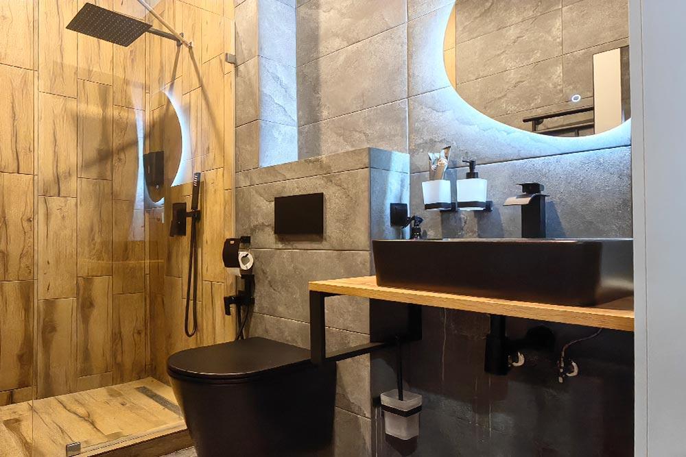 Двухэтажный дом с панорамными окнами и видом на лес и горы. Просторный и светлый, комфортно размещает до 6 гостей, при необходимости предусмотрены дополнительные спальные места для 7–8 человек. Дети до 4 лет проживают бесплатно без отдельного места. На первом этаже находится гостиная с диваном, обеденной зоной и выходом на террасу с мебелью — отличное место для завтрака или вечернего отдыха на свежем воздухе. На втором этаже две спальни с кроватями king-size и ортопедическими матрасами, а в одной из зон есть кресло, которое раскладывается в дополнительное спальное место. Для гостей на территории базы отдыха доступны баня и подогреваемый открытый бассейн. Услуги предоставляются за дополнительную плату. В доме есть ванная комната с душем, дополнительные удобства включают тёплый пол, кондиционер, Wi-Fi и систему «умный дом» с Алисой. Для гостей на территории базы отдыха доступны баня и подогреваемый открытый бассейн. Услуги предоставляются за дополнительную плату.