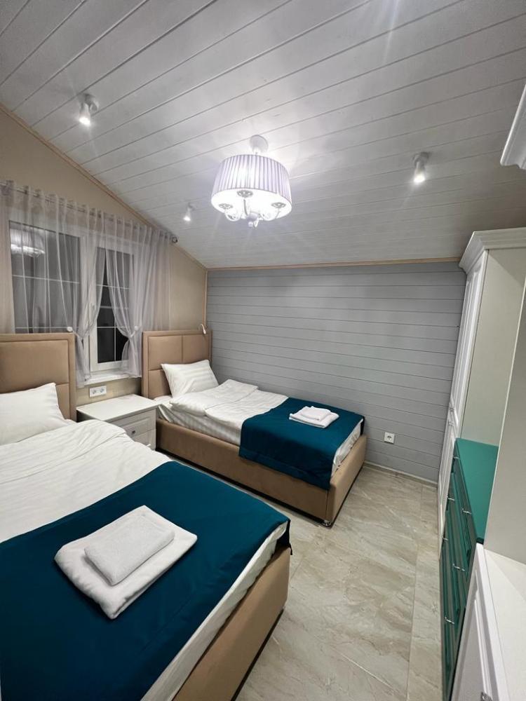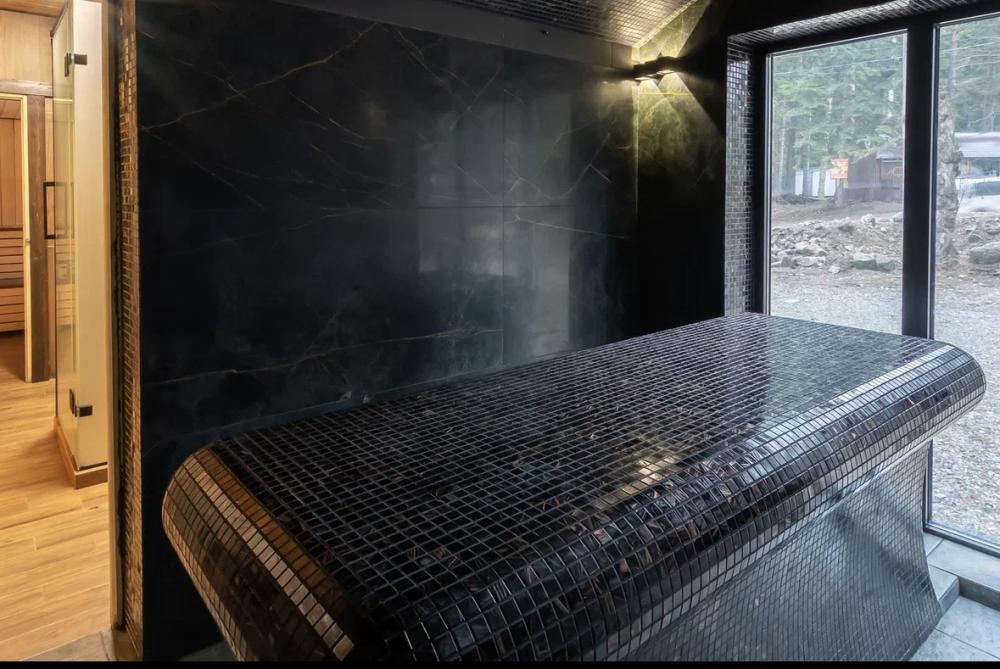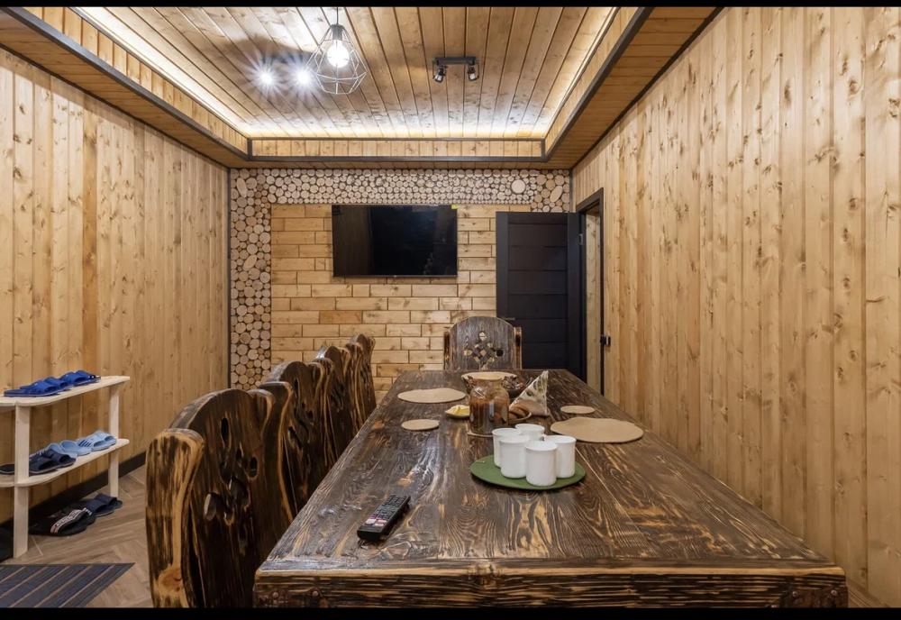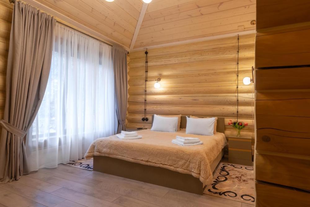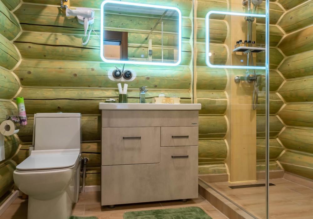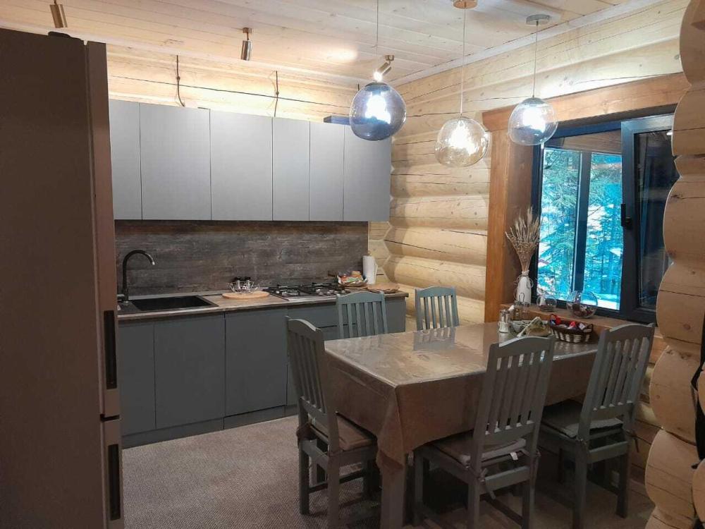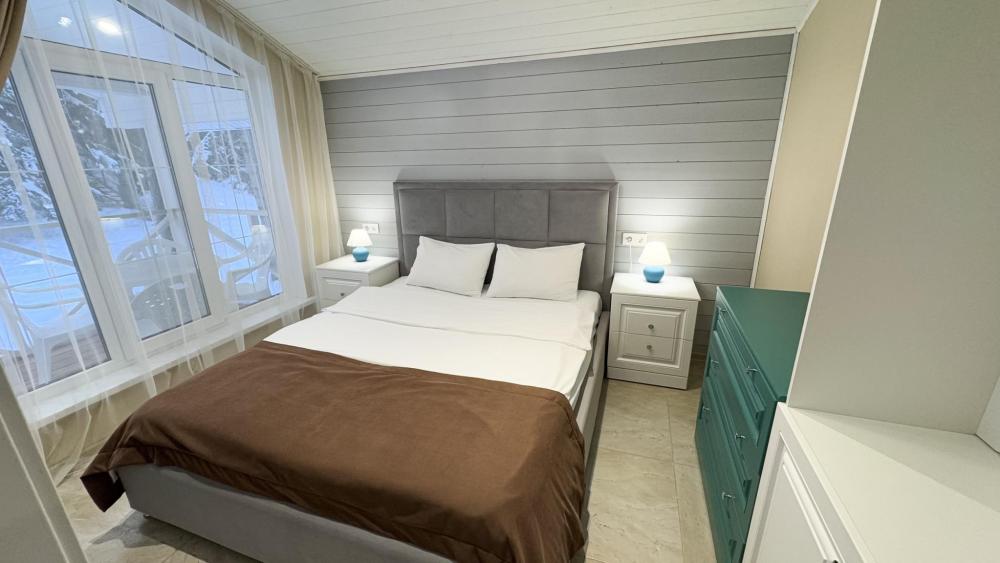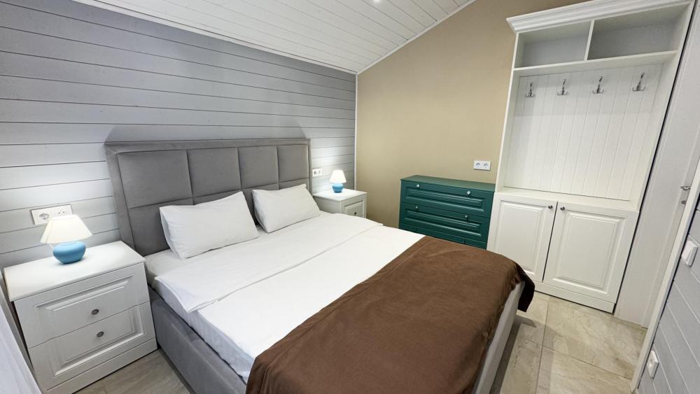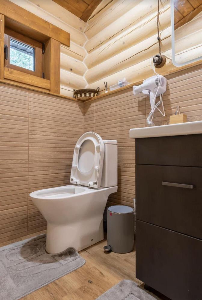 Просторный эко-дом с двумя спальнями с двуспальными кроватями и двухместными раскладными диванами, спальней с двуспальной кроватью, грандиозной гостиной с двухместным раскладными диваном и двумя раскладными креслами, лаунж-зоной с качелями и двумя раскладными креслами, полноценной кухней, открытыми террасами и беседкой.
