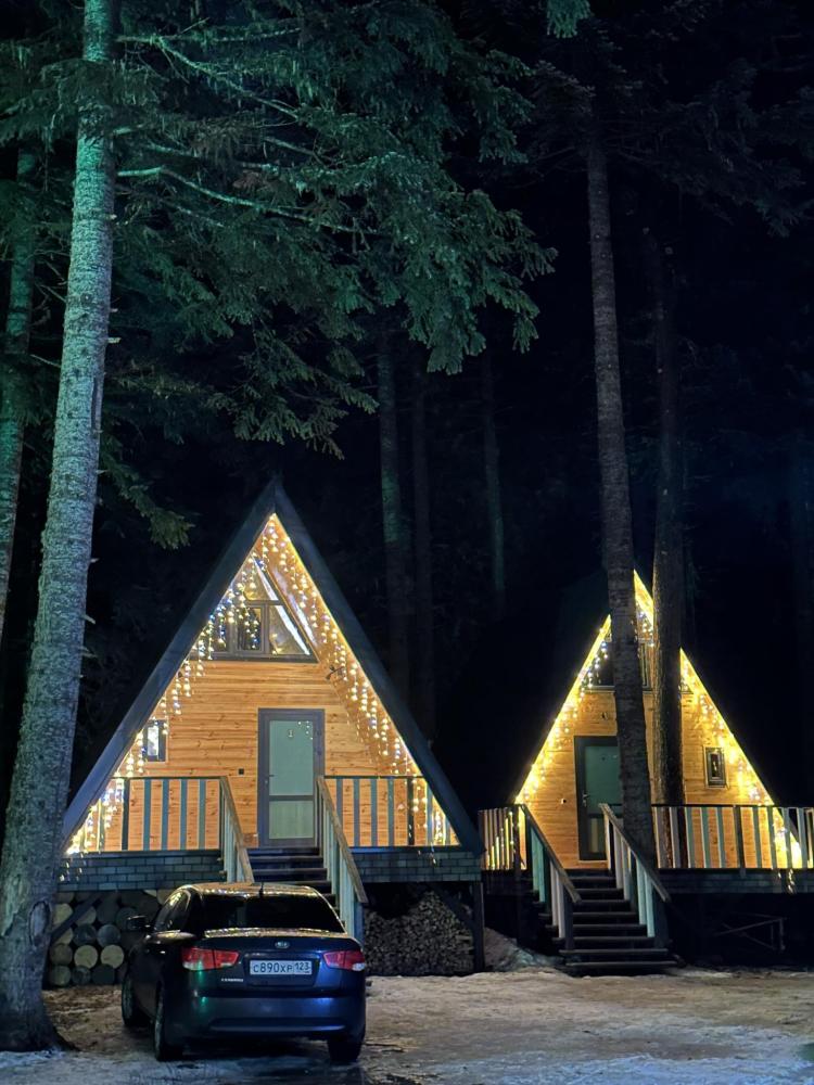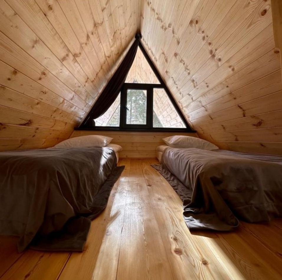Уютный А-фрейм, оборудованный всем необходимым для комфортного проживания. В А-фрейме две односпальные кровати, раскладной двуспальный диван, кухонная зона, санузел с душем, терраса и беседка.