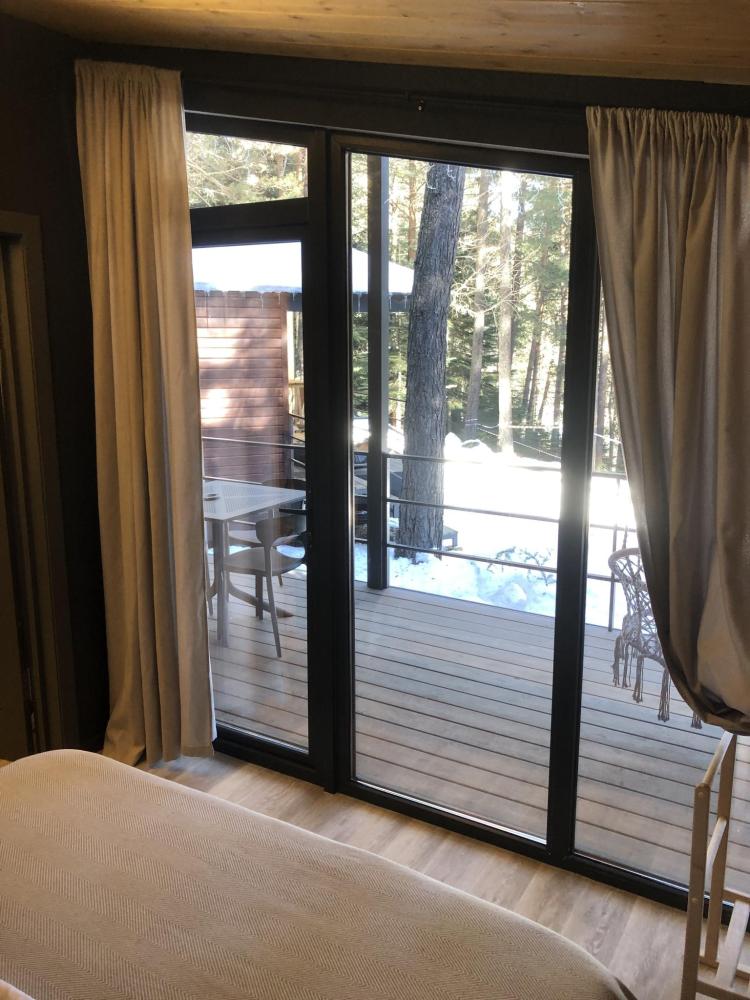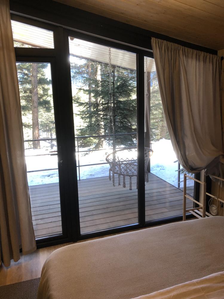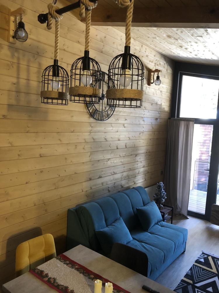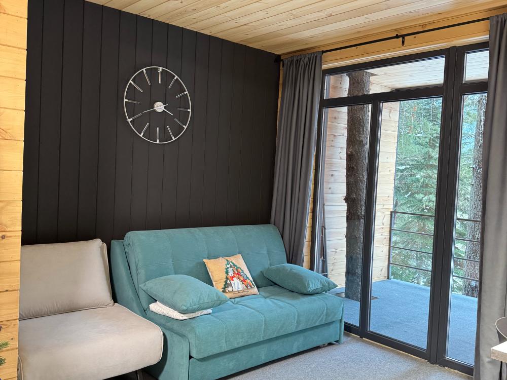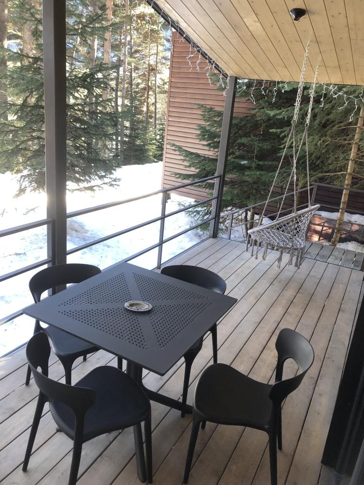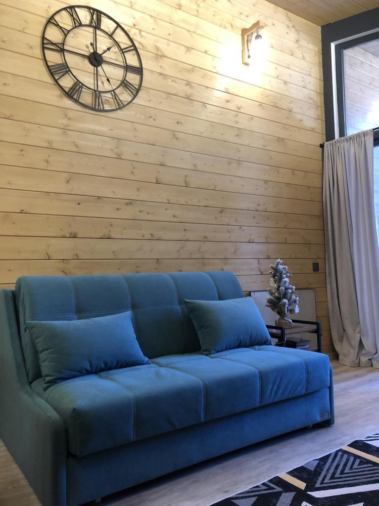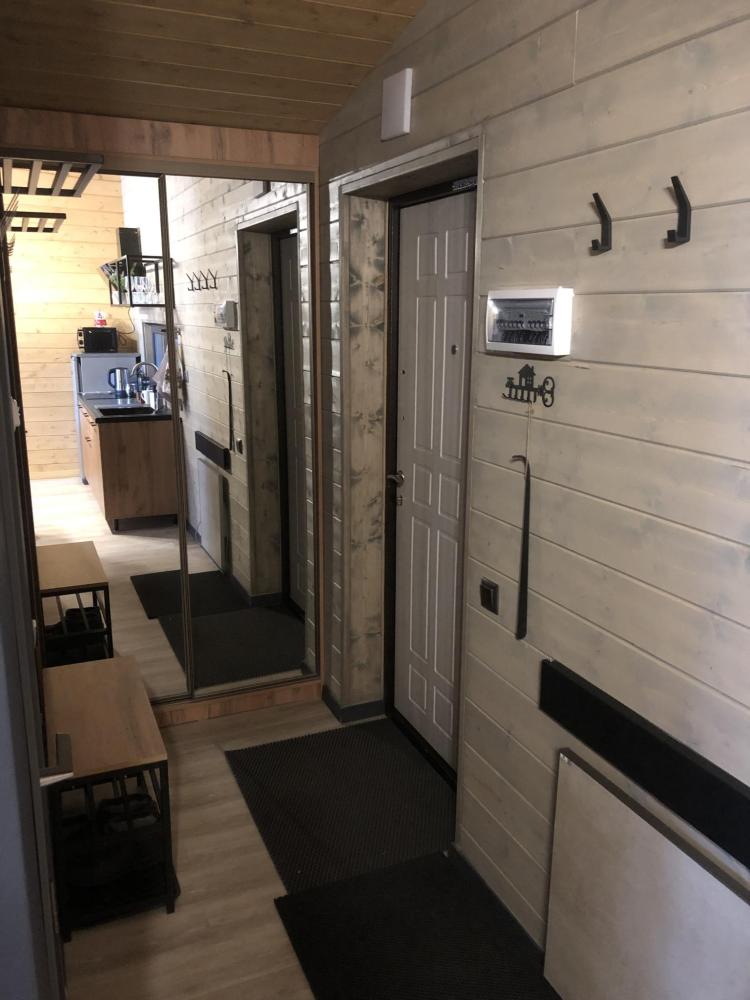 Каждый из двух домов рассчитан на четыре человека, при необходимости размещения пятого человека бесплатно предоставляется евро-раскладушка. В домах есть большая терраса со столиком и гамаком-качалкой. Прихожая дома оборудована встроенным шкафом для одежды и местом для чемодана, теплой стеной для сушки верхней одежды а также вешалкой и обувницей. Санузел оборудован бойлером, современной сантехникой, гигиеническим душем, душевой зоной, феном, диспенсерами со средствами гигиены, комплектом полотенец. Уютная кухня-гостиная оснащена всем необходимым оборудованием(холодильник, индукционная плита, микроволновая печь, мойка, вытяжка, посуда, эл.чайник),обеденным столом, раскладывающимся двухместным диваном, телевизором. В доме есть отдельная спальня с 2-х спальной кроватью с ортопедическим матрасом. Для маленьких детей предоставляется кроватка-манеж и стульчик для кормления. Панорамные окна в гостиной и спальне позволят наслаждаться прекрасным видом леса и гор не выходя из дома. Отапливаются дома инфракрасными обогревателями которые не высушивают воздух и создают тепло и уют.