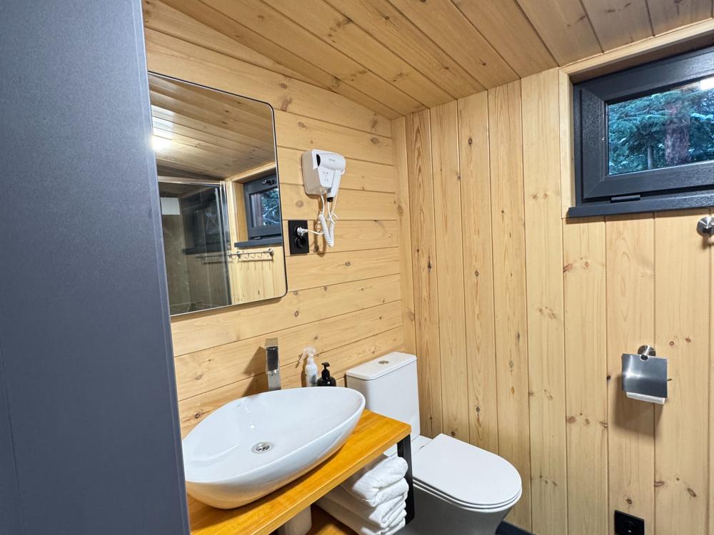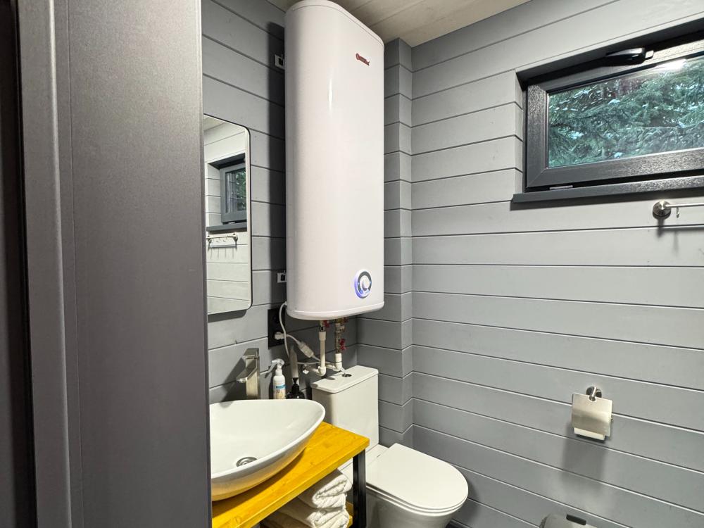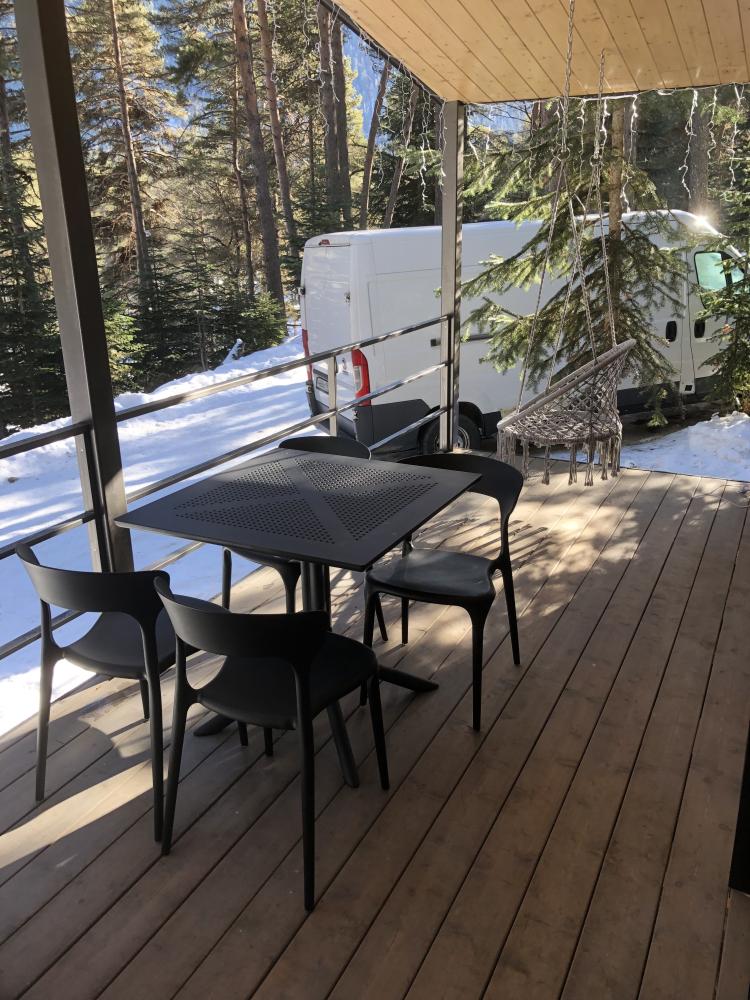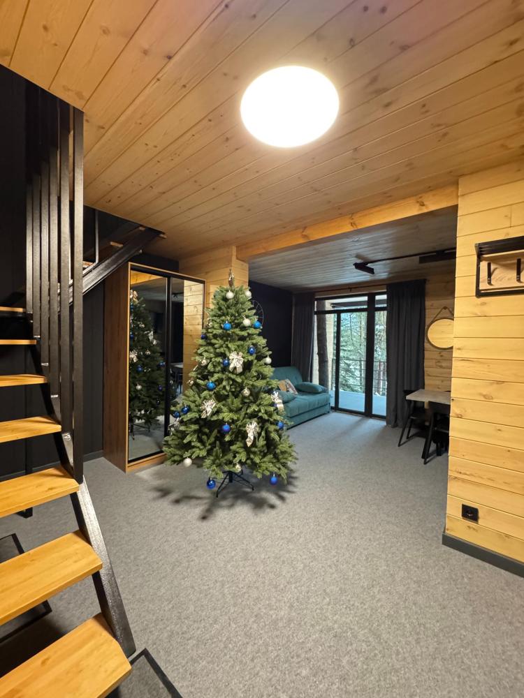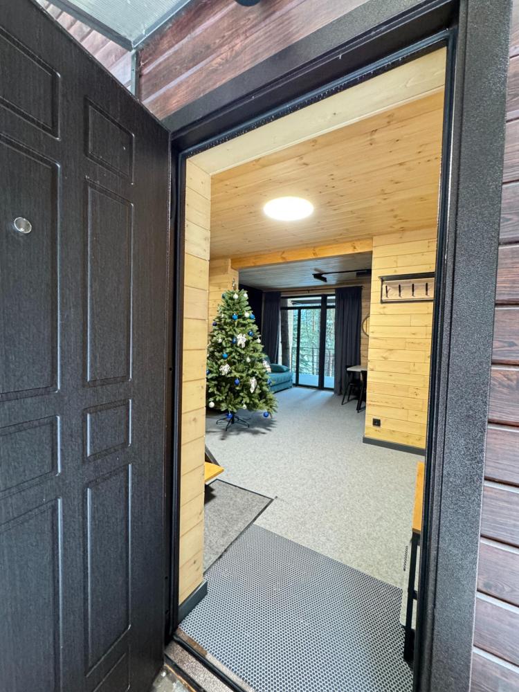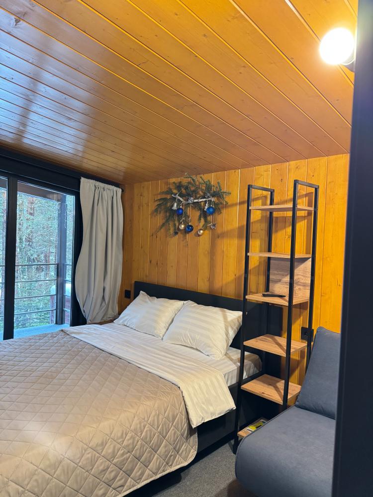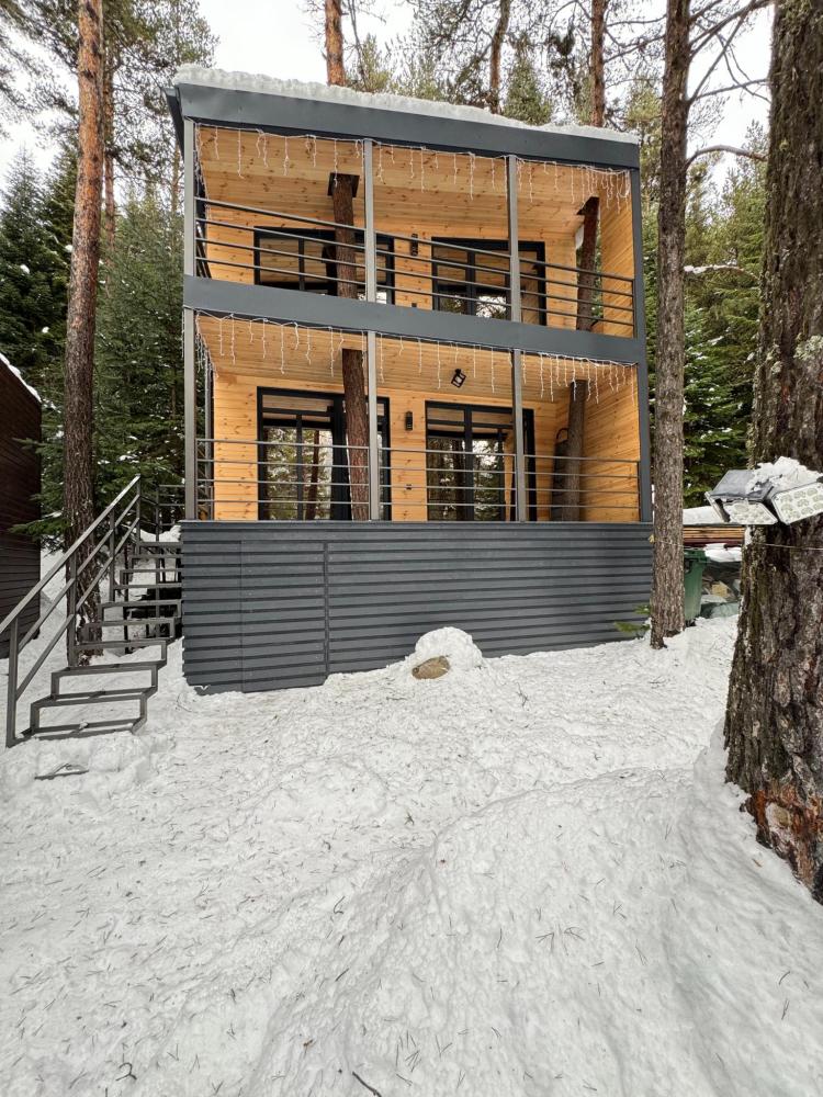 Каждый из двух домов рассчитан на четыре человека, при необходимости размещения пятого человека бесплатно предоставляется евро-раскладушка. В домах есть большая терраса со столиком и гамаком-качалкой. Прихожая дома оборудована встроенным шкафом для одежды и местом для чемодана, теплой стеной для сушки верхней одежды а также вешалкой и обувницей. Санузел оборудован бойлером, современной сантехникой, гигиеническим душем, душевой зоной, феном, диспенсерами со средствами гигиены, комплектом полотенец. Уютная кухня-гостиная оснащена всем необходимым оборудованием(холодильник, индукционная плита, микроволновая печь, мойка, вытяжка, посуда, эл.чайник),обеденным столом, раскладывающимся двухместным диваном, телевизором. В доме есть отдельная спальня с 2-х спальной кроватью с ортопедическим матрасом. Для маленьких детей предоставляется кроватка-манеж и стульчик для кормления. Панорамные окна в гостиной и спальне позволят наслаждаться прекрасным видом леса и гор не выходя из дома. Отапливаются дома инфракрасными обогревателями которые не высушивают воздух и создают тепло и уют.