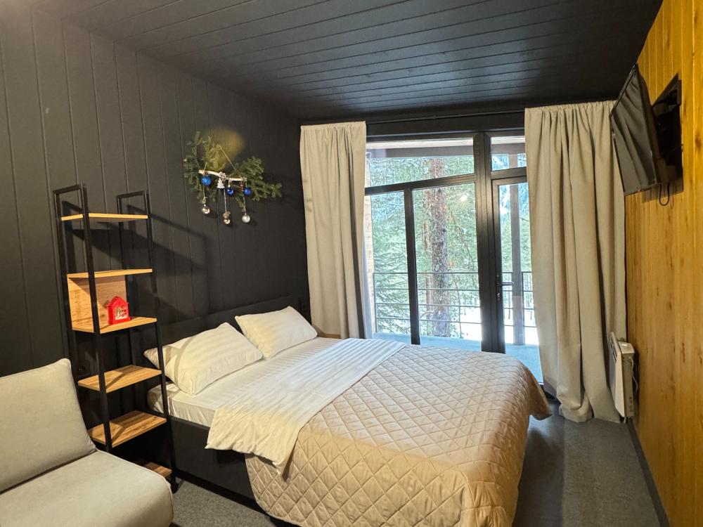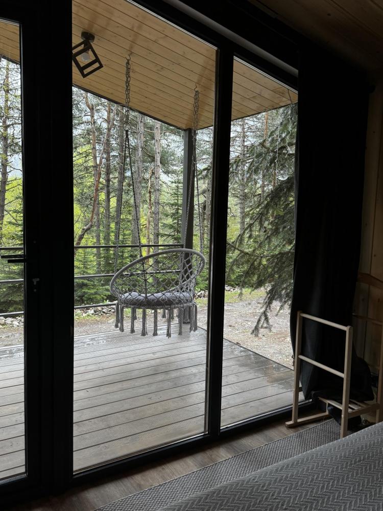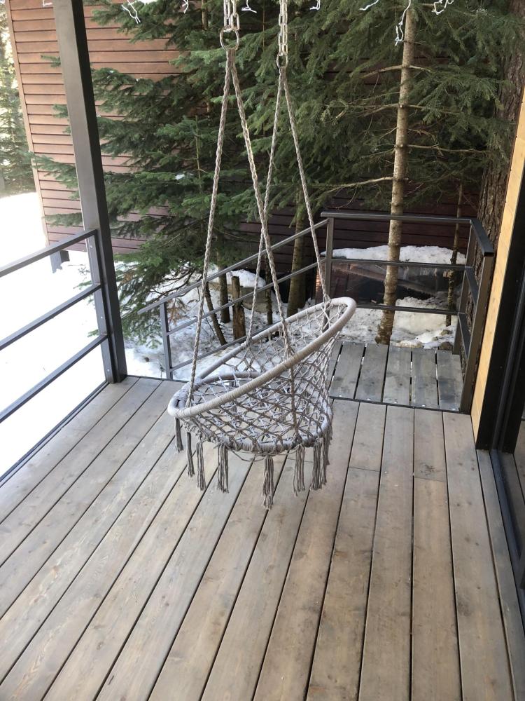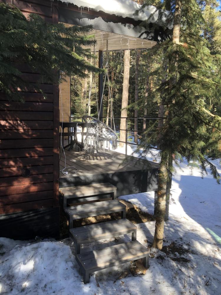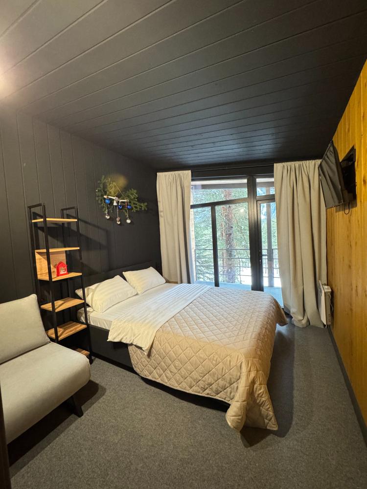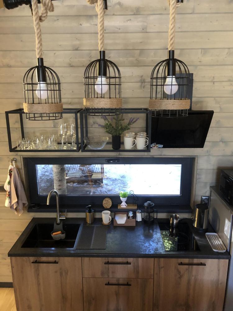 Каждый из двух домов рассчитан на четыре человека, при необходимости размещения пятого человека бесплатно предоставляется евро-раскладушка. В домах есть большая терраса со столиком и гамаком-качалкой. Прихожая дома оборудована встроенным шкафом для одежды и местом для чемодана, теплой стеной для сушки верхней одежды а также вешалкой и обувницей. Санузел оборудован бойлером, современной сантехникой, гигиеническим душем, душевой зоной, феном, диспенсерами со средствами гигиены, комплектом полотенец. Уютная кухня-гостиная оснащена всем необходимым оборудованием(холодильник, индукционная плита, микроволновая печь, мойка, вытяжка, посуда, эл.чайник),обеденным столом, раскладывающимся двухместным диваном, телевизором. В доме есть отдельная спальня с 2-х спальной кроватью с ортопедическим матрасом. Для маленьких детей предоставляется кроватка-манеж и стульчик для кормления. Панорамные окна в гостиной и спальне позволят наслаждаться прекрасным видом леса и гор не выходя из дома. Отапливаются дома инфракрасными обогревателями которые не высушивают воздух и создают тепло и уют.