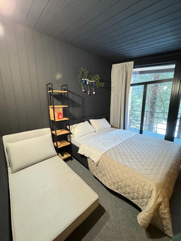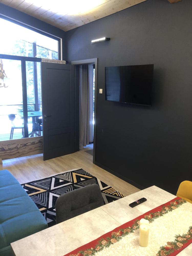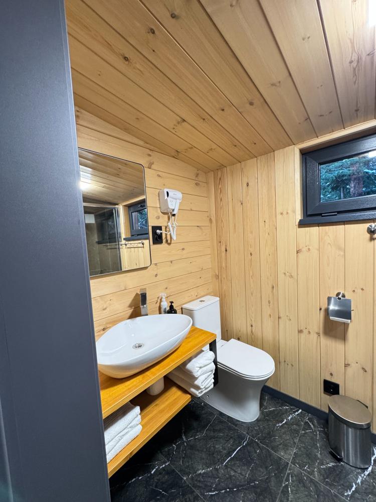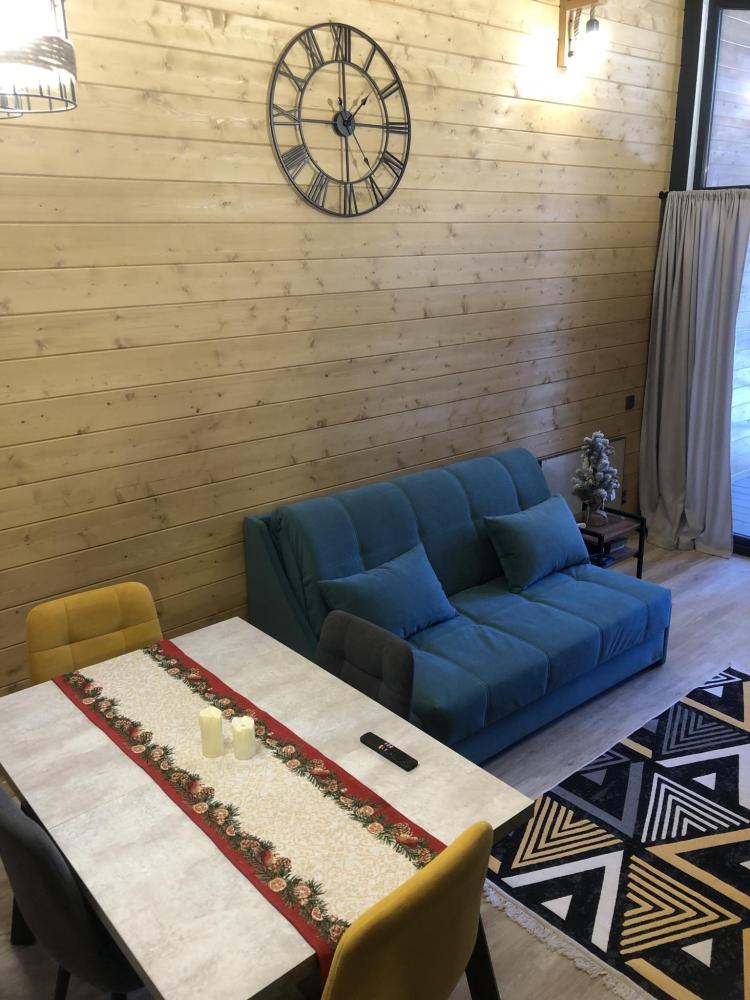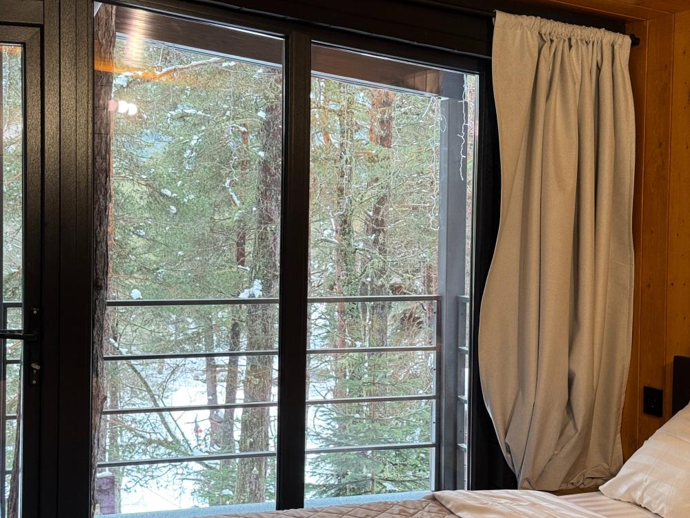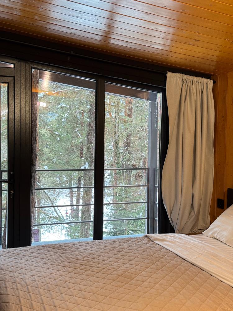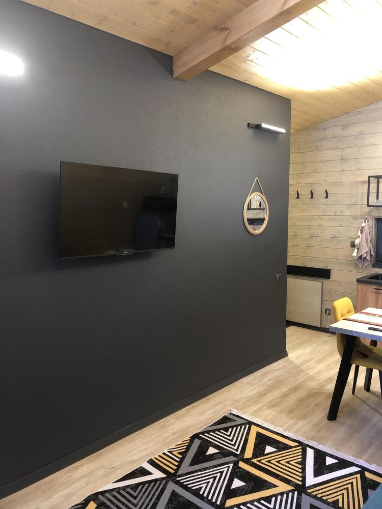 Каждый из двух домов рассчитан на четыре человека, при необходимости размещения пятого человека бесплатно предоставляется евро-раскладушка. В домах есть большая терраса со столиком и гамаком-качалкой. Прихожая дома оборудована встроенным шкафом для одежды и местом для чемодана, теплой стеной для сушки верхней одежды а также вешалкой и обувницей. Санузел оборудован бойлером, современной сантехникой, гигиеническим душем, душевой зоной, феном, диспенсерами со средствами гигиены, комплектом полотенец. Уютная кухня-гостиная оснащена всем необходимым оборудованием(холодильник, индукционная плита, микроволновая печь, мойка, вытяжка, посуда, эл.чайник),обеденным столом, раскладывающимся двухместным диваном, телевизором. В доме есть отдельная спальня с 2-х спальной кроватью с ортопедическим матрасом. Для маленьких детей предоставляется кроватка-манеж и стульчик для кормления. Панорамные окна в гостиной и спальне позволят наслаждаться прекрасным видом леса и гор не выходя из дома. Отапливаются дома инфракрасными обогревателями которые не высушивают воздух и создают тепло и уют.