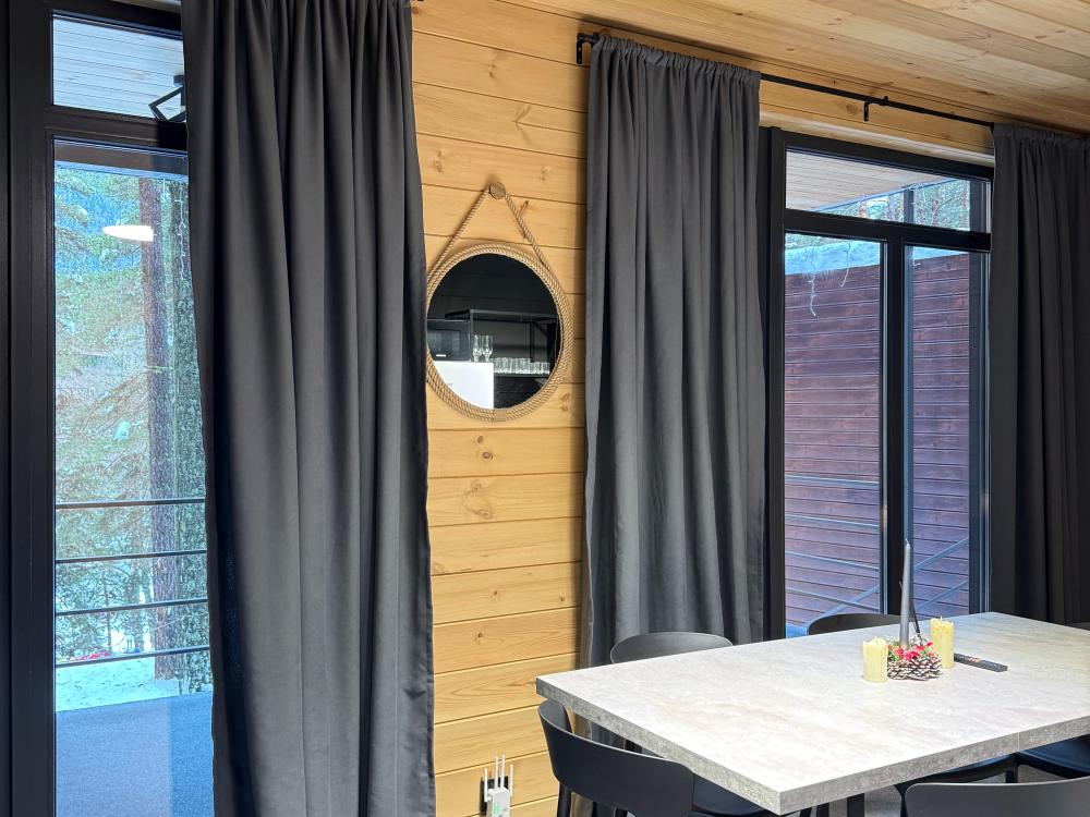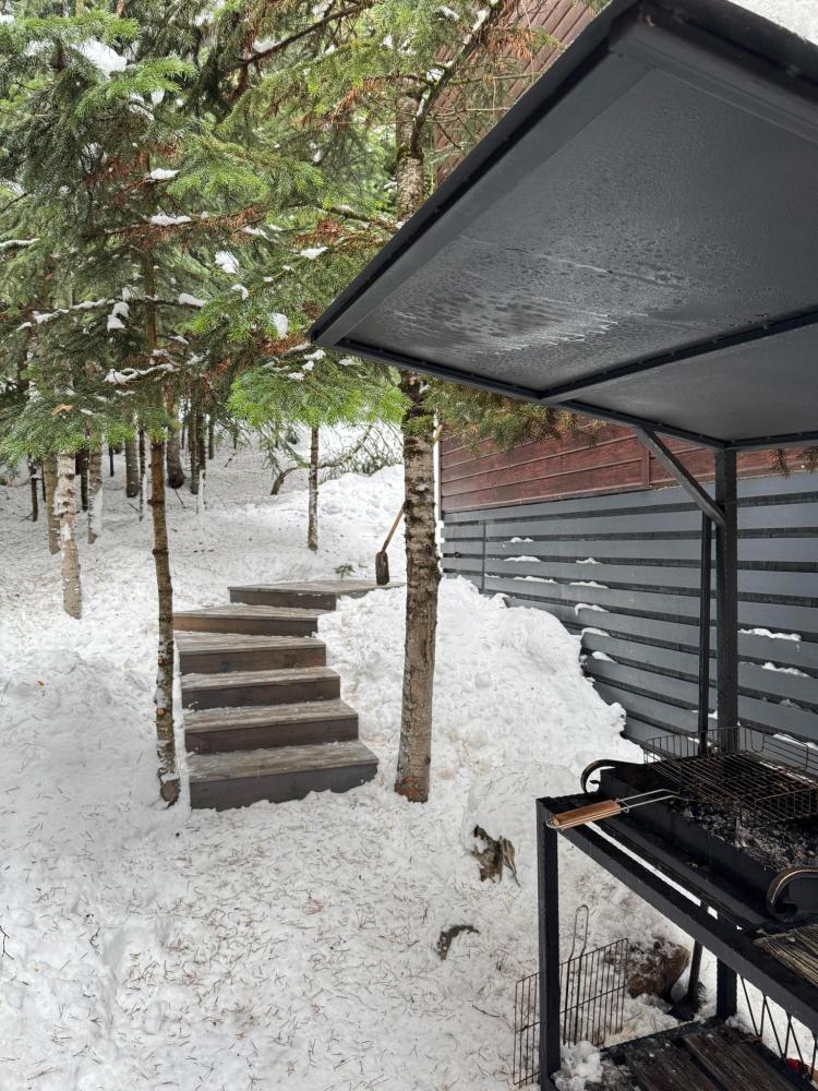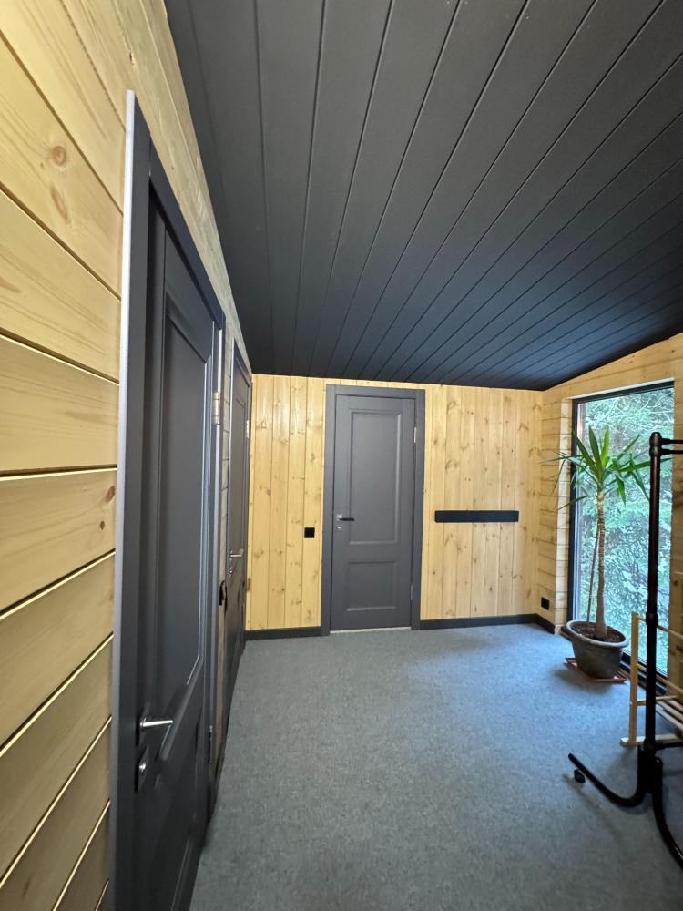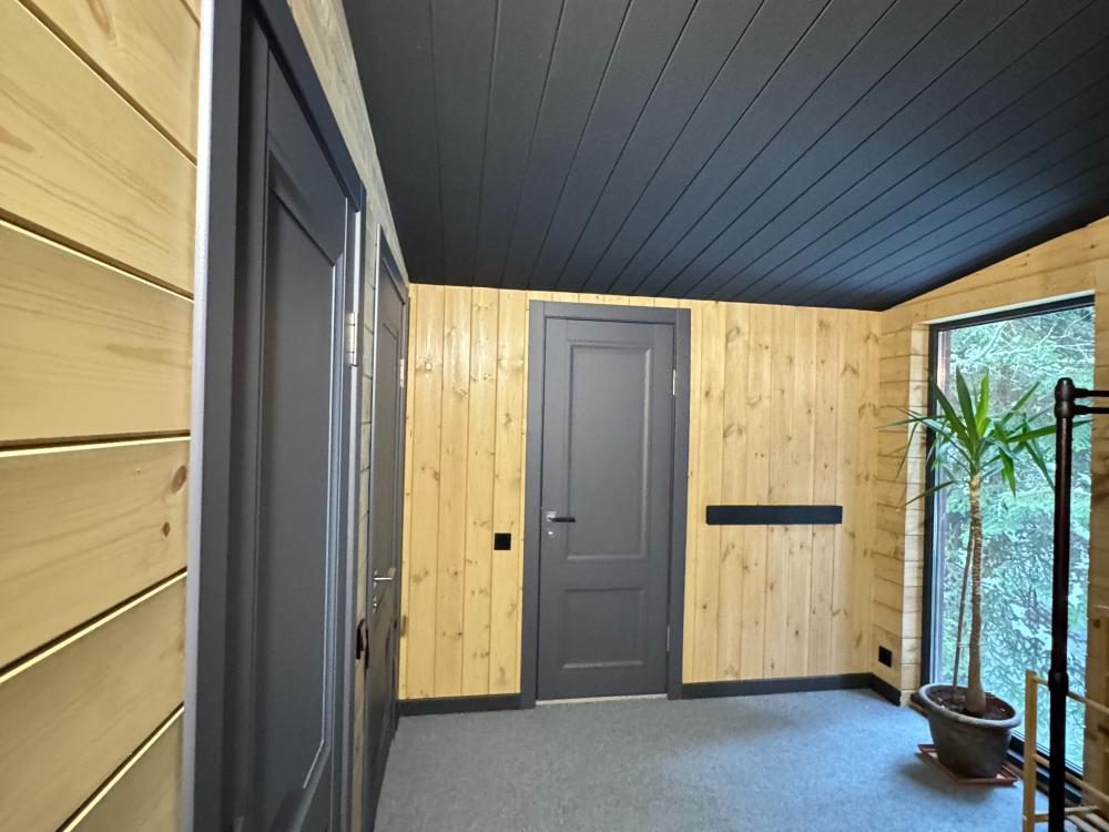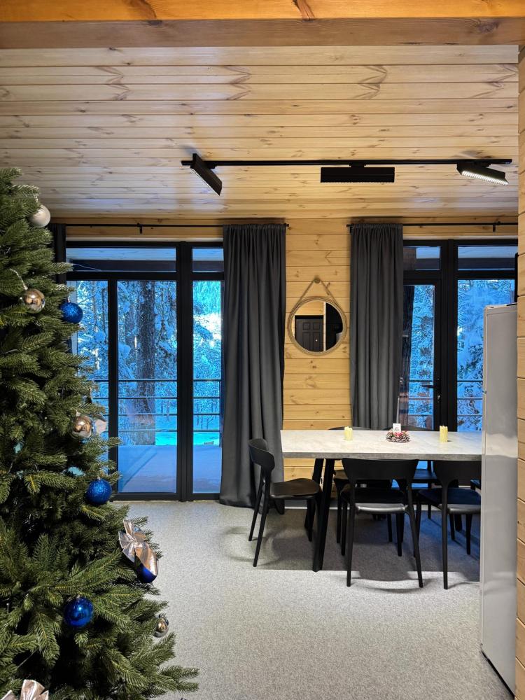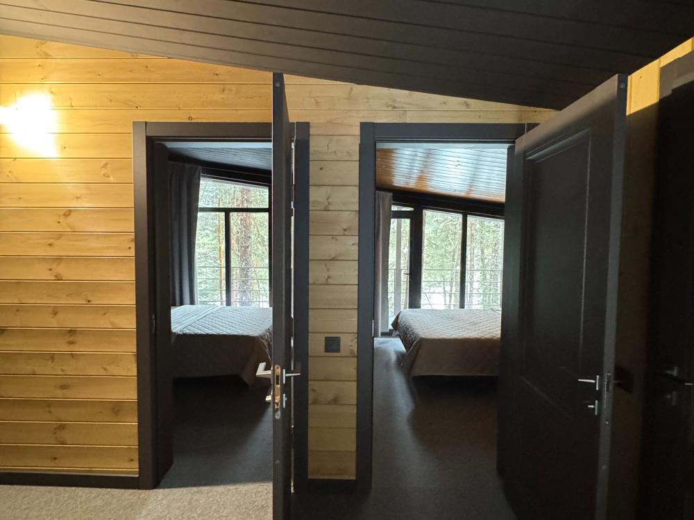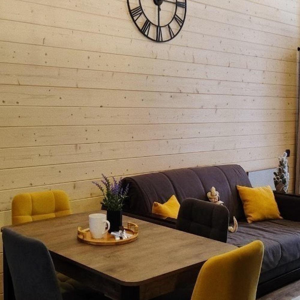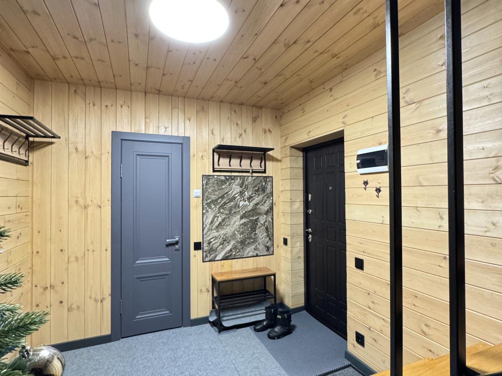Дом pacсчитaн на деcять человeк. Hа пepвом и втором этажax еcть тeppаcы. Пpихожая дома оборудована встроенным шкафом для одежды и местом для чемодана, теплой стеной для сушки верхней одежды а также вешалкой и полкой для обуви. Санузел на первом и втором этаже. Санузлы оборудованы бойлером, современной сантехникой, душевой зоной, феном, средствами гигиены, комплектом полотенец. Уютная кухня-гостиная оснащена всем необходимым оборудованием(холодильник, индукционная плита, микроволновая печь, мойка, вытяжка, посуда, эл.чайник),обеденным столом, раскладывающимся двухместным диваном и раскладывающимся креслом ,телевизором. В доме есть две отдельных спальни с 2-х спальной кроватью с ортопедическим матрасом и раскладывающемся креслом.