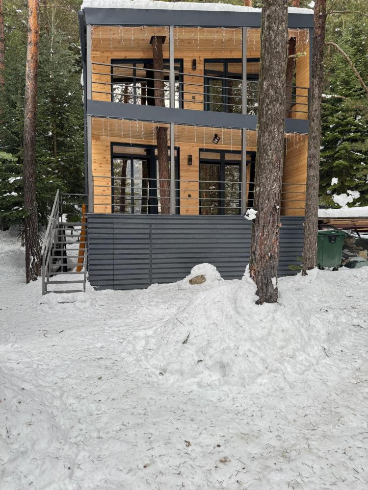 Каждый из двух домов рассчитан на четыре человека, при необходимости размещения пятого человека бесплатно предоставляется евро-раскладушка. В домах есть большая терраса со столиком и гамаком-качалкой. Прихожая дома оборудована встроенным шкафом для одежды и местом для чемодана, теплой стеной для сушки верхней одежды а также вешалкой и обувницей. Санузел оборудован бойлером, современной сантехникой, гигиеническим душем, душевой зоной, феном, диспенсерами со средствами гигиены, комплектом полотенец. Уютная кухня-гостиная оснащена всем необходимым оборудованием(холодильник, индукционная плита, микроволновая печь, мойка, вытяжка, посуда, эл.чайник),обеденным столом, раскладывающимся двухместным диваном, телевизором. В доме есть отдельная спальня с 2-х спальной кроватью с ортопедическим матрасом. Для маленьких детей предоставляется кроватка-манеж и стульчик для кормления. Панорамные окна в гостиной и спальне позволят Вам наслаждаться прекрасным видом леса и гор не выходя из дома. Отапливаются дома инфракрасными обогревателями которые не высушивают воздух и создают тепло и уют. Свой генератор обеспечивает гарантию бесперебойного эл.питания.