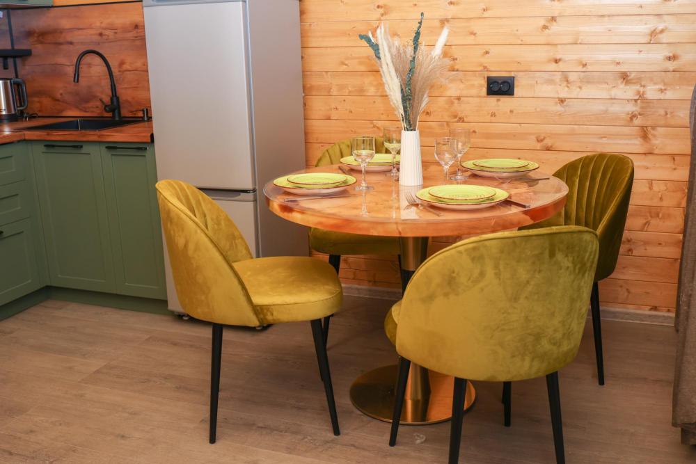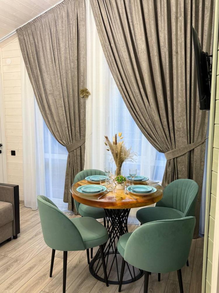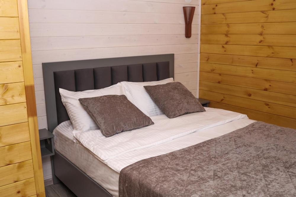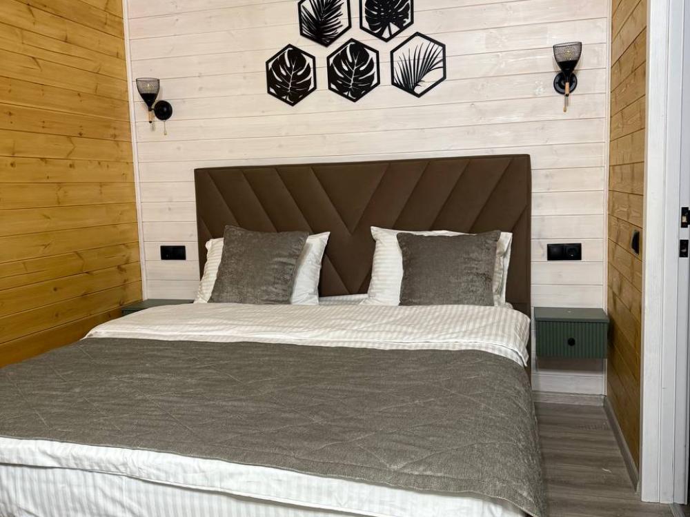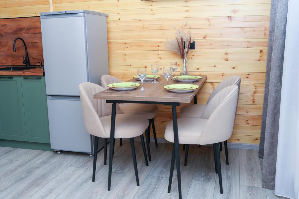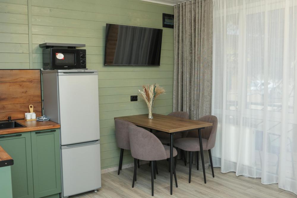 Вилла "Suite" (30 м²) до 4 человек: кухонный гарнитур, холодильник, микроволновая печь, индукционная плита, стол, стулья, двуспальный диван, двуспальная кровать, совмещённый санузел. Балкон/терраса с садовой мебелью. На территории: очаговая зона, мангальная зона, детская площадка, беседка.