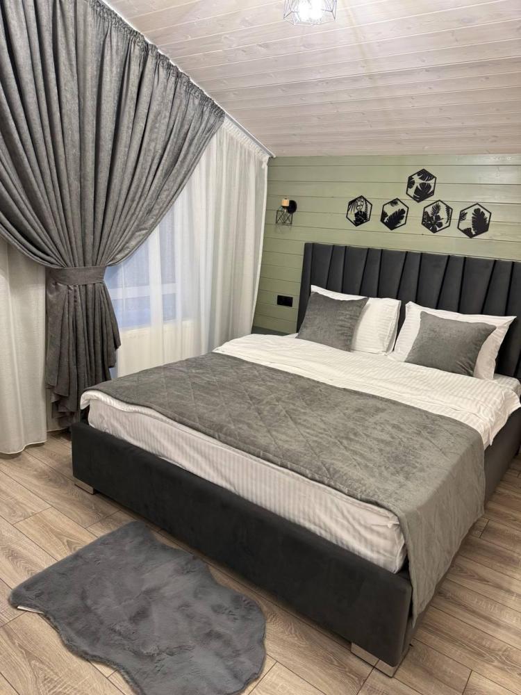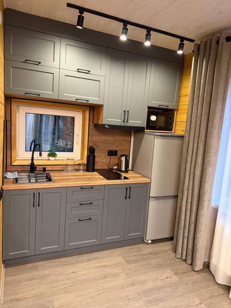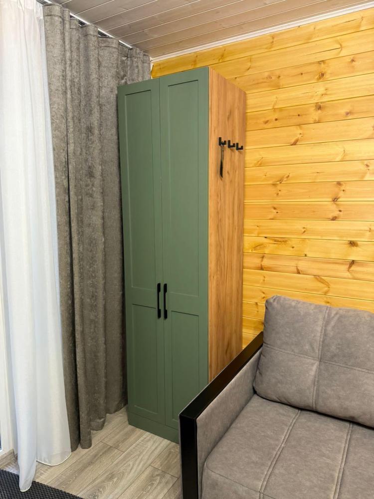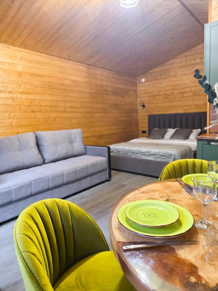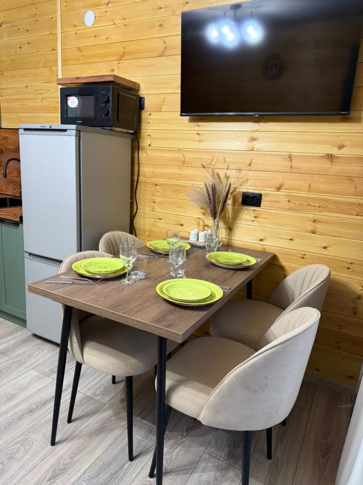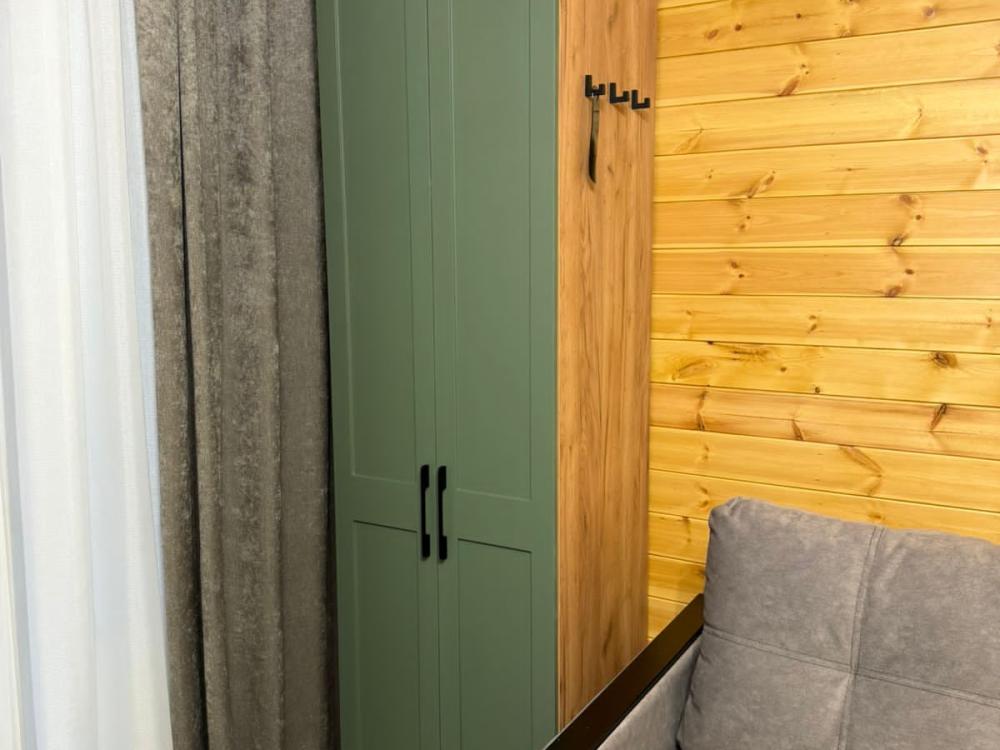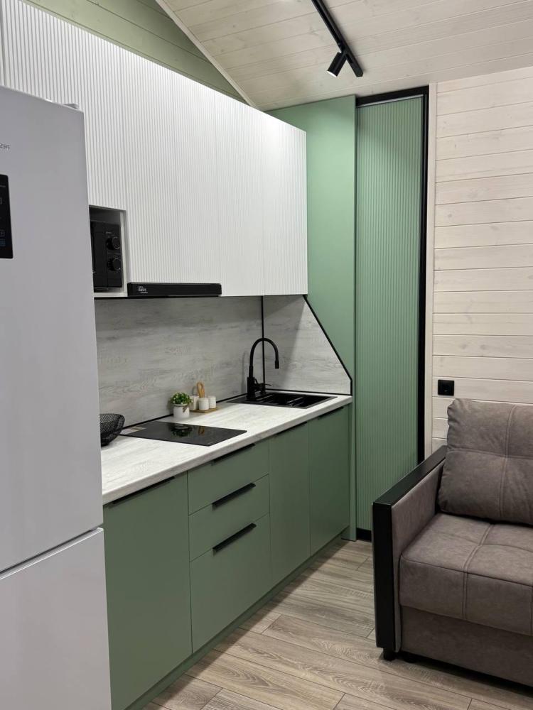 Вилла "TOP" (40 м²) до 4 человек (апартаменты на 2 или 3 этаже). Кухня-гостиная: кухонный гарнитур, стол, стулья, микроволновая печь, холодильник, чайник, индукционная плита, TV, двуспальный диван. Совмещённый санузел. Изолированная спальня с двуспальной кроватью. Балкон с садовой мебелью и прекрасным видом. На территории: очаговая зона, мангальная зона, детская площадка, беседка.