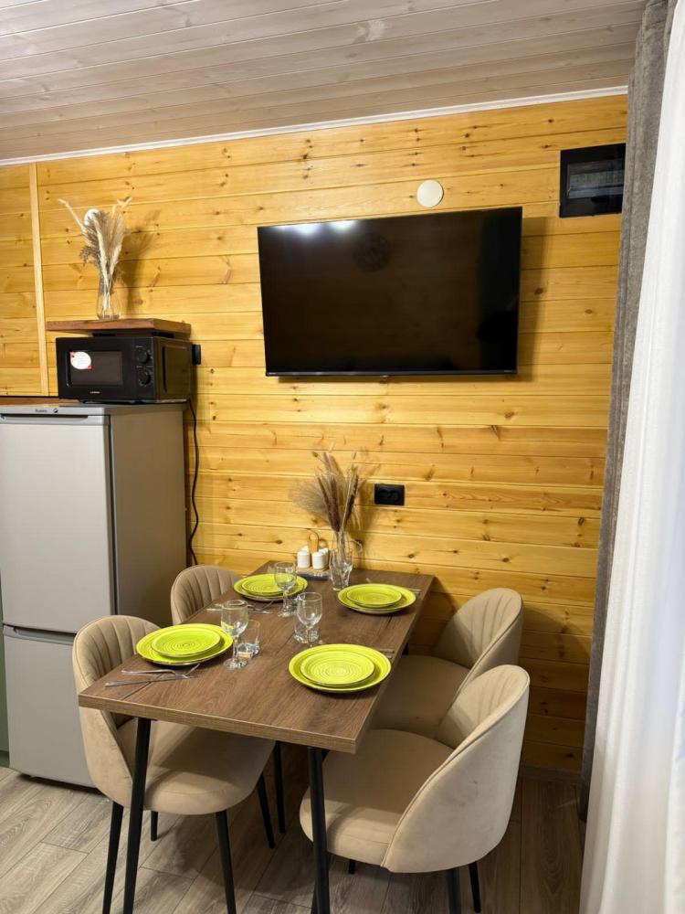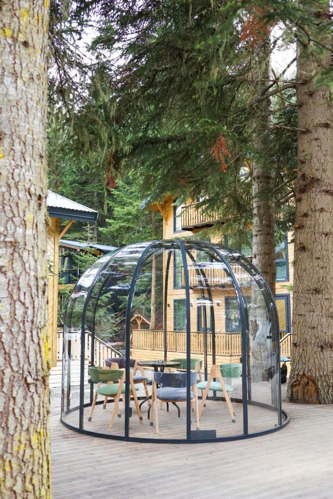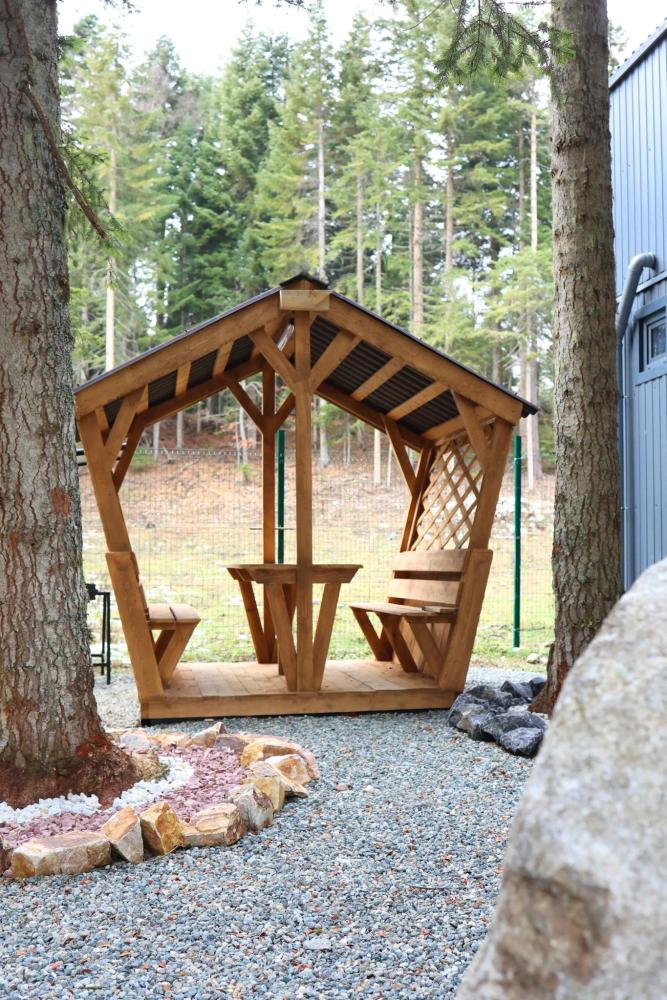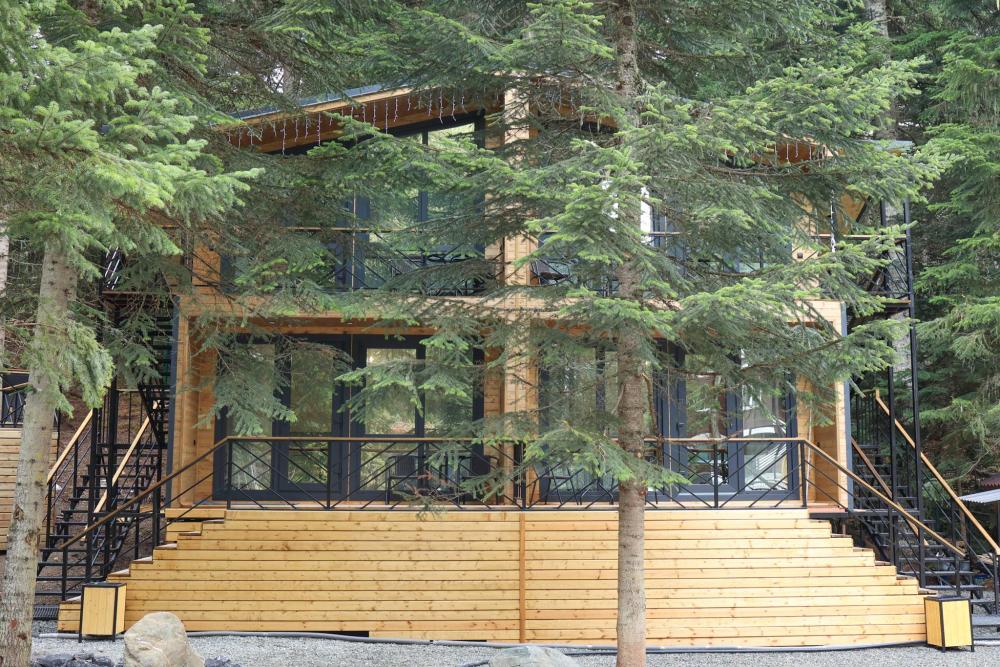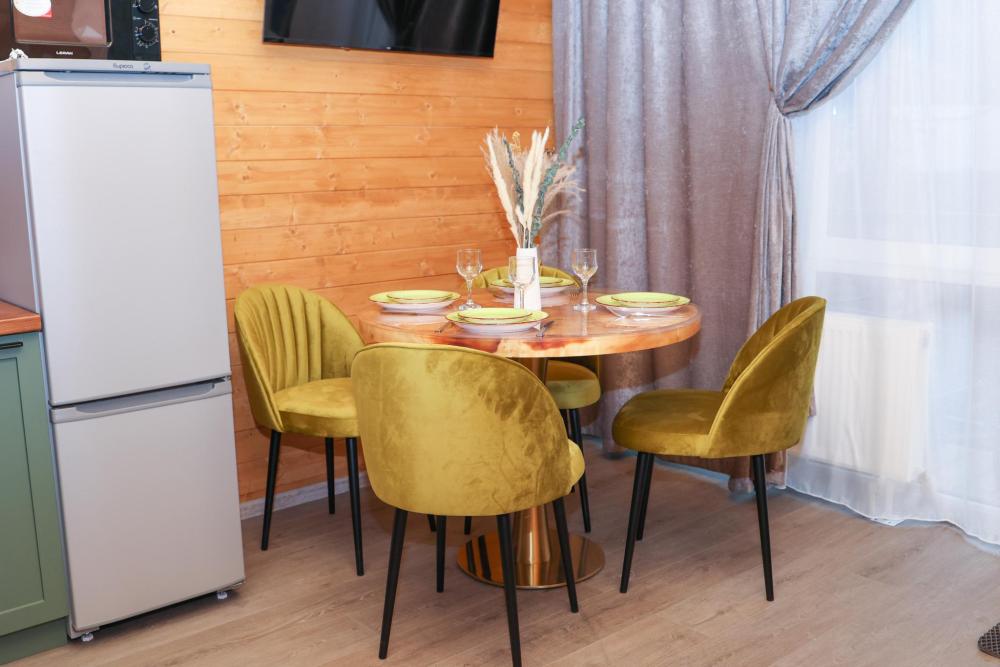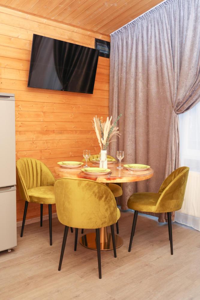Отдельная вилла "Relax" (35 м²) до 4 человек. Кухонный гарнитур, микроволновая печь, холодильник, чайник, индукционная плита, стол, стулья, TV, двуспальный диван, двуспальная кровать, совмещённый санузел. Терраса с садовой мебелью и прекрасным видом. Сибирский чан включён в стоимость. На территории: очаговая зона, мангальная зона, детская площадка, беседка.
