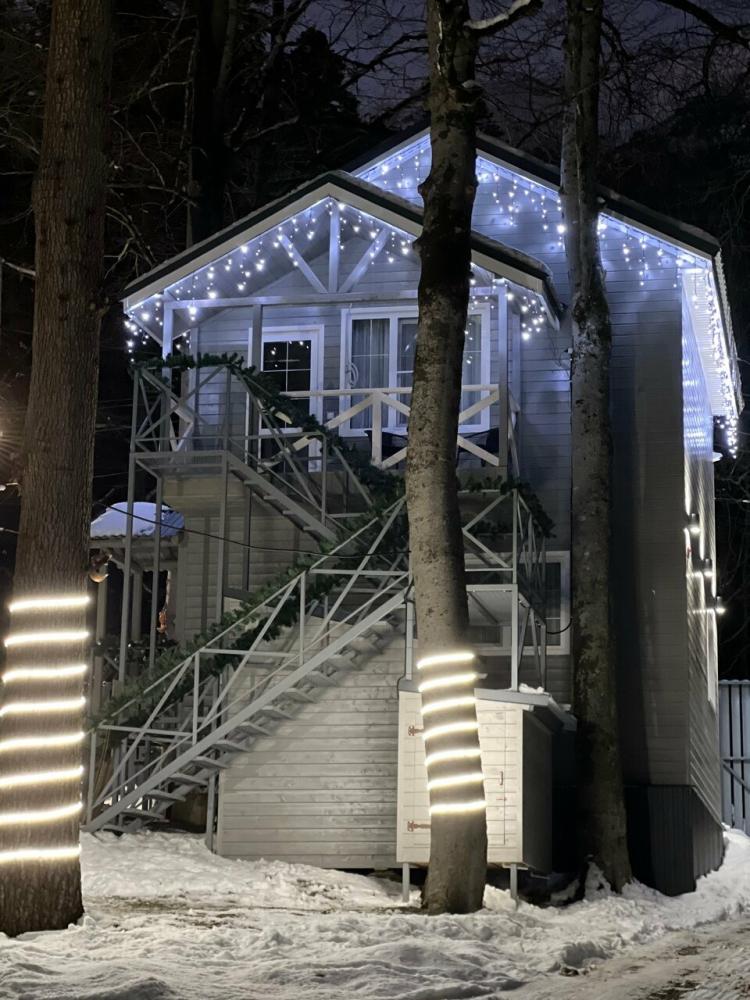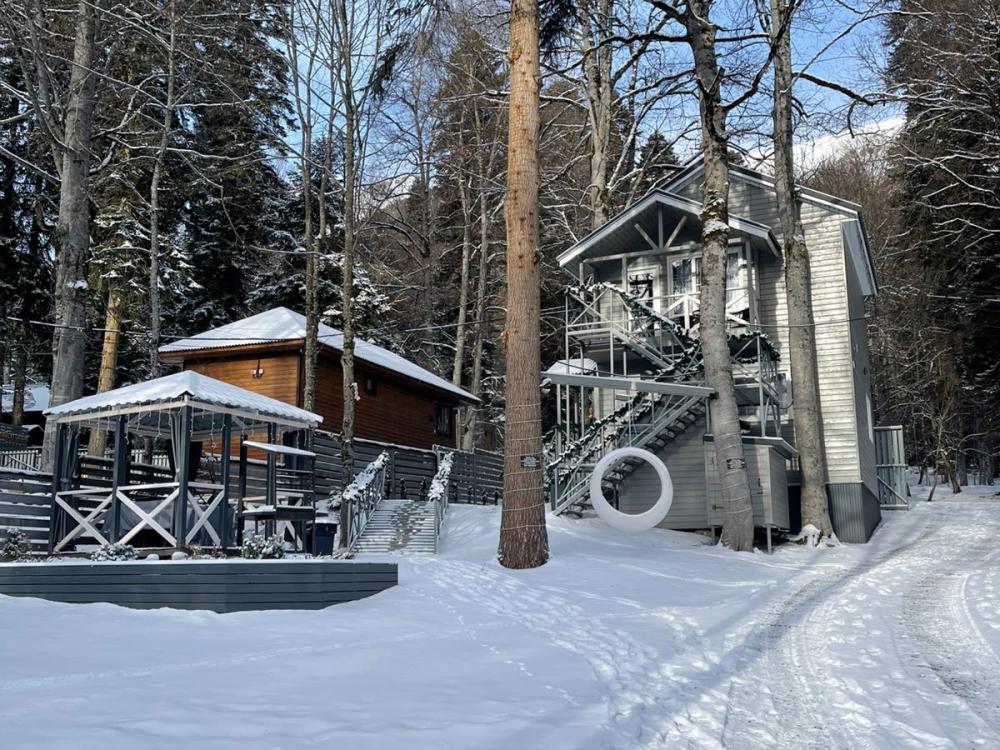 Вилла в стиле Лофт, вместимостью до 12 человек. На 1м этаже одна спальня с двуспальной кроватью и раскладным диваном, кухня-гостиная со всей необходимой посудой и техникой и раскладным диваном и санузел. На 2м этаже две спальни и санузел. Одна спальня на четверых с двуспальной кроватью и диваном, и вторая спальня для двух человек с двуспальной кроватью. Есть балкон с видом во двор.