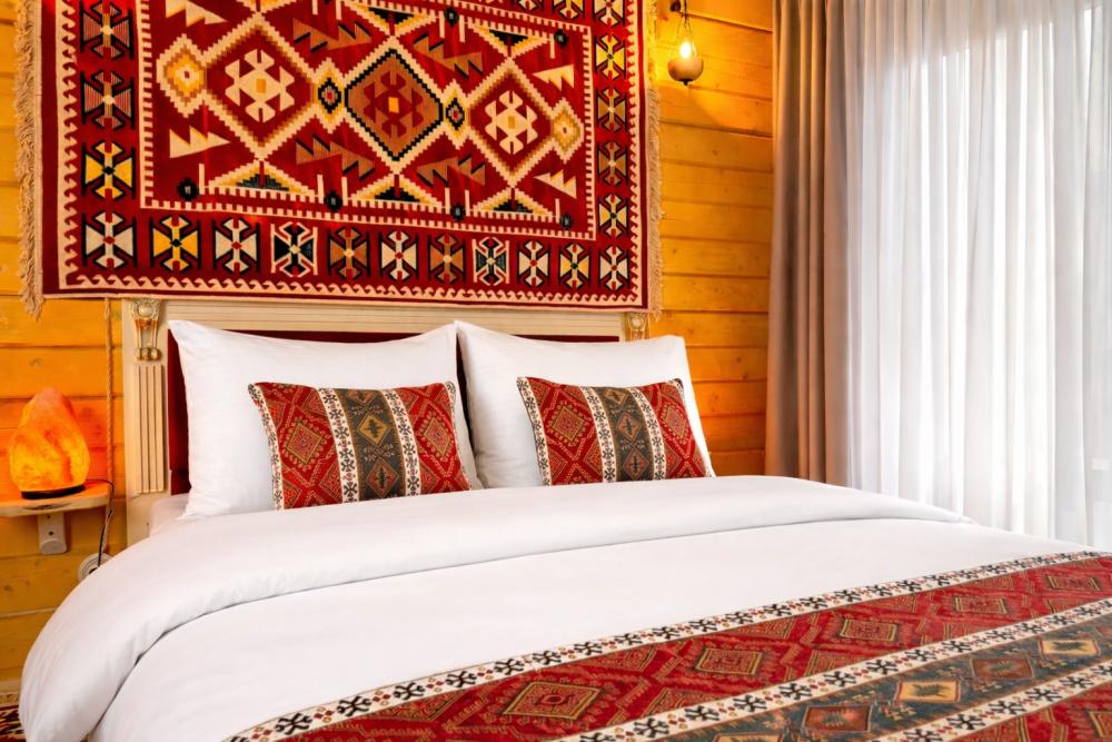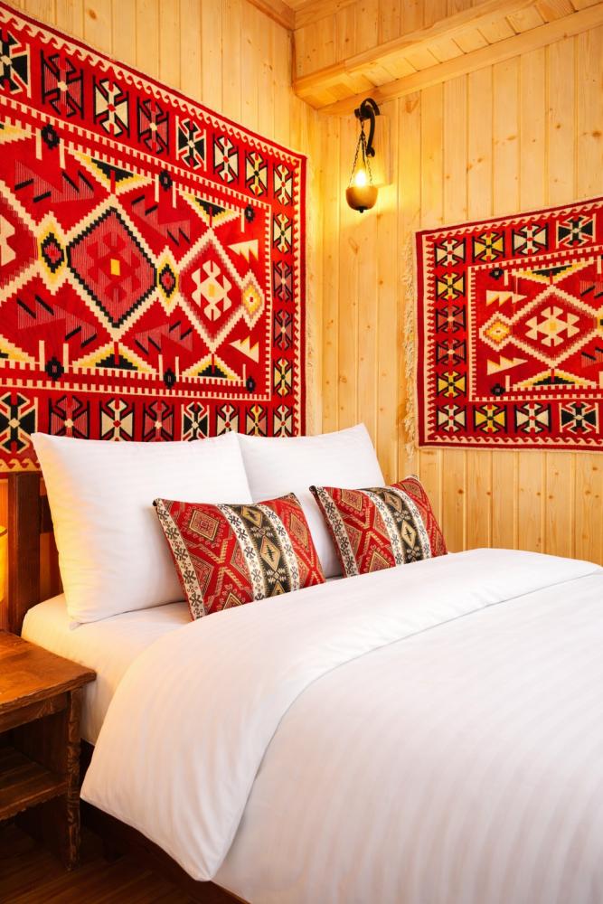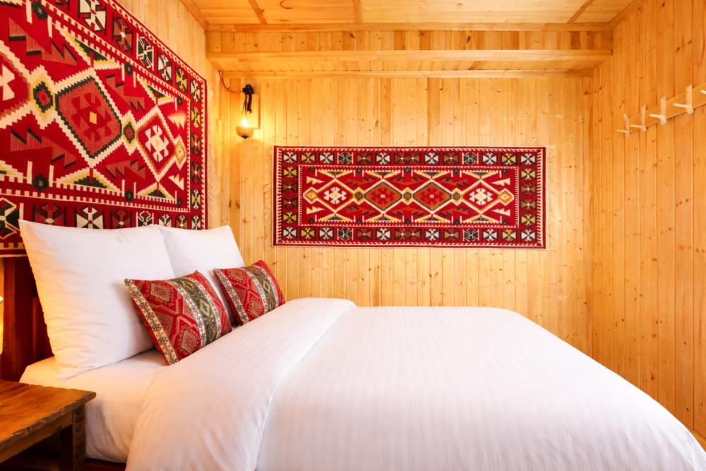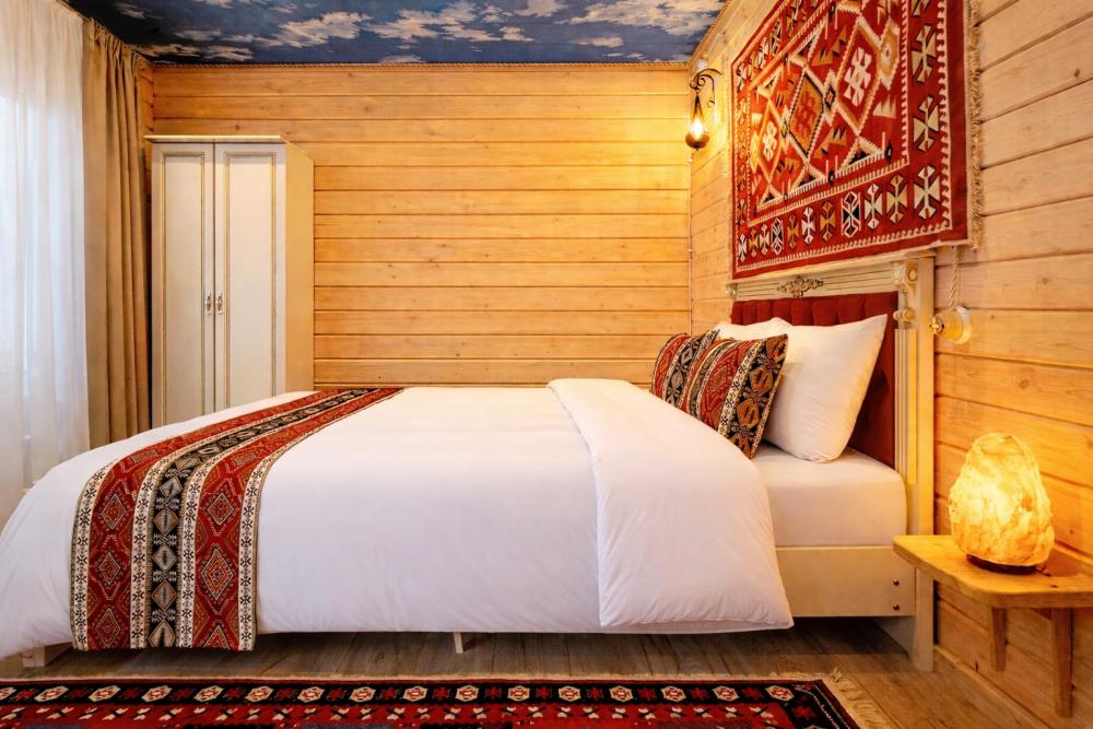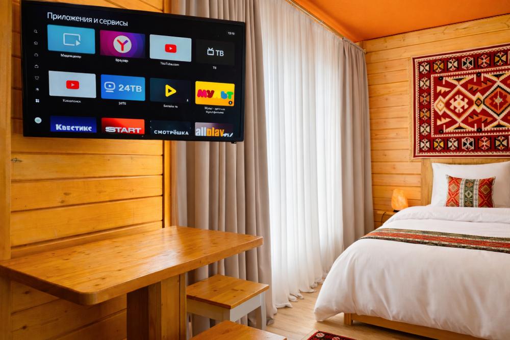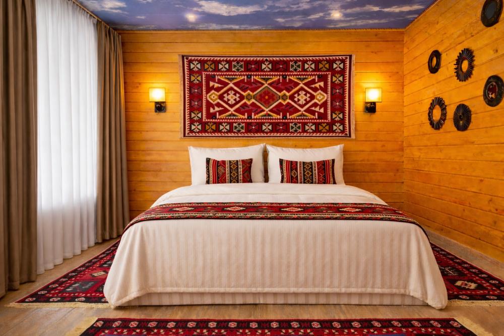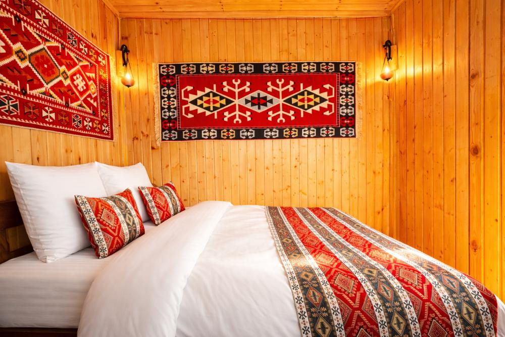 Двухместный улучшенный стандарт, выполненный из экологичного бруса, отличается тёплой атмосферой и естественным уютом. Натуральная фактура древесины создаёт ощущение близости к природе, при этом предполагая некоторую слышимость — характерную особенность деревянных интерьеров. Планировка представляет собой одно комфортное помещение, где размещена двуспальная кровать, обеспечивающая полноценный отдых. В номере также предусмотрен диван, который служит зоной отдыха, не раскладывается. Номер расположен на втором этаже и открывает вид на горы и внутренний дворик. Номер оснащён всеми необходимыми удобствами для комфортного пребывания. По соседству с гостевым домом находится мечеть. В связи с этим утром в течение трех минут из мечети слышен призыв к молитве. Просим учитывать этот момент при бронировании. ВАЖНАЯ ИНФОРМАЦИЯ На территории гостевого дома запрещается: • распитие алкогольных напитков; • размещение с животными; • проведение шумных посиделок и вечеринок; • приготовление и употребление продуктов питания из свинины; • нарушение тишины в период с 21:00 до 07:00; • курение вне специально отведённых зон (разрешается только в специально оборудованных местах и на главной террасе).