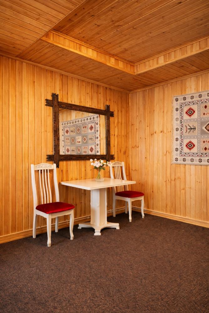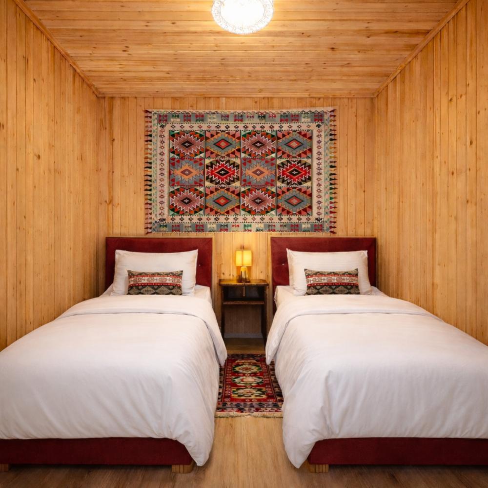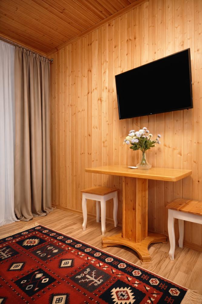 Двухместный стандартный номер, выполненный из экологичного бруса, отличается тёплой атмосферой и естественным уютом. Натуральная фактура древесины создаёт особое ощущение близости к природе, но при этом предполагает некоторую слышимость — важная особенность деревянных интерьеров. Гости могут воспользоваться прямым выходом на общую террасу с живописным видом на горы, идеальную для спокойного отдыха на свежем воздухе. Номер оснащён всеми необходимыми удобствами для комфортного пребывания. По соседству с гостевым домом находится мечеть. В связи с этим утром в течение трех минут из мечети слышен призыв к молитве. Просим учитывать этот момент при бронировании. ВАЖНАЯ ИНФОРМАЦИЯ На территории гостевого дома запрещается: • распитие алкогольных напитков; • размещение с животными; • проведение шумных посиделок и вечеринок; • приготовление и употребление продуктов питания из свинины; • нарушение тишины в период с 21:00 до 07:00; • курение вне специально отведённых зон (разрешается только в специально оборудованных местах и на главной террасе).