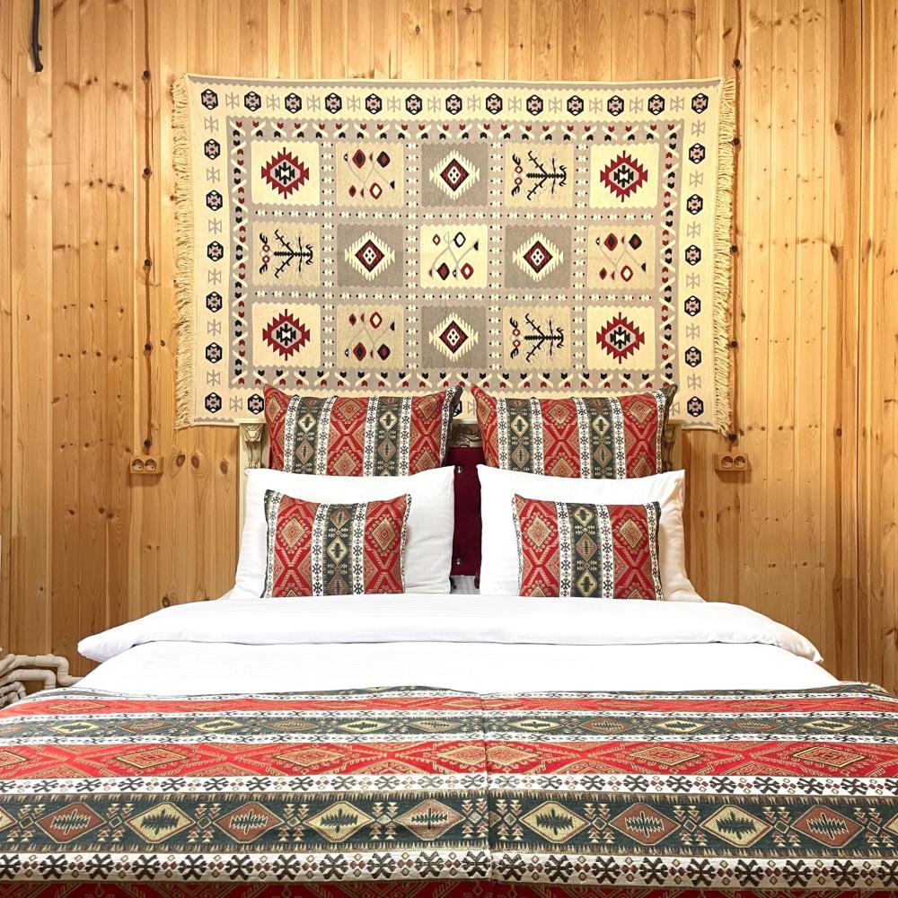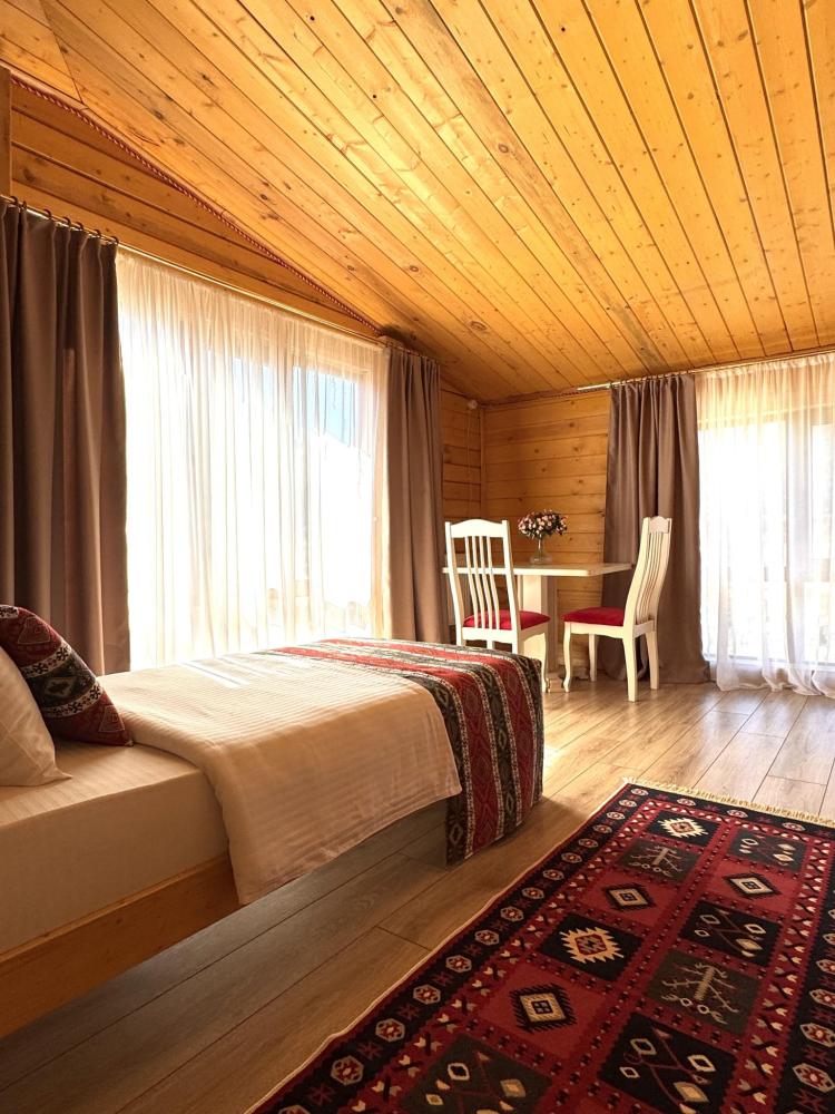 В номере 2 основных места: одна двуспальная кровать. Также в номере возможно одно дополнительное место на диване (не раскладывается). Номер находится на 2 этаже и из номера можно выйти на балкон и напрямую пройти к террасам 2 этажа, где можно посидеть и попить чай/кофе, наслаждаясь видами на окружающие горы Архыза. ---------------- Есть все необходимое для комфортного проживания: удобный ортопедический матрас, удобный раскладной диван, стол и стулья, шкаф-гардероб, свежее постельное белье и полотенца, тапочки, туалетно-косметические принадлежности, smart TV, wi-fi, холодильник, центральное отопление, светильники. ------------- Номер оборудован собственной ванной комнатой со всеми удобствами: душевая кабина, фен, зеркало, раковина, разовые зубные щетки, мыло, шампунь, гели для душа, комплект свежих полотенец, удобные тапочки, унитаз, гигиенический душ, мусорное ведро. --------------- Отель HAYAT HAUS расположен в самом центре с. Архыз. В 5 мин. ходьбы множество ресторанов/кафе, развлекательных заведений, организаторы туров/экскурсий, магазины и другие замечательные заведения. В 10 мин. езды от отеля находятся подъемники на основные горнолыжные трассы курорта. За 10-30 мин можно доехать почти до всех основных точек притяжения гостей курорта Архыз. --------------- ПРАВИЛА ПРОЖИВАНИЯ Чтобы наши гости не мешали друг другу отдыхать и с уважением относились друг к другу, на территории отеля запрещено: - распитие алкогольных напитков; - размещение с животными; - шумные посиделки и вечеринки; - употребление продуктов питания из свинины; - курение разрешено только в специально отведенных местах и на балконах; - запрещается громко разговаривать и шуметь с 21:00 до 08:00.
