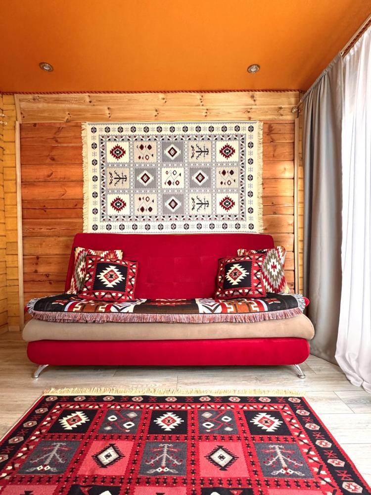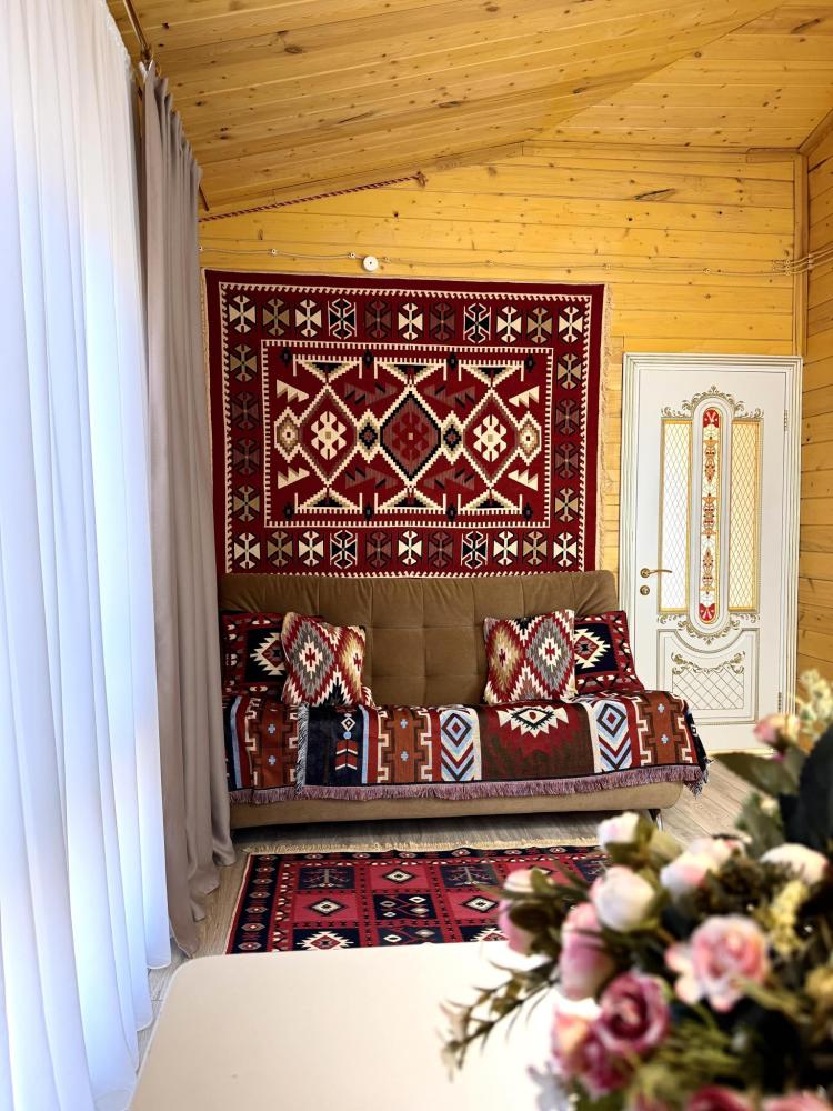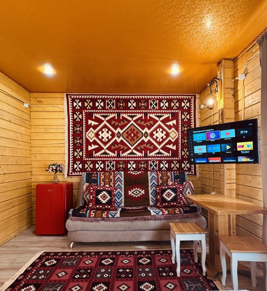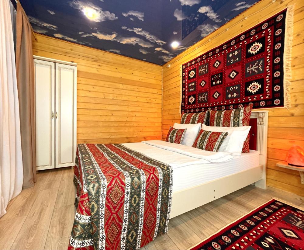 В домике 4 основных мест и 4 дополнительных мест. По одной двуспальной кровати в каждой из двух спальных комнат. В гостиной комнате 2 больших удобных двухместных раскладных дивана. ------------------- В номере: Smart TV, wi-fi, холодильник, обеденная зона, посуда, два удобных дивана, шкаф для одежды, удобные ортопедические матрасы, свежее постельное белье и полотенца, тапочки, туалетно-косметические принадлежности, центральное отопление, светильники, окно и отдельный вход ------------------- Домик оборудован собственной ванной комнатой со всеми удобствами: душевая кабина, душ, фен, зеркало, раковина, разовые зубные щетки, мыло, шампунь, гели для душа, комплект свежих полотенец, удобные тапочки, унитаз, гигиенический душ, мусорное ведро. ----------------- Домик находится на территории отеля HAYAT HAUS в самом центре с. Архыз. В 5 мин. ходьбы множество ресторанов/кафе, развлекательных заведений, организаторы туров/экскурсий, магазины и другие замечательные заведения. В 10 мин. езды от отеля находятся подъемники на основные горнолыжные трассы курорта. За 10-30 мин можно доехать почти до всех основных точек притяжения гостей курорта Архыз -------------------- ПРАВИЛА ПРОЖИВАНИЯ Чтобы наши гости не мешали друг другу отдыхать и с уважением относились друг к другу, на территории отеля запрещено: - распитие алкогольных напитков; - размещение с животными; - шумные посиделки и вечеринки; - употребление продуктов питания из свинины - курение разрешено только в специально отведенных местах и на балконах. - запрещается громко разговаривать и шуметь с 21:00 до 08:00.