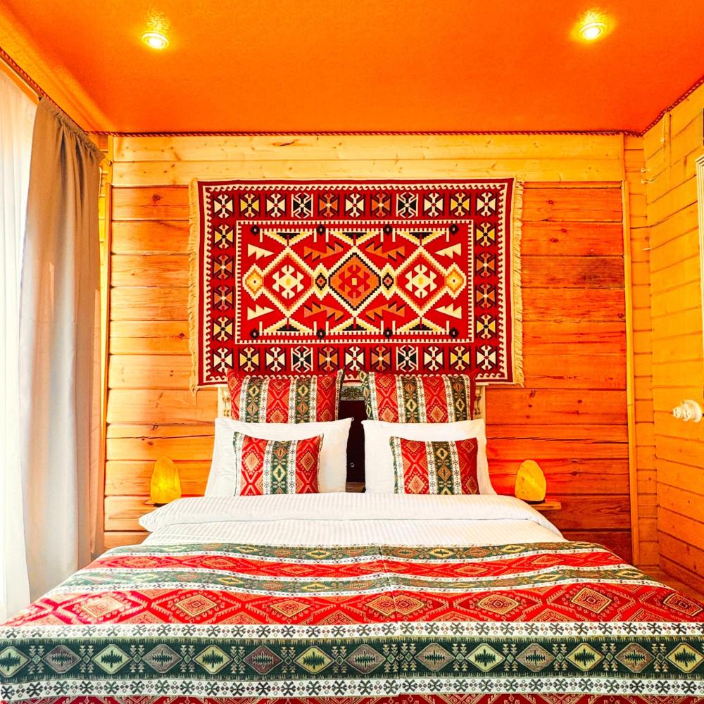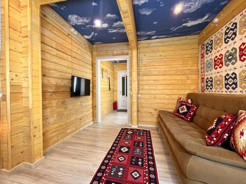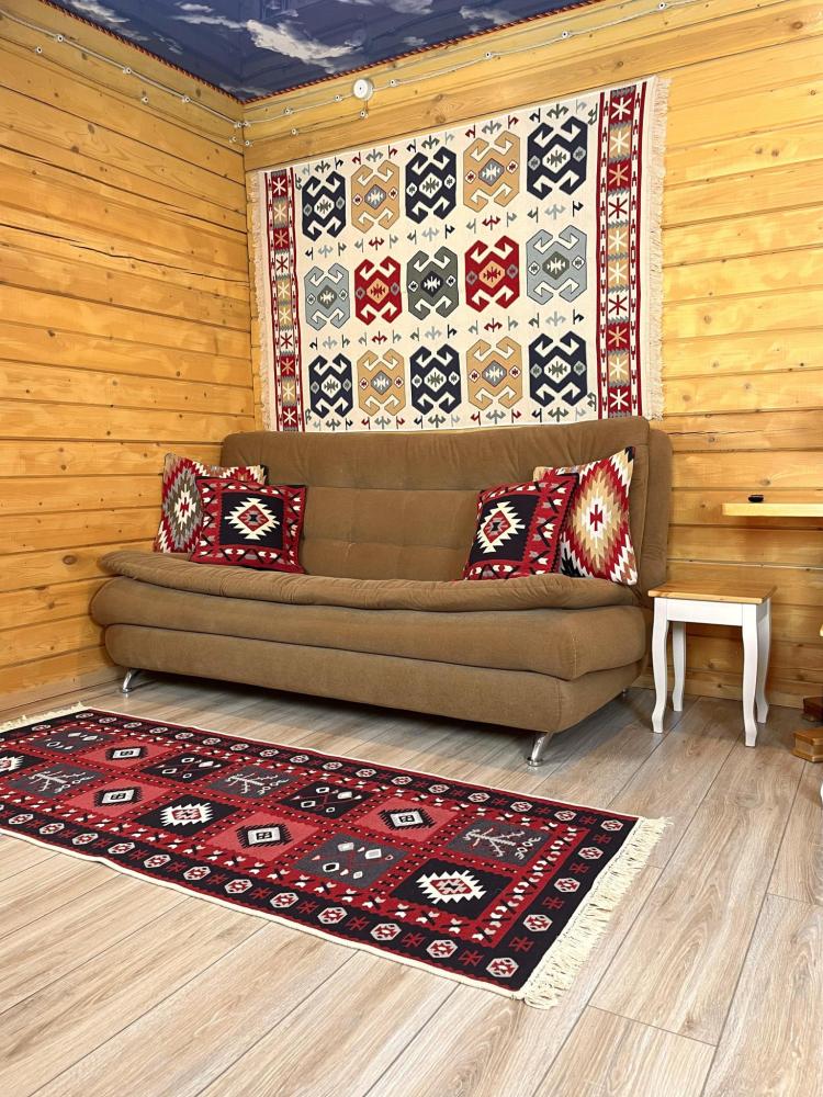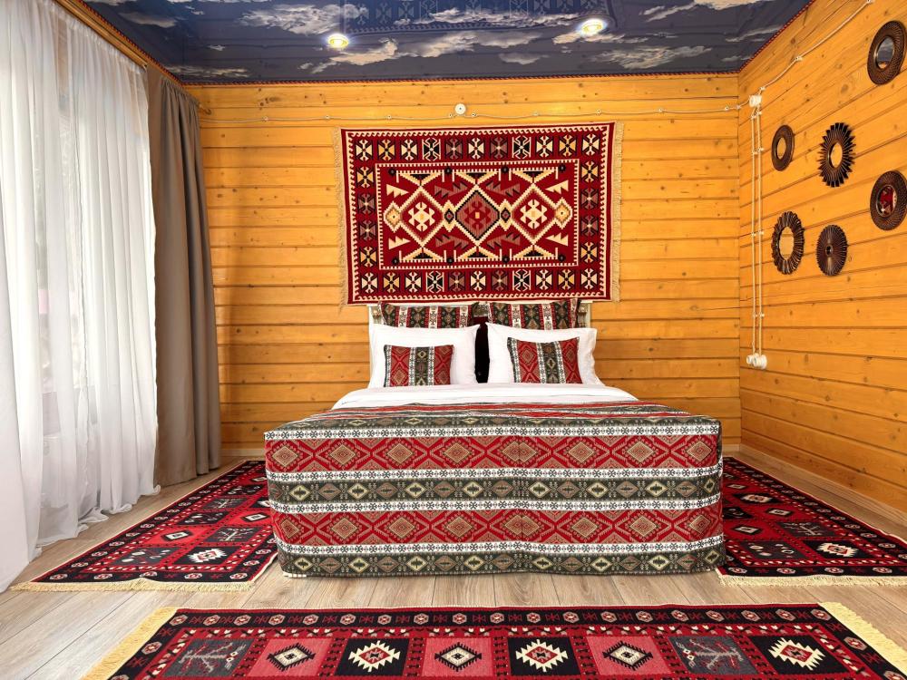 В домике 4 основных мест и 4 дополнительных мест. По одной двуспальной кровати в каждой из двух спальных комнат. В гостиной комнате 2 больших удобных двухместных раскладных дивана. ------------------- В номере: Smart TV, wi-fi, холодильник, обеденная зона, посуда, два удобных дивана, шкаф для одежды, удобные ортопедические матрасы, свежее постельное белье и полотенца, тапочки, туалетно-косметические принадлежности, центральное отопление, светильники, окно и отдельный вход ------------------- Домик оборудован собственной ванной комнатой со всеми удобствами: душевая кабина, душ, фен, зеркало, раковина, разовые зубные щетки, мыло, шампунь, гели для душа, комплект свежих полотенец, удобные тапочки, унитаз, гигиенический душ, мусорное ведро. ----------------- Домик находится на территории отеля HAYAT HAUS в самом центре с. Архыз. В 5 мин. ходьбы множество ресторанов/кафе, развлекательных заведений, организаторы туров/экскурсий, магазины и другие замечательные заведения. В 10 мин. езды от отеля находятся подъемники на основные горнолыжные трассы курорта. За 10-30 мин можно доехать почти до всех основных точек притяжения гостей курорта Архыз -------------------- ПРАВИЛА ПРОЖИВАНИЯ Чтобы наши гости не мешали друг другу отдыхать и с уважением относились друг к другу, на территории отеля запрещено: - распитие алкогольных напитков; - размещение с животными; - шумные посиделки и вечеринки; - употребление продуктов питания из свинины - курение разрешено только в специально отведенных местах и на балконах. - запрещается громко разговаривать и шуметь с 21:00 до 08:00.