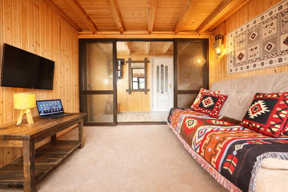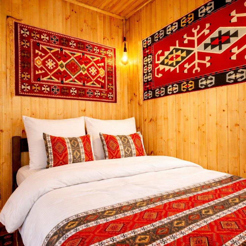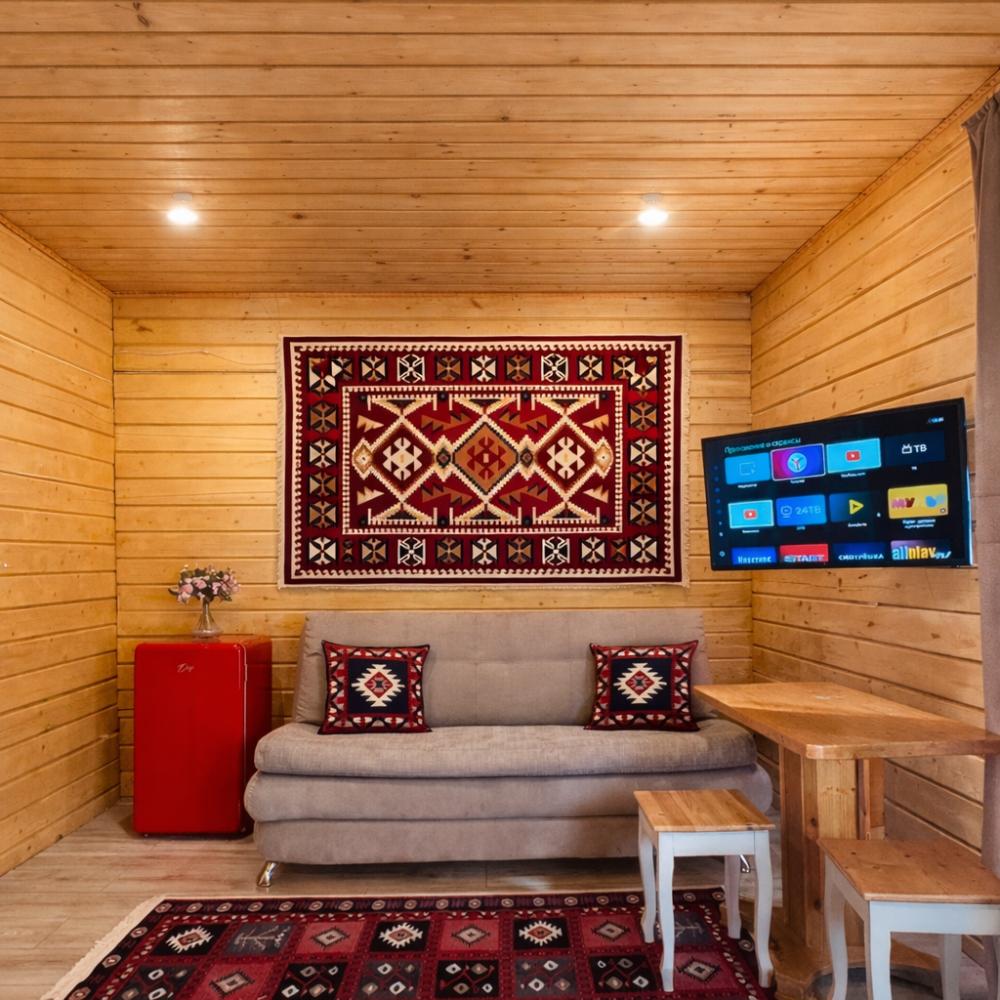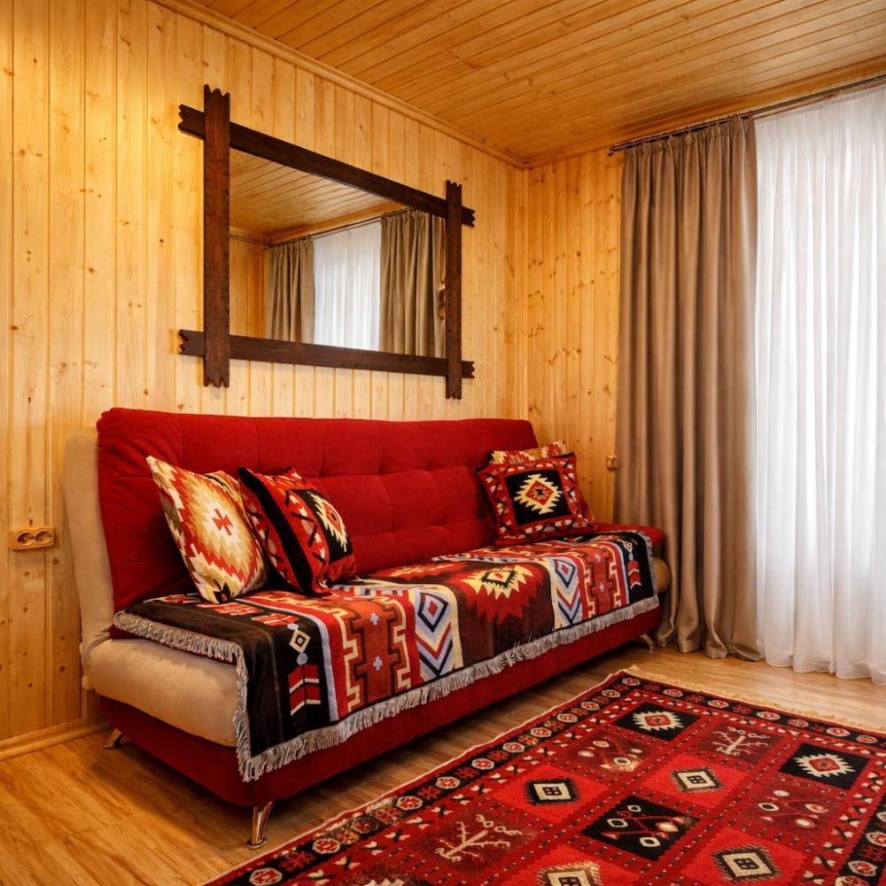 Двухместный комфортный номер, выполненный из экологичного бруса, отличается тёплой атмосферой и естественным уютом. Натуральная фактура древесины создаёт ощущение близости к природе, при этом предполагая некоторую слышимость — характерную особенность деревянных интерьеров. Планировка представляет собой одно комфортное помещение, где размещена двуспальная кровать, обеспечивающая полноценный отдых и диван, который может использоваться как дополнительное спальное место — до 2 гостей на диване. Пожалуйста, указывайте точное количество гостей при бронировании для корректного расчёта стоимости и подготовки номера. Номер расположен на втором этаже, гости могут воспользоваться прямым выходом на общую террасу с живописным видом на горы, идеальную для спокойного отдыха на свежем воздухе. Номер оснащён всеми необходимыми удобствами для комфортного пребывания. По соседству с гостевым домом находится мечеть. В связи с этим утром в течение трех минут из мечети слышен призыв к молитве. Просим учитывать этот момент при бронировании. ВАЖНАЯ ИНФОРМАЦИЯ На территории гостевого дома запрещается: • распитие алкогольных напитков; • размещение с животными; • проведение шумных посиделок и вечеринок; • приготовление и употребление продуктов питания из свинины; • нарушение тишины в период с 21:00 до 07:00; • курение вне специально отведённых зон (разрешается только в специально оборудованных местах и на главной террасе)