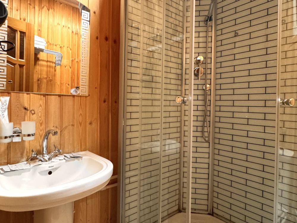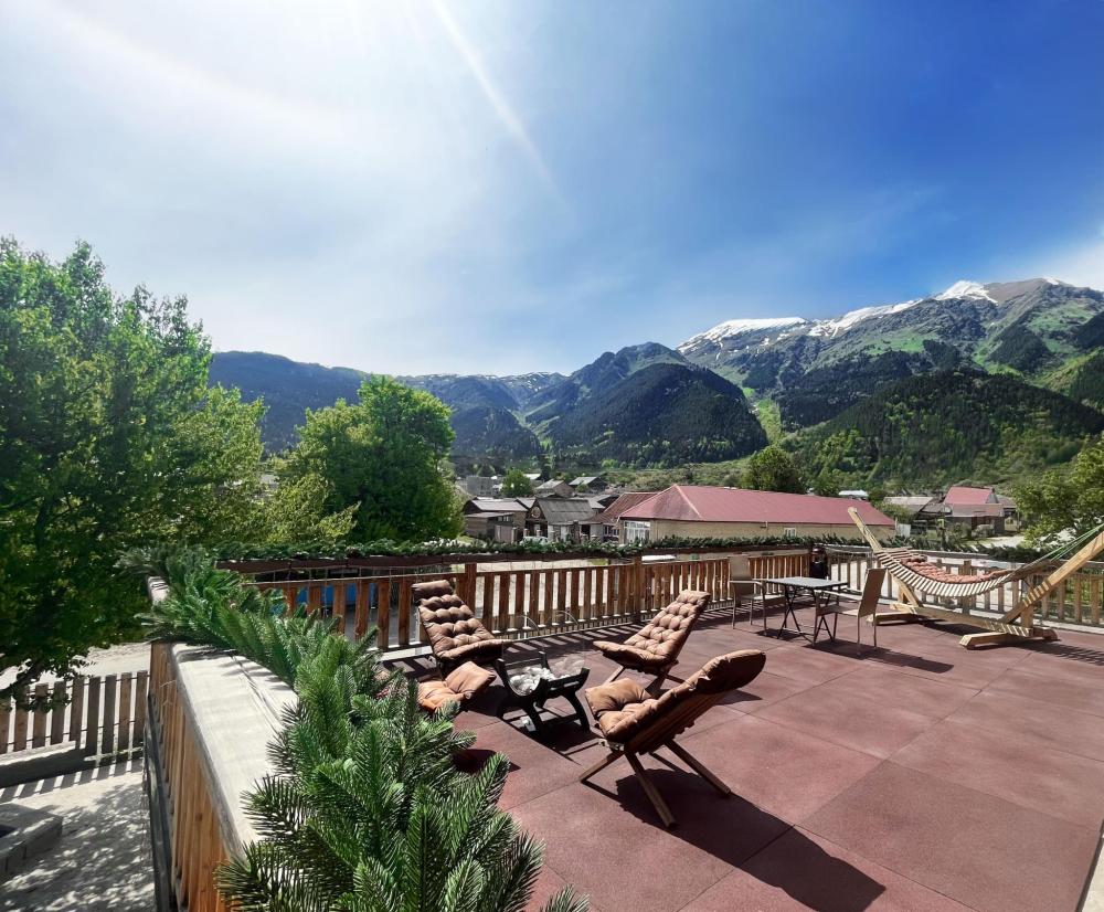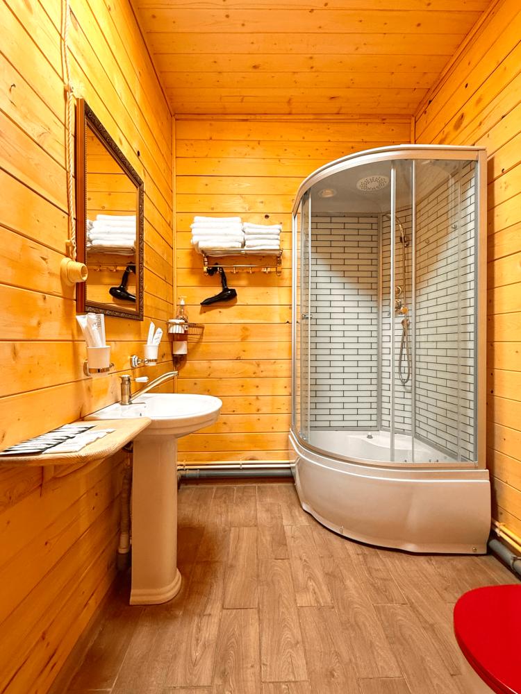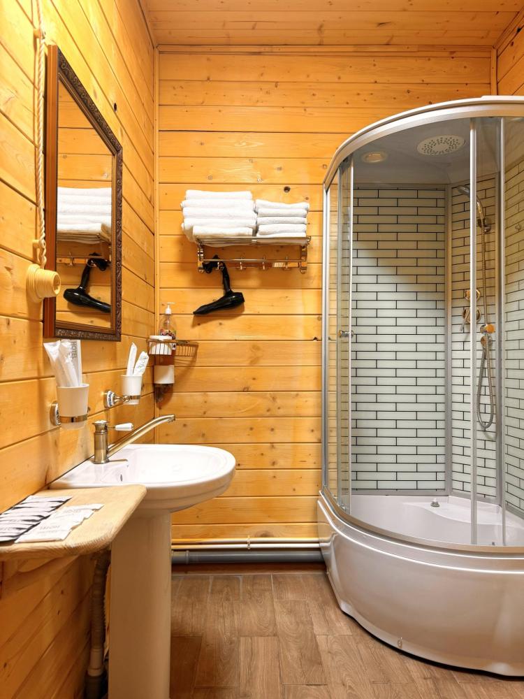 Номер находится на 2 этаже. Из номера можно выйти на балкон и напрямую пройти к террасам, где можно посидеть и попить чай/кофе, наслаждаясь видами на окружающие горы Архыза. В номере: двуспальная кровать, шкаф, свежее постельное белье и полотенца, тапочки, туалетно-косметические принадлежности, smart TV, wi-fi, холодильник, центральное отопление, светильники. Номер оборудован собственной ванной комнатой со всеми удобствами: душевая кабина, фен, зеркало, раковина, разовые зубные щетки, мыло, шампунь, гели для душа, комплект свежих полотенец, удобные тапочки, унитаз, гигиенический душ, мусорное ведро. В номере возможен вариант размещения только на двуспальной кровати. Односпальные кровати не предусмотрены. Отель расположен в самом центре поселка Архыз. В 5 мин. ходьбы множество ресторанов/кафе, развлекательных заведений, организаторы туров/экскурсий, магазины и другие замечательные заведения. В 10 мин. езды от отеля находятся подъемники на основные горнолыжные трассы курорта. За 10-30 мин можно доехать почти до всех основных точек притяжения гостей курорта Архыз. ПРАВИЛА ЗАЕЗДА И ВЫЕЗДА Заезд с 14:00. Выезд до 11:00. При позднем выезде с 11:01 до 12:00 взимается доп. оплата 900 руб. При позднем выезде с 12:01 до 14:00 взимается доп. оплата 1500 руб. При позднем выезде с 14:01 до 23:59 доп. оплата в размере 80% от стоимости 1 суток по тарифу. ВАЖНАЯ ИНФОРМАЦИЯ: Наш отель ориентирован на создание комфортных условий для спокойного семейного отдыха. В связи с этим на территории отеля запрещено: - распитие алкогольных напитков; - размещение с животными; - шумные посиделки и вечеринки; - приготовление и употребление продуктов питания из свинины; - курение разрешено только в специально отведенных местах и на балконах; - запрещается шуметь с 22:00 до 08:00.