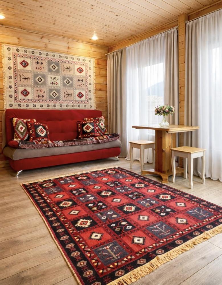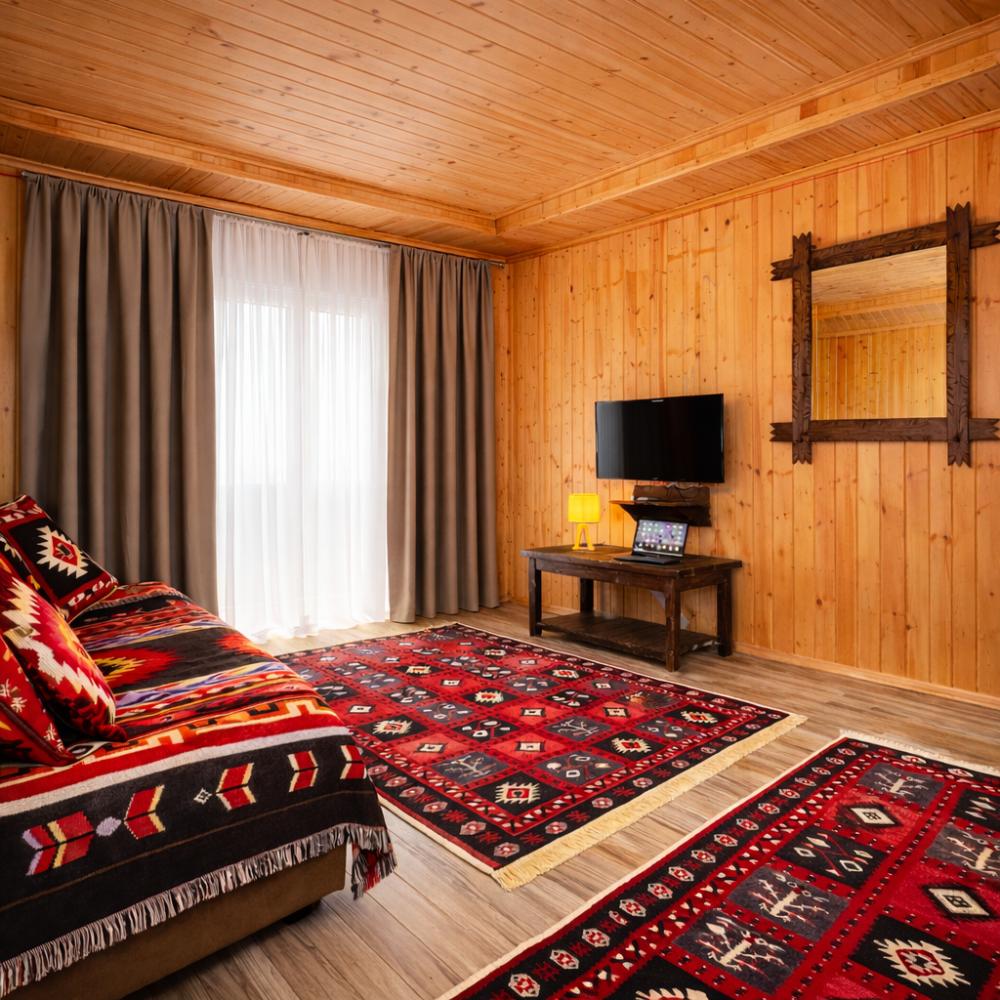 Двухкомнатный комфортный номер, выполненный из экологичного бруса, отличается тёплой атмосферой и естественным уютом. Натуральная фактура древесины создаёт ощущение близости к природе, при этом предполагая некоторую слышимость — характерную особенность деревянных интерьеров. Планировка предусматривает одну спальню и гостиную. Спальня оборудована двумя двуспальными кроватями, обеспечивающие качественный отдых. В гостиной расположен диван, который может использоваться как дополнительное спальное место — до 2 гостей на диване. Пожалуйста, указывайте точное количество гостей при бронировании для корректного расчёта стоимости и подготовки номера. Номер находится на втором этаже и располагает видом на горы, а также прямым выходом на общую террасу, где гости могут насладиться свежим воздухом и панорамными видами. Номер оснащён всеми необходимыми удобствами для комфортного пребывания. По соседству с гостевым домом находится мечеть. В связи с этим утром в течение трех минут из мечети слышен призыв к молитве. Просим учитывать этот момент при бронировании. ВАЖНАЯ ИНФОРМАЦИЯ На территории гостевого дома запрещается: • распитие алкогольных напитков; • размещение с животными; • проведение шумных посиделок и вечеринок; • приготовление и употребление продуктов питания из свинины; • нарушение тишины в период с 21:00 до 07:00; • курение вне специально отведённых зон (разрешается только в специально оборудованных местах и на главной террасе).