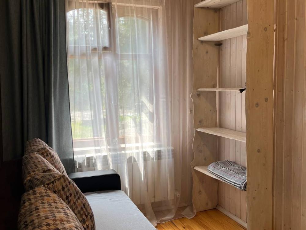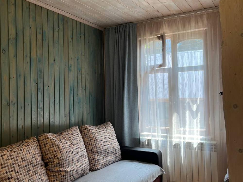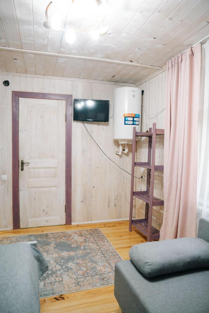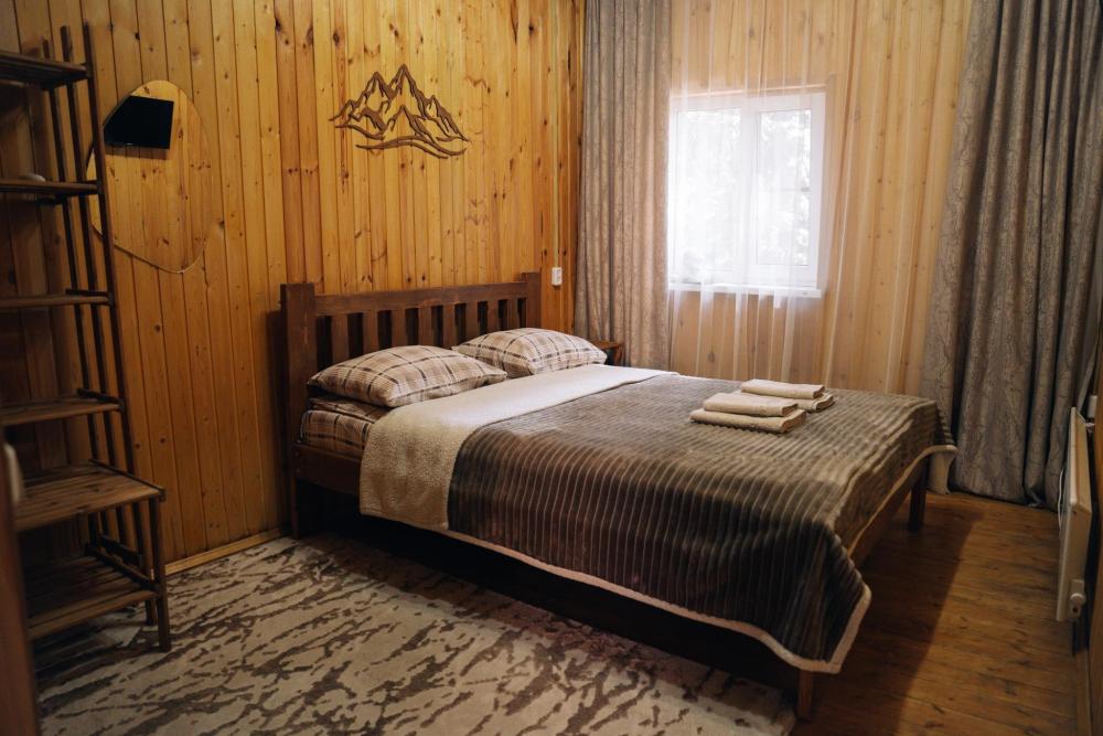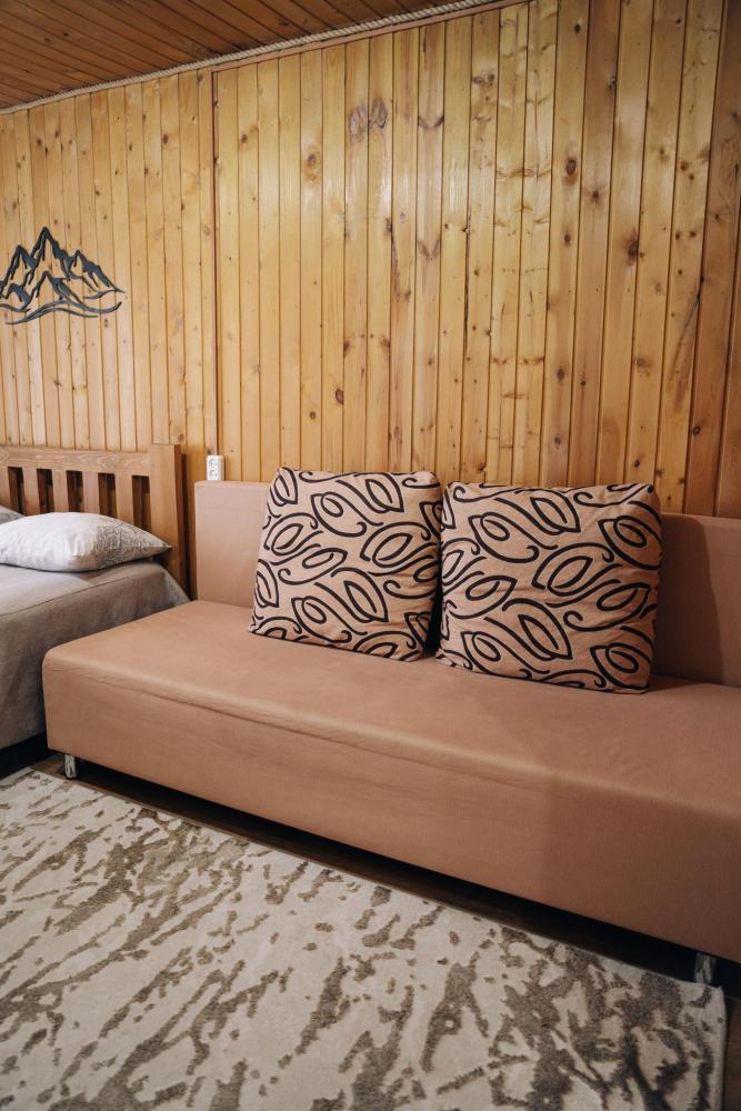 Стандартный номер с удобствами. В номере двуспальная кровать и диван кровать(раскладной). Также есть полки для хранения вещей, журнальный столик. прикроватная тумба. Все кухонные принадлежности находятся в общей кухне расположенной в соседнем здании. Кухня полностью оборудована и открыта круглосуточно. На территории есть беседки с мангальной зоной, парковка, зона костра, качели, гамаки и детская площадка. Вместимость 2-4 человека. Просим обратить внимание: У нас не пьют! В отеле запрещено распитие алкоголя. Не предусмотрено размещение с животными.