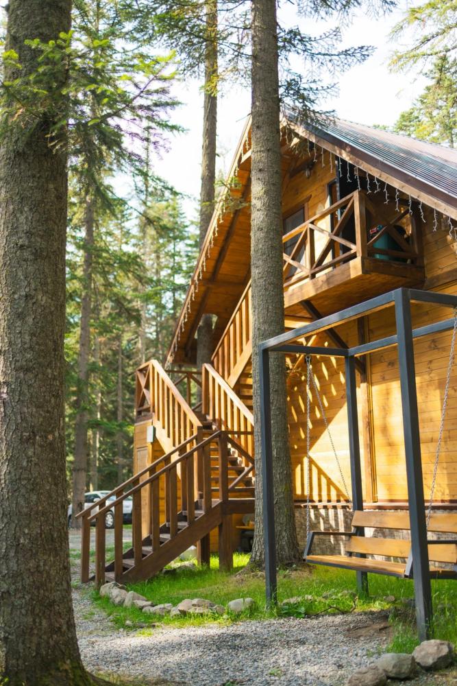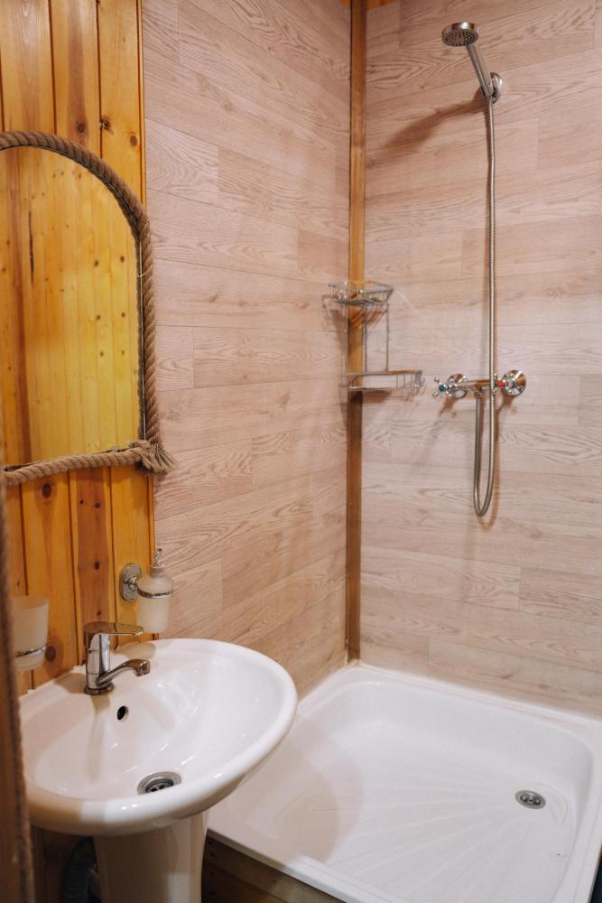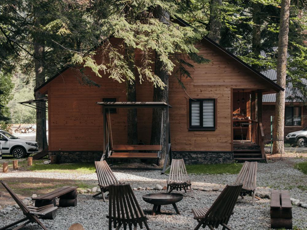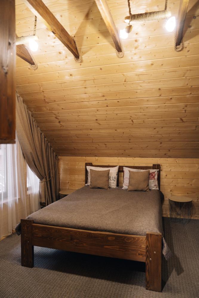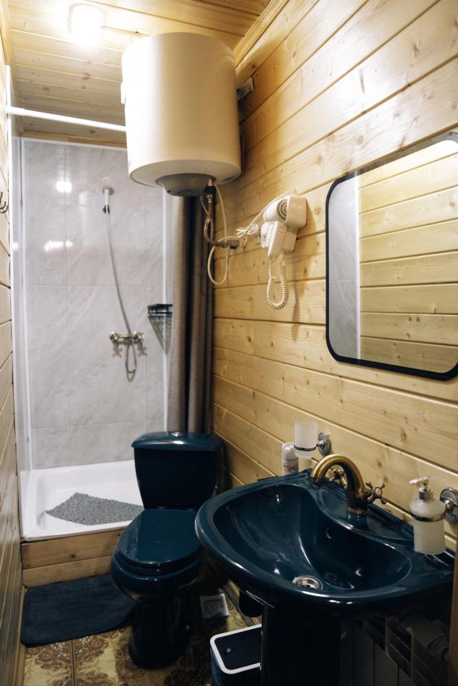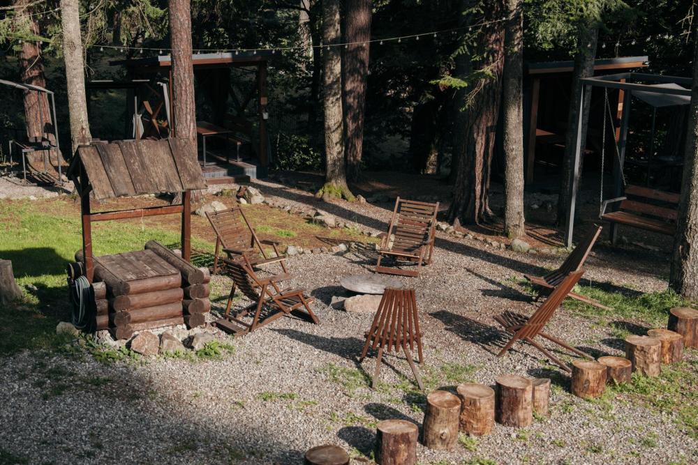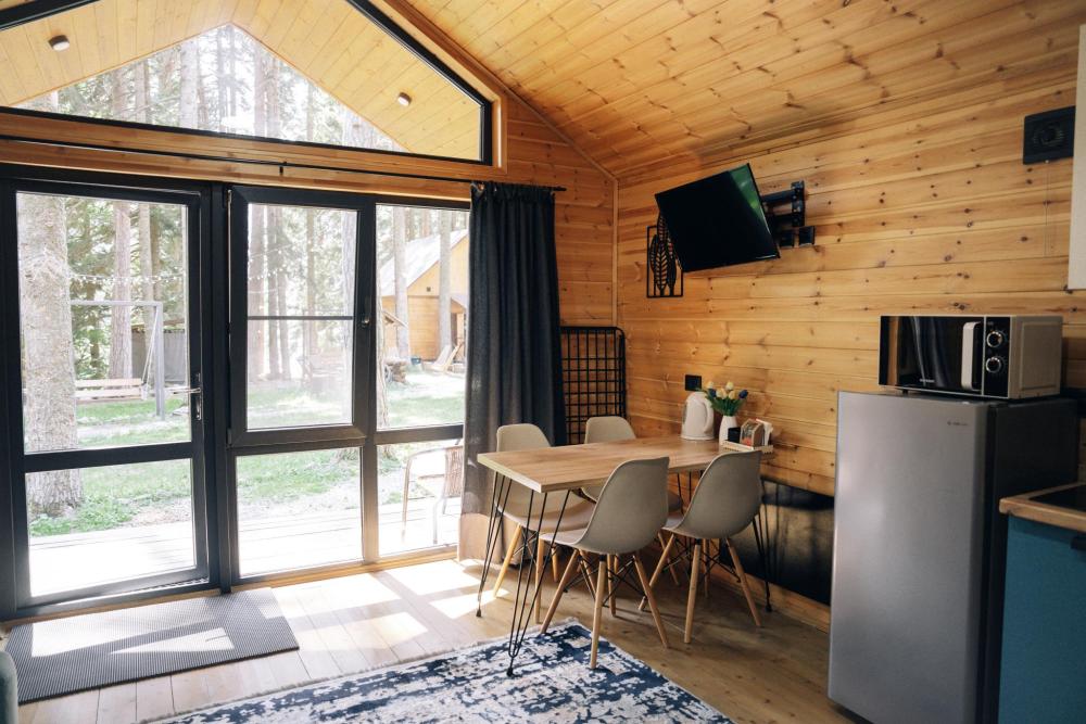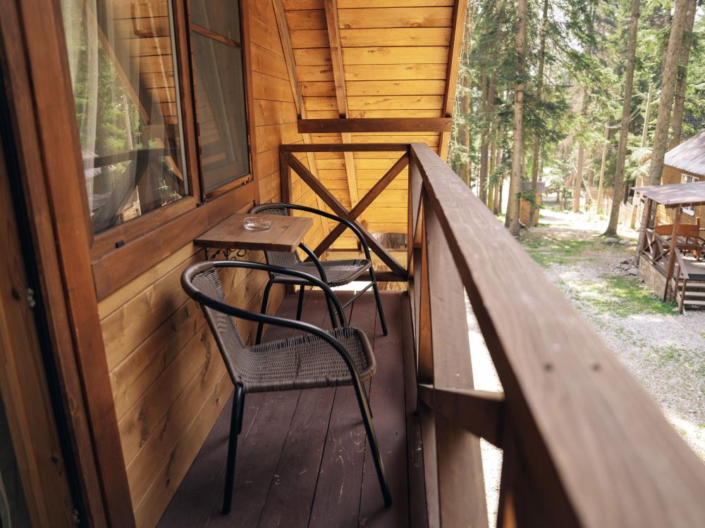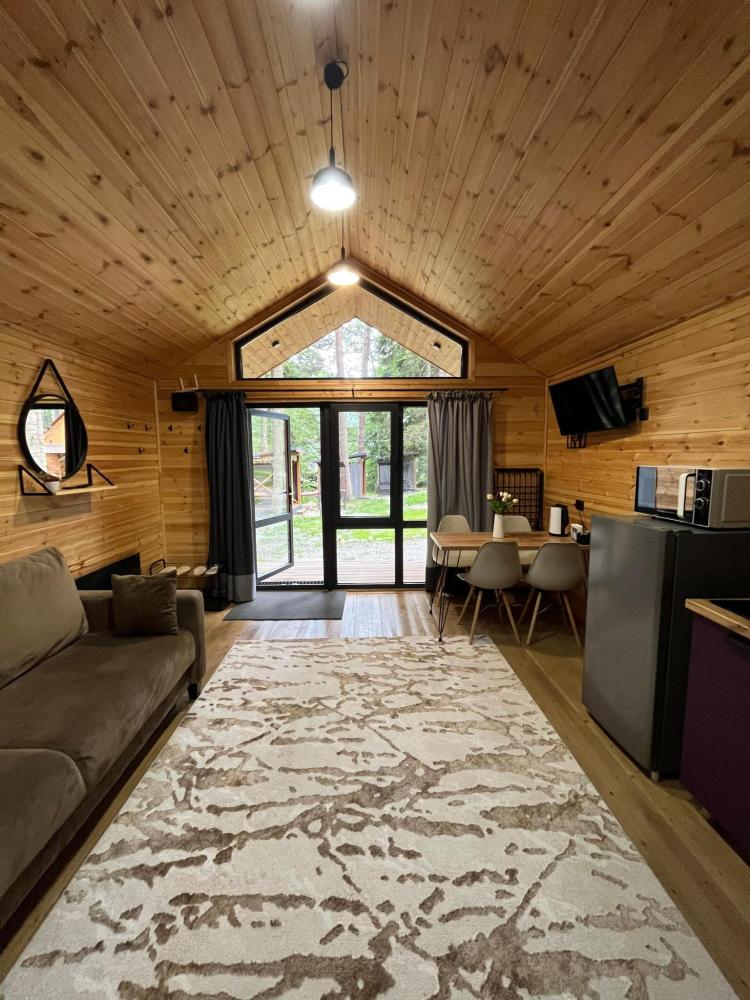 В номере расположена одна двуспальная кровать и раскладной диван. Удобства в номере. Кухня расположена на том же этаже, круглосуточно открыта. Беседки с мангальной зоной и парковка входят в стоимость проживания. Также на территории есть зона костра, качели, гамаки и детская площадка. Размещение 2-4 человека. Просим обратить внимание: У нас не пьют! В отеле запрещено распитие алкоголя. Не предусмотрено размещение с животными.