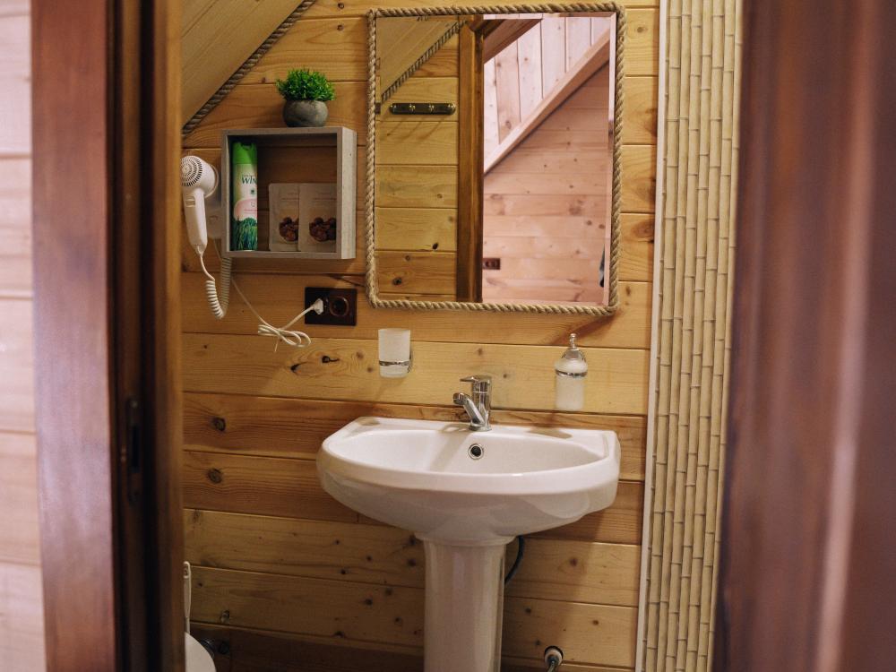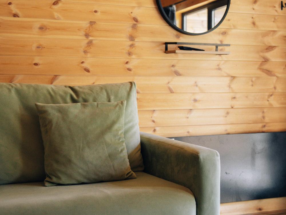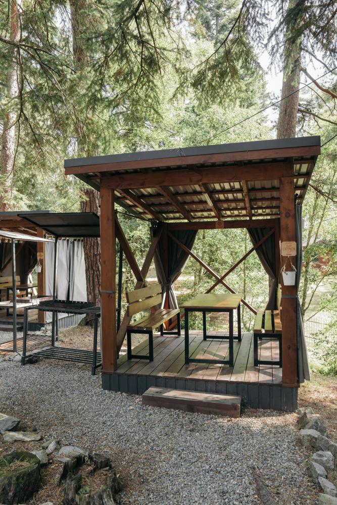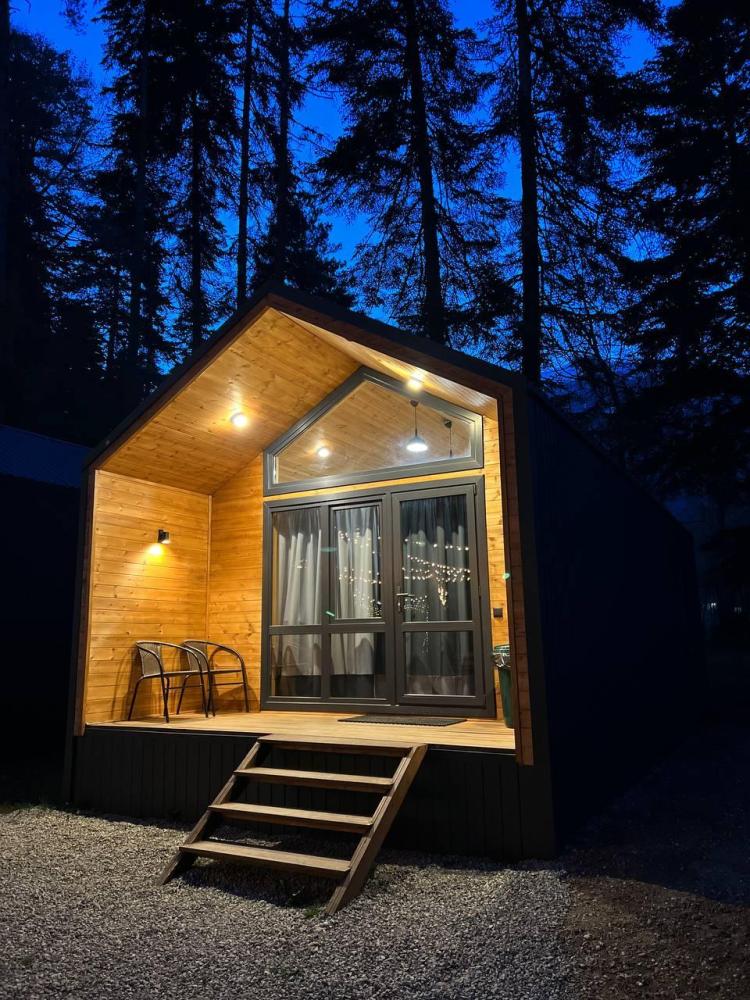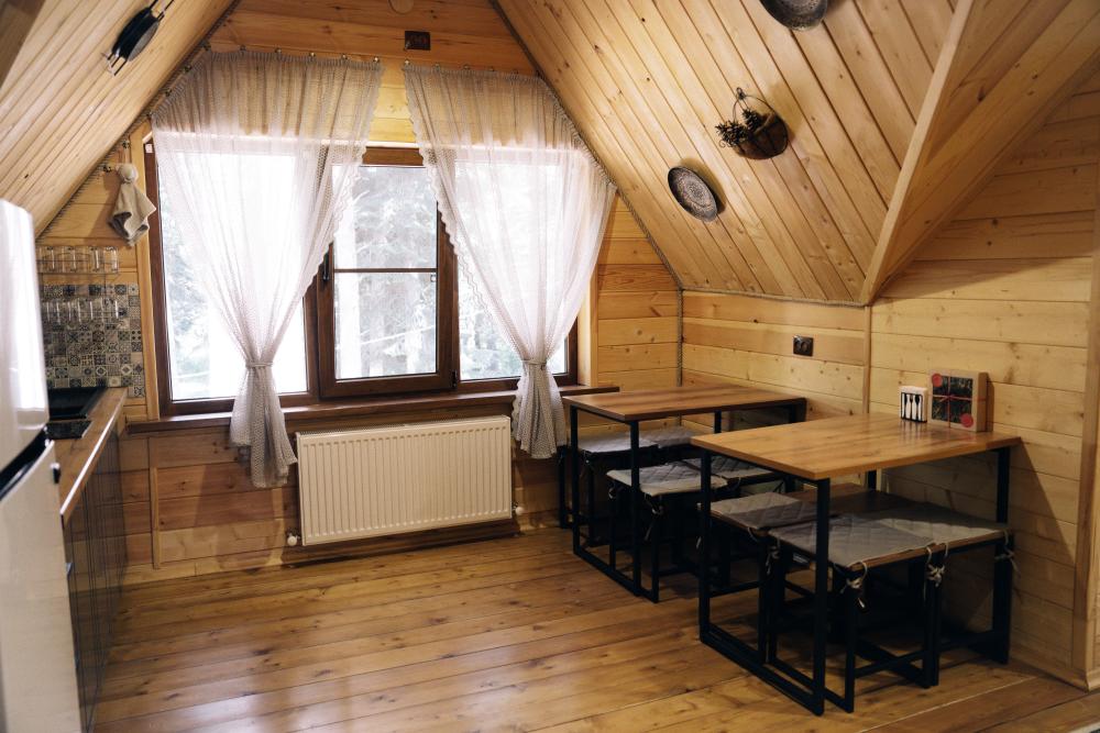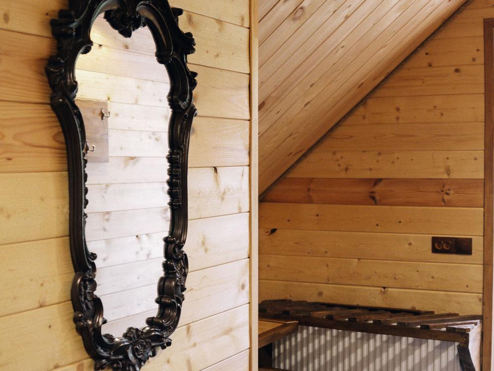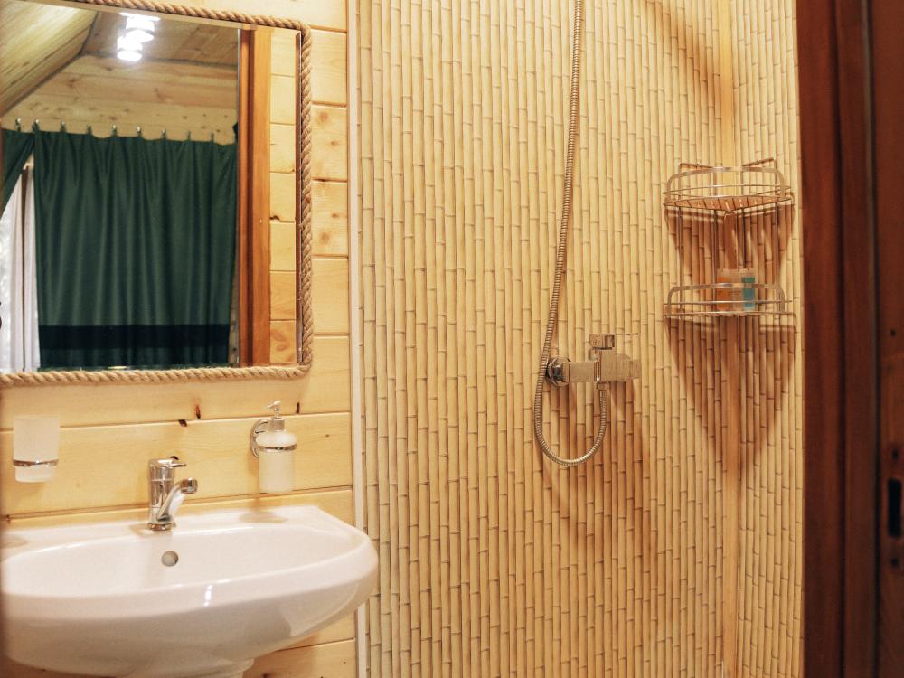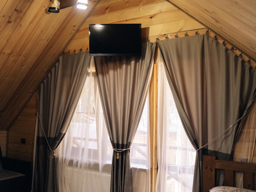 В номере расположена одна двуспальная кровать и раскладной диван. Удобства в номере. Кухня расположена на том же этаже, круглосуточно открыта. Беседки с мангальной зоной и парковка входят в стоимость проживания. Также на территории есть зона костра, качели, гамаки и детская площадка. Размещение 2-4 человека. Просим обратить внимание: У нас не пьют! В отеле запрещено распитие алкоголя. Не предусмотрено размещение с животными.