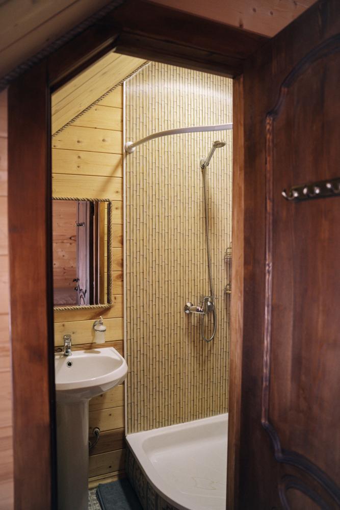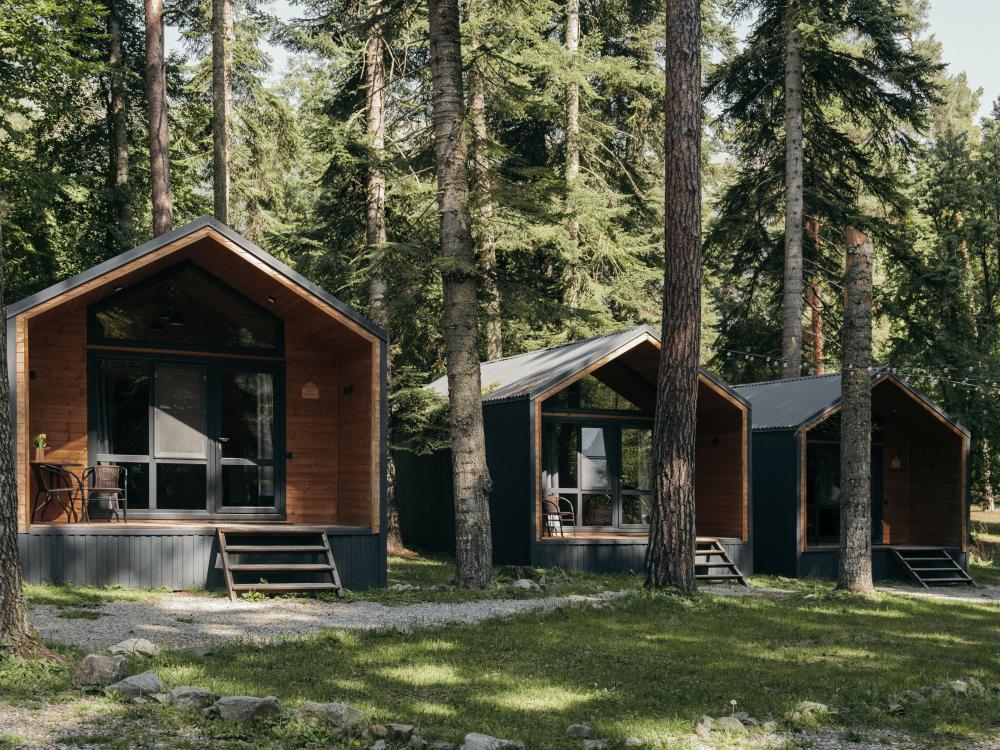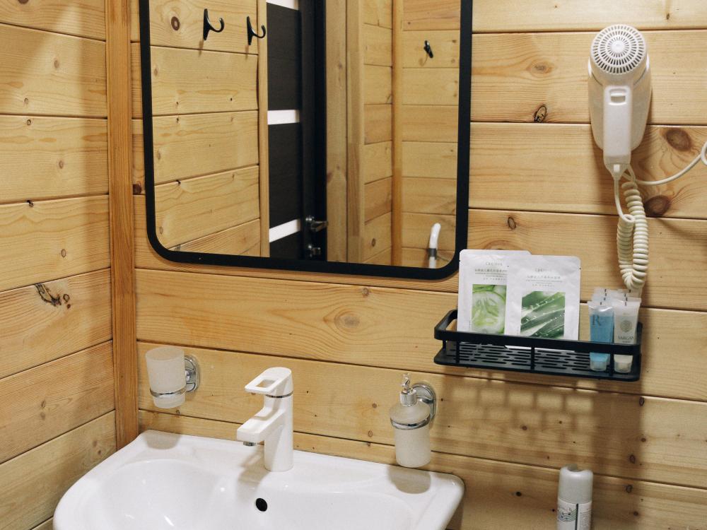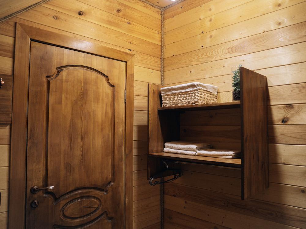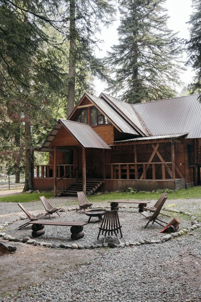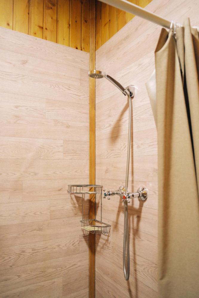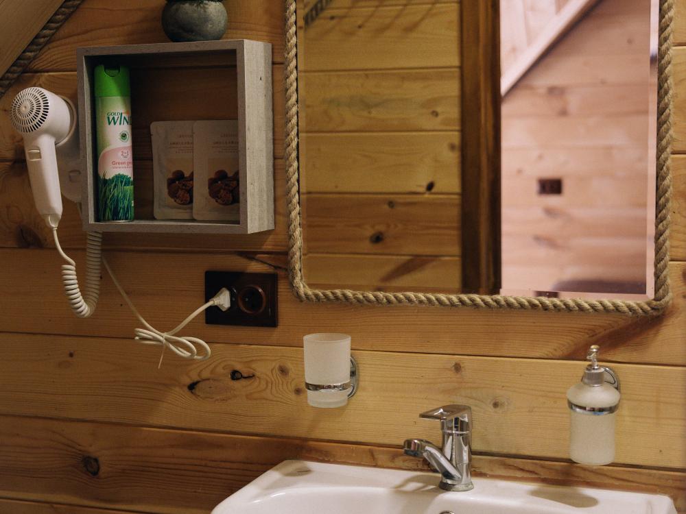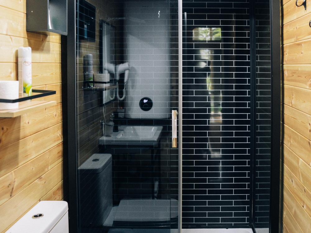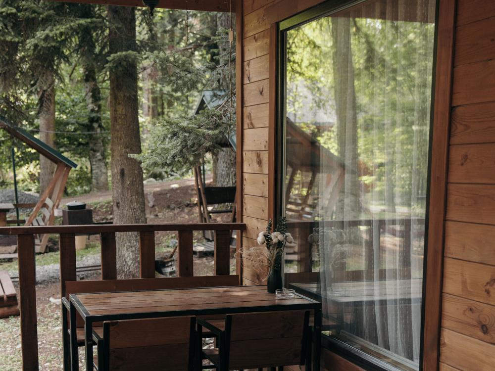 В номере расположена одна двуспальная кровать и раскладной диван. Удобства в номере. Кухня расположена на том же этаже, круглосуточно открыта. Беседки с мангальной зоной и парковка входят в стоимость проживания. Также на территории есть зона костра, качели, гамаки и детская площадка. Размещение 2-4 человека. Просим обратить внимание: У нас не пьют! В отеле запрещено распитие алкоголя. Не предусмотрено размещение с животными.