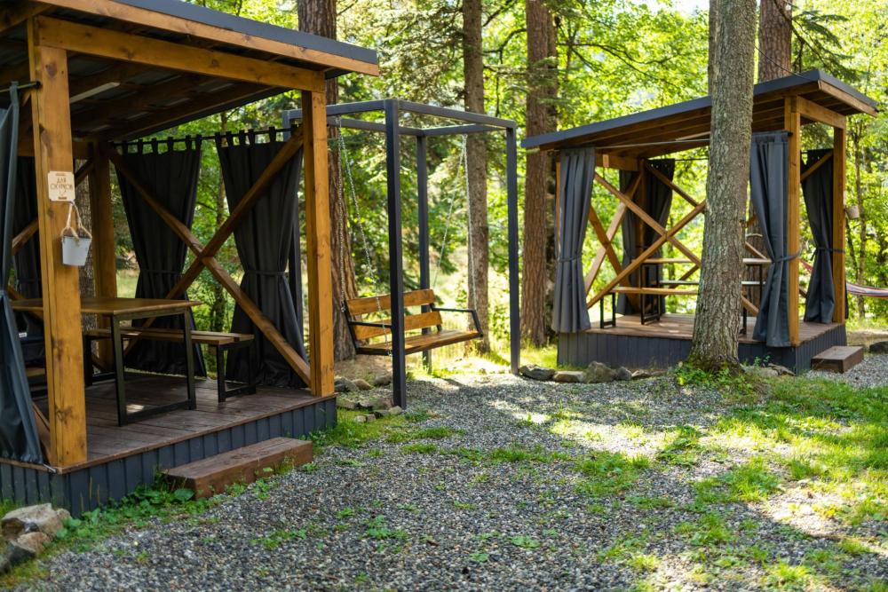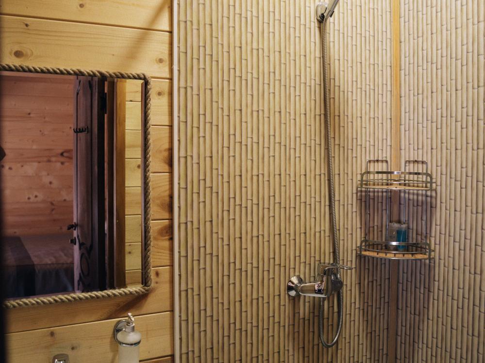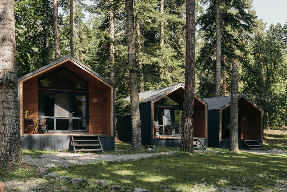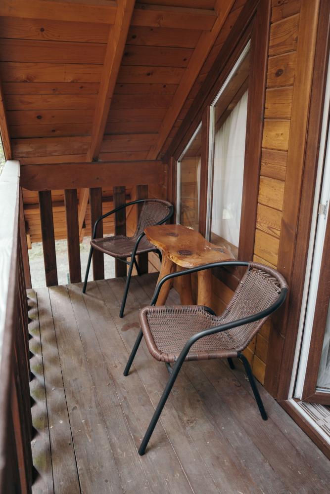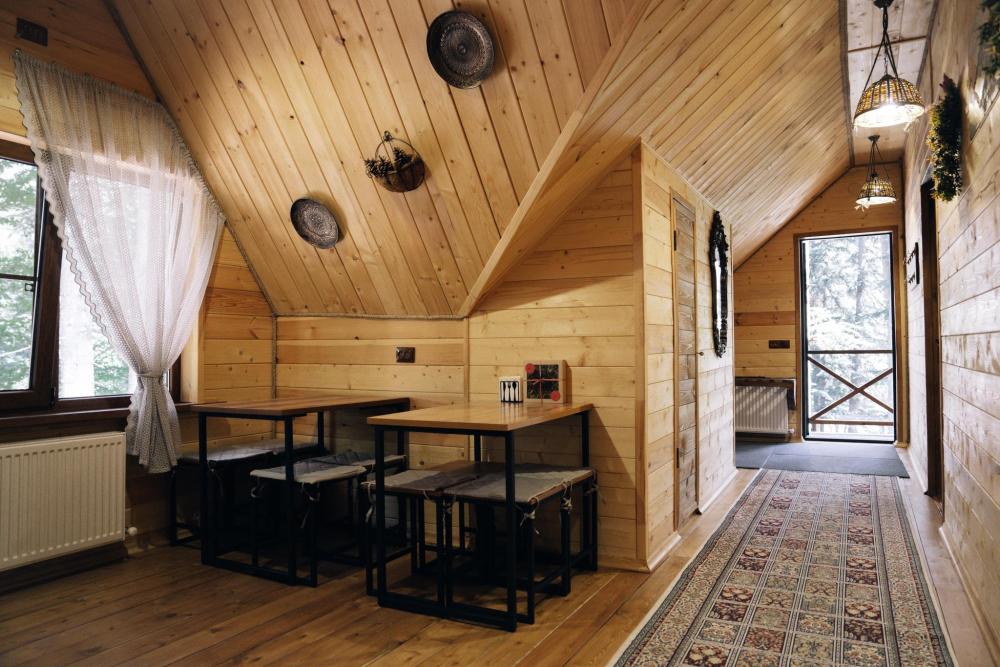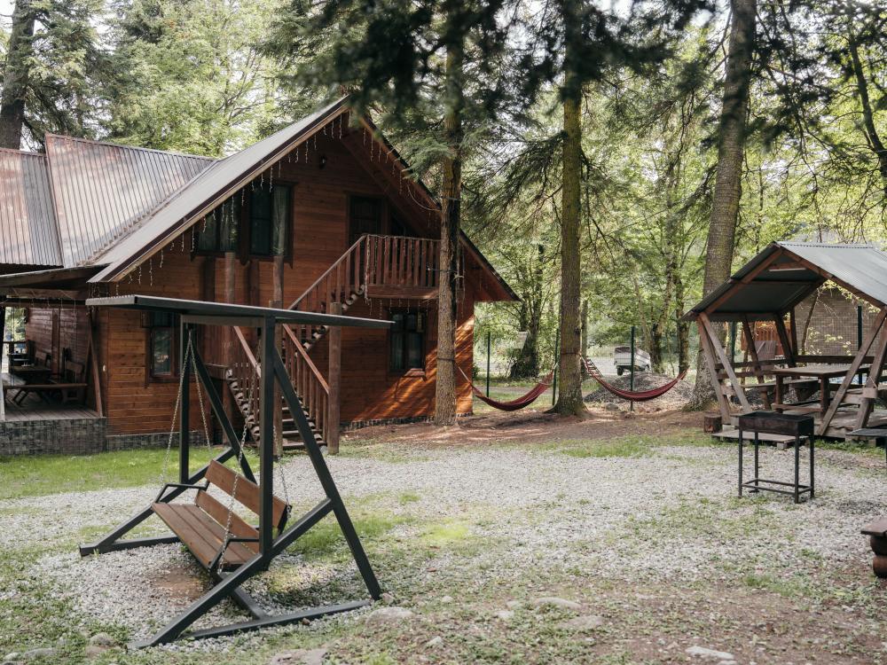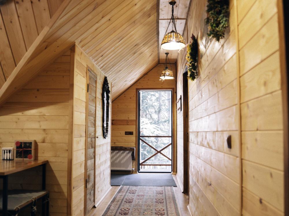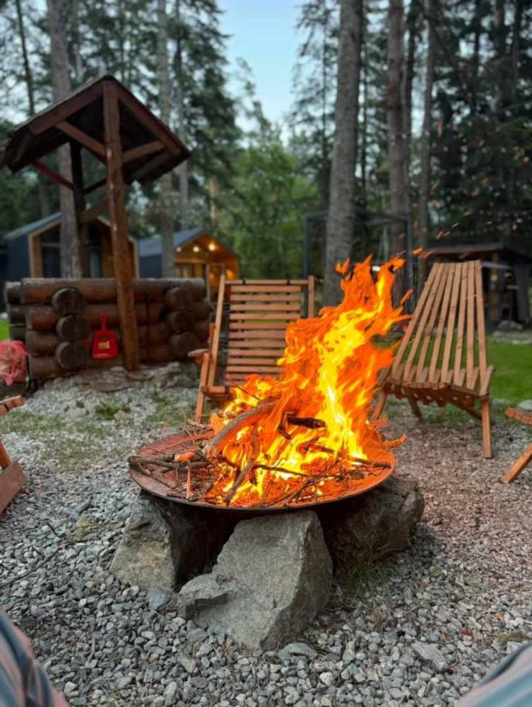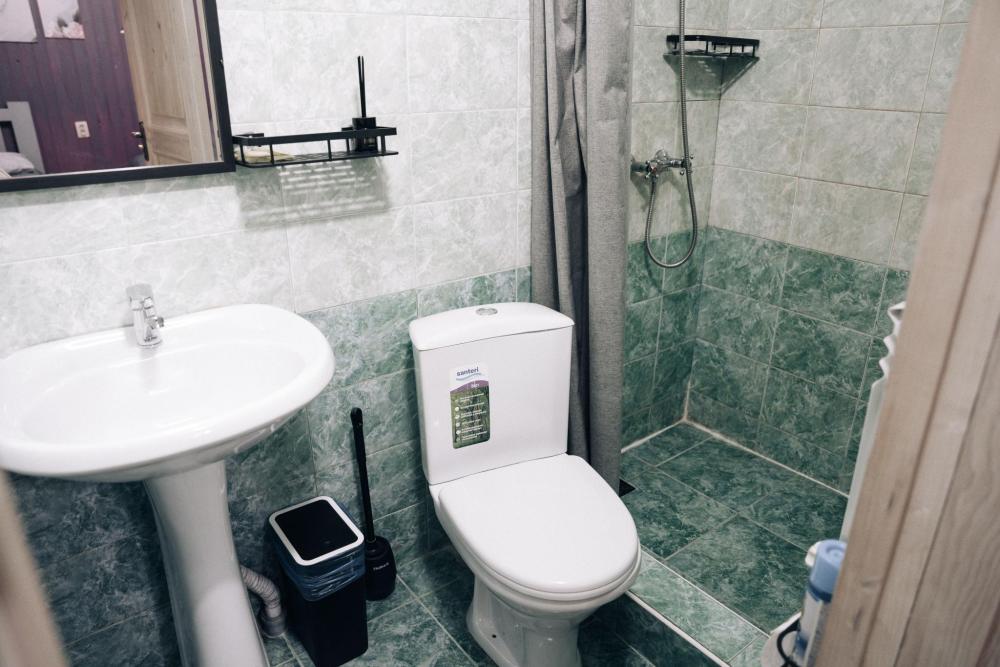 В номере расположена одна двуспальная кровать и раскладной диван. Удобства в номере. Кухня расположена на том же этаже, круглосуточно открыта. Беседки с мангальной зоной и парковка входят в стоимость проживания. Также на территории есть зона костра, качели, гамаки и детская площадка. Размещение 2-4 человека. Просим обратить внимание: У нас не пьют! В отеле запрещено распитие алкоголя. Не предусмотрено размещение с животными.