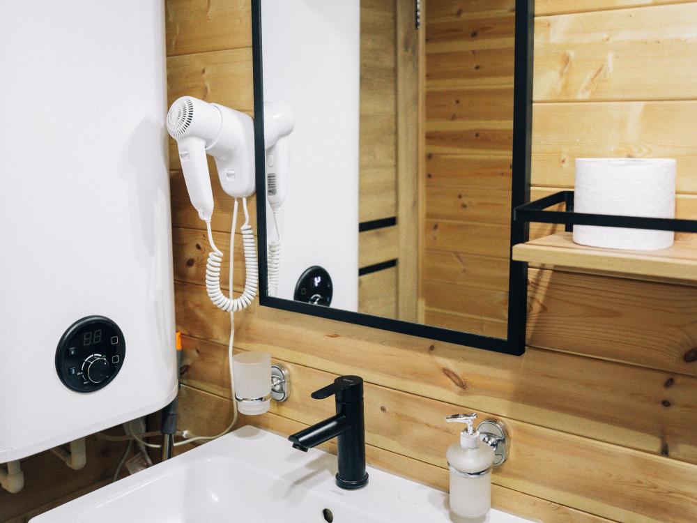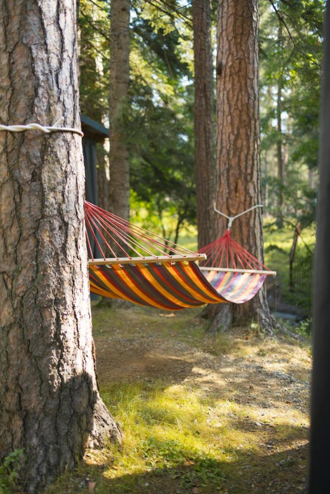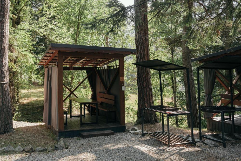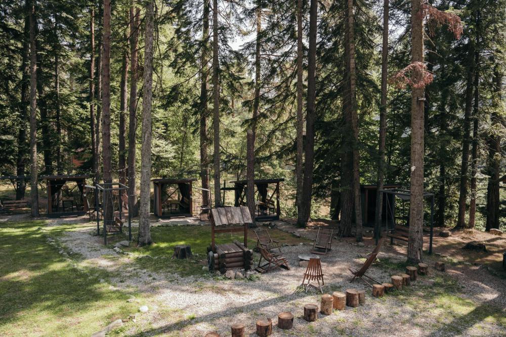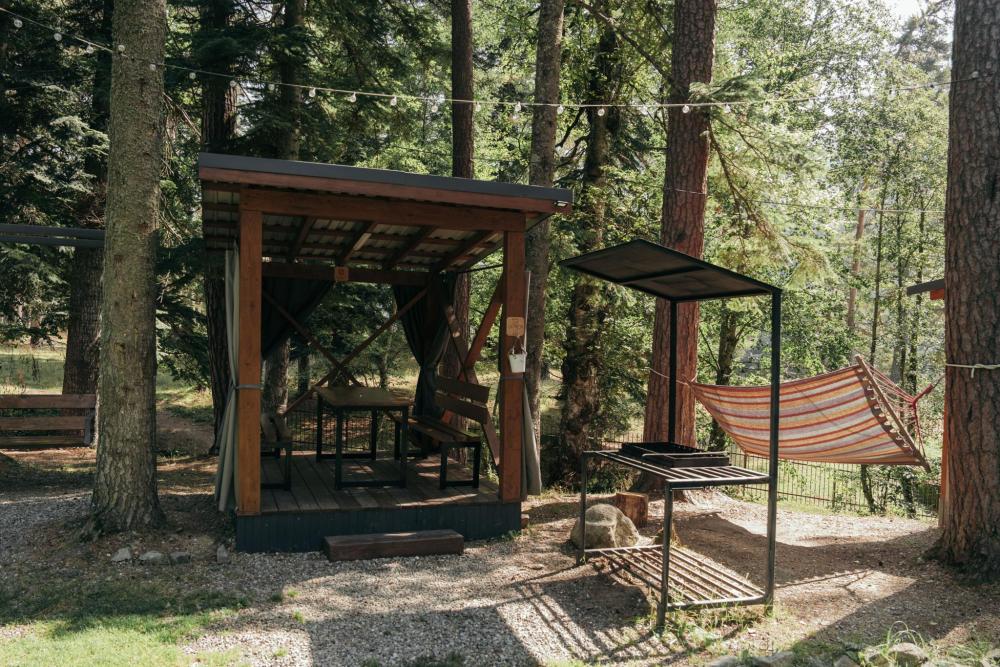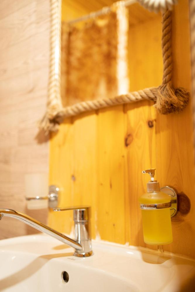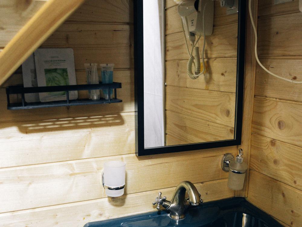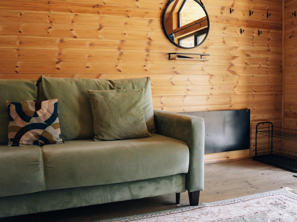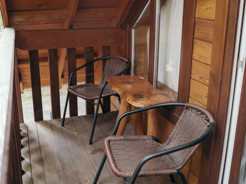 В номере расположена одна двуспальная кровать и раскладной диван. Удобства в номере. Кухня расположена на том же этаже, круглосуточно открыта. Беседки с мангальной зоной и парковка входят в стоимость проживания. Также на территории есть зона костра, качели, гамаки и детская площадка. Размещение 2-4 человека. Просим обратить внимание: У нас не пьют! В отеле запрещено распитие алкоголя. Не предусмотрено размещение с животными.