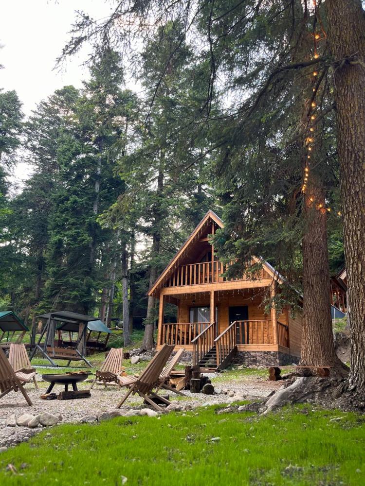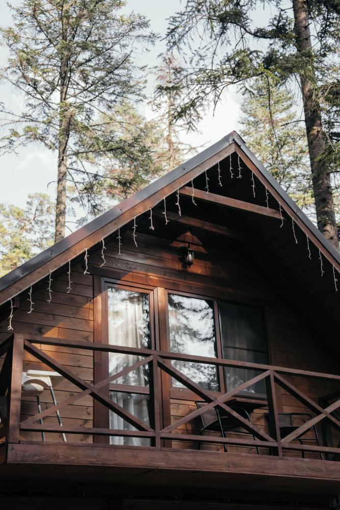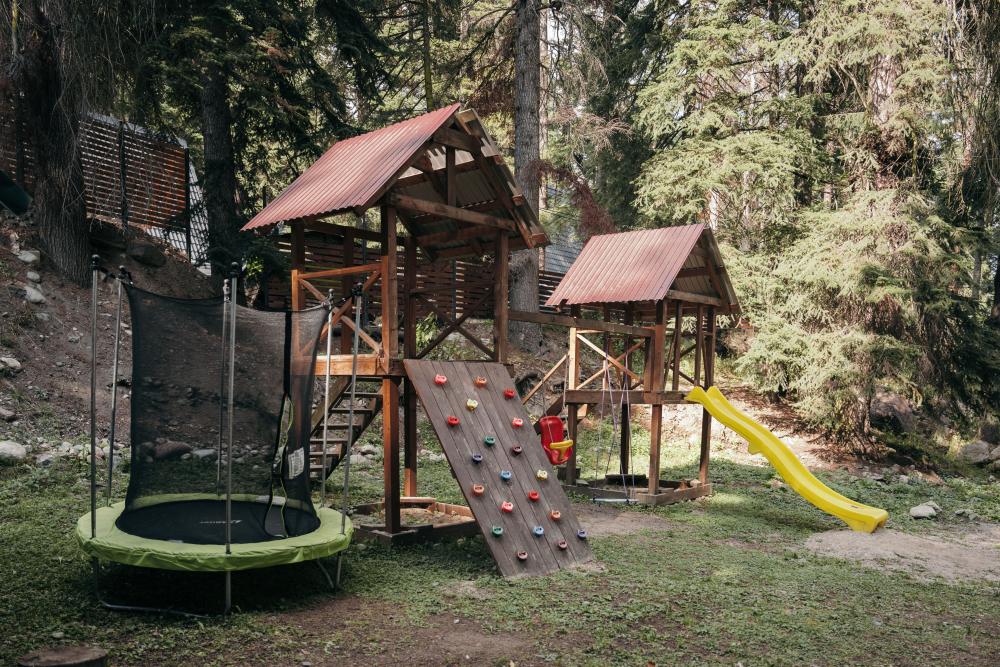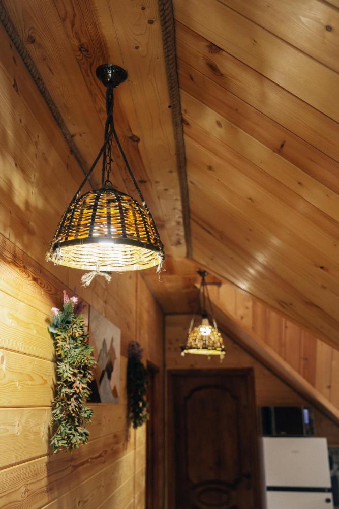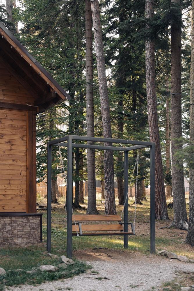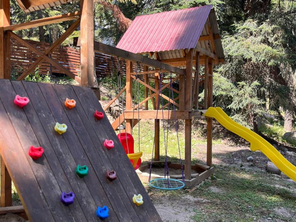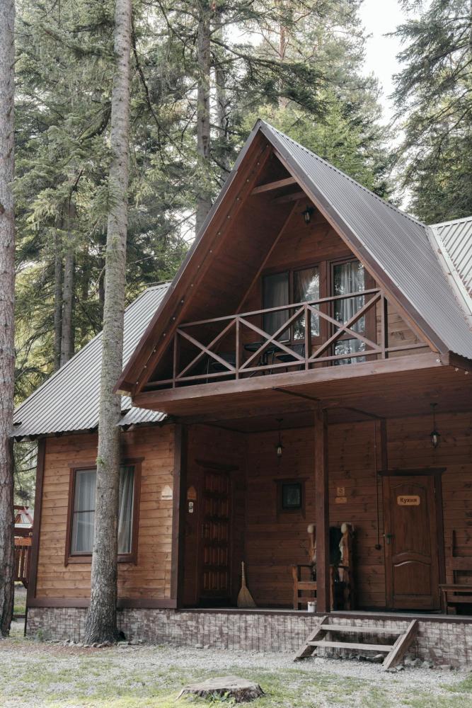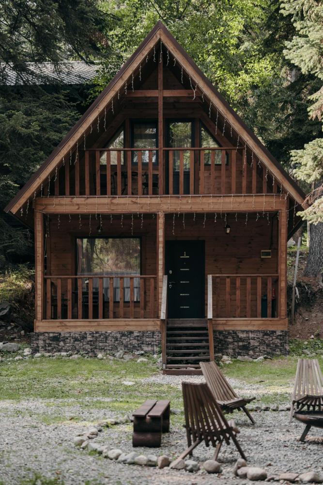 Уютный дом с мансардой. На первом этаже расположена студия (кухня-гостиная) и санузел. На мансардном этаже две изолированные спальные комнаты и балкон. Есть терраса с мебелью, а рядом расположены беседки с мангальной зоной и качели. Также на территории есть детская площадка. Вместимость шале 4-8 человек Просим обратить внимание: У нас не пьют! В отеле запрещено распитие алкоголя. Не предусмотрено размещение с животными.