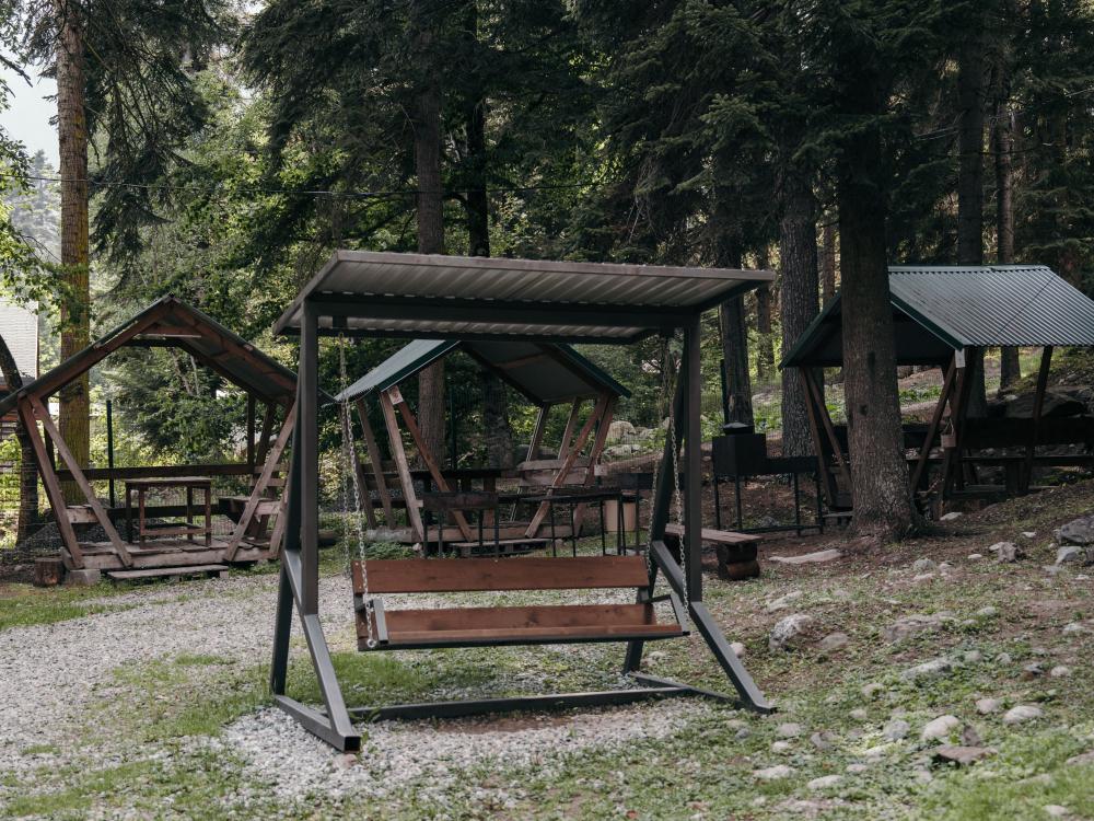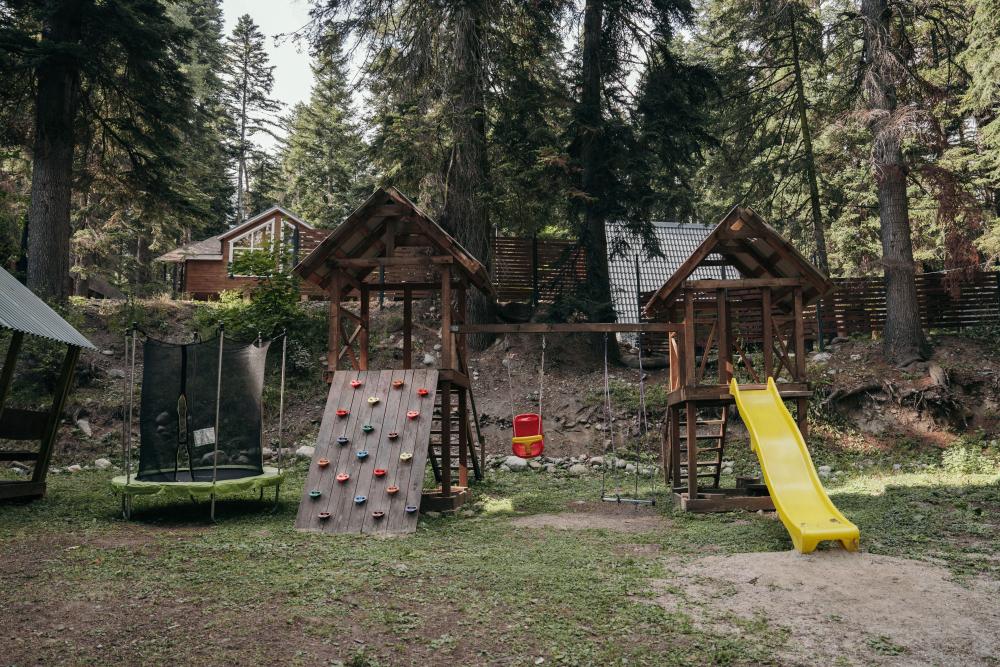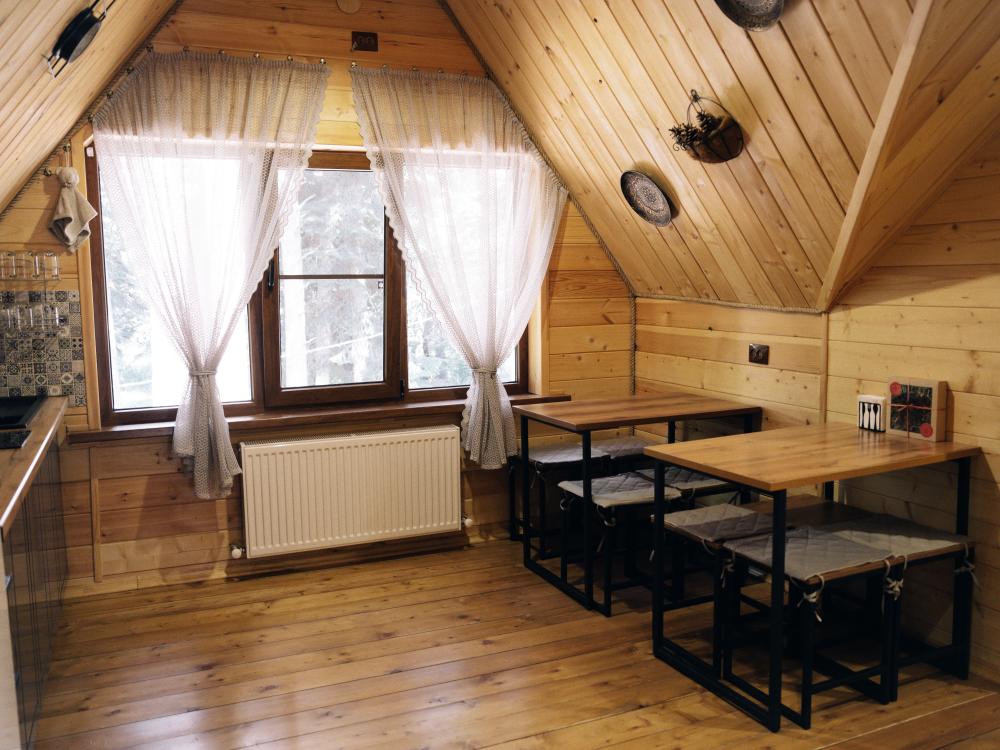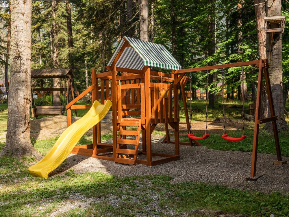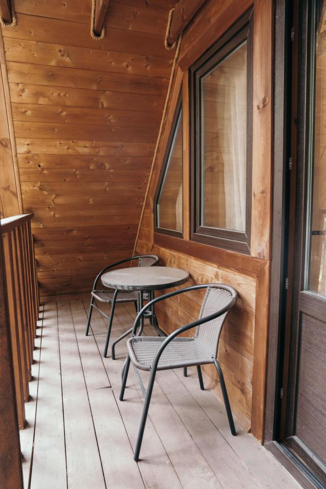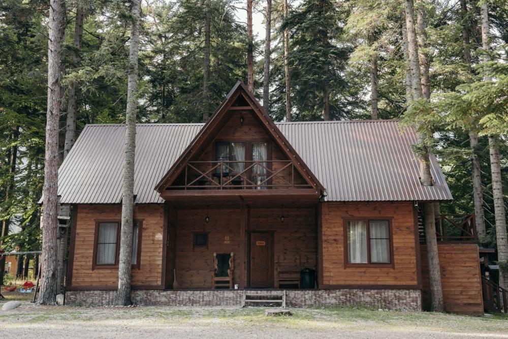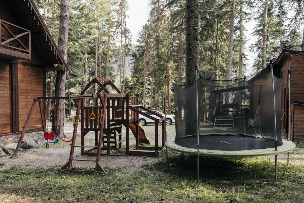 Уютный дом с мансардой. На первом этаже расположена студия (кухня-гостиная) и санузел. На мансардном этаже две изолированные спальные комнаты и балкон. Есть терраса с мебелью, а рядом расположены беседки с мангальной зоной и качели. Также на территории есть детская площадка. Вместимость шале 4-8 человек Просим обратить внимание: У нас не пьют! В отеле запрещено распитие алкоголя. Не предусмотрено размещение с животными.
