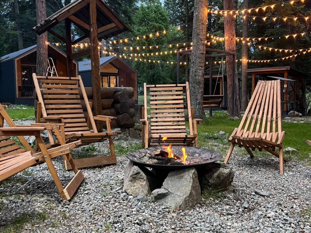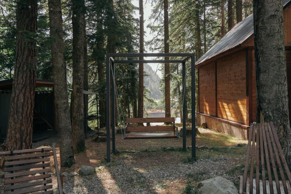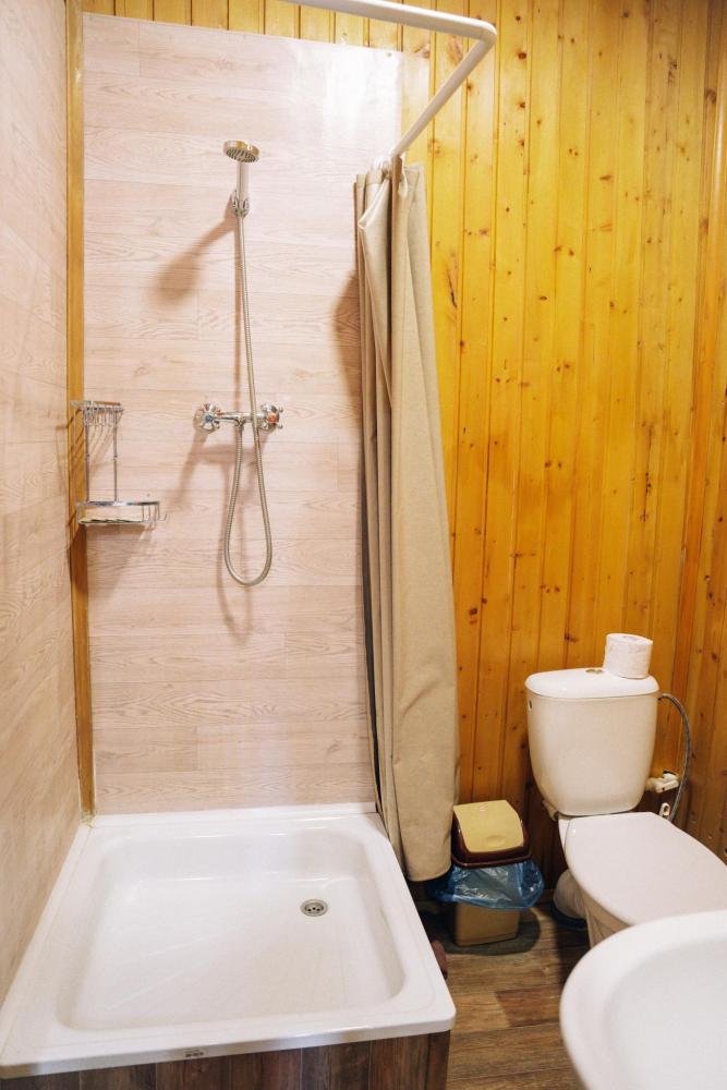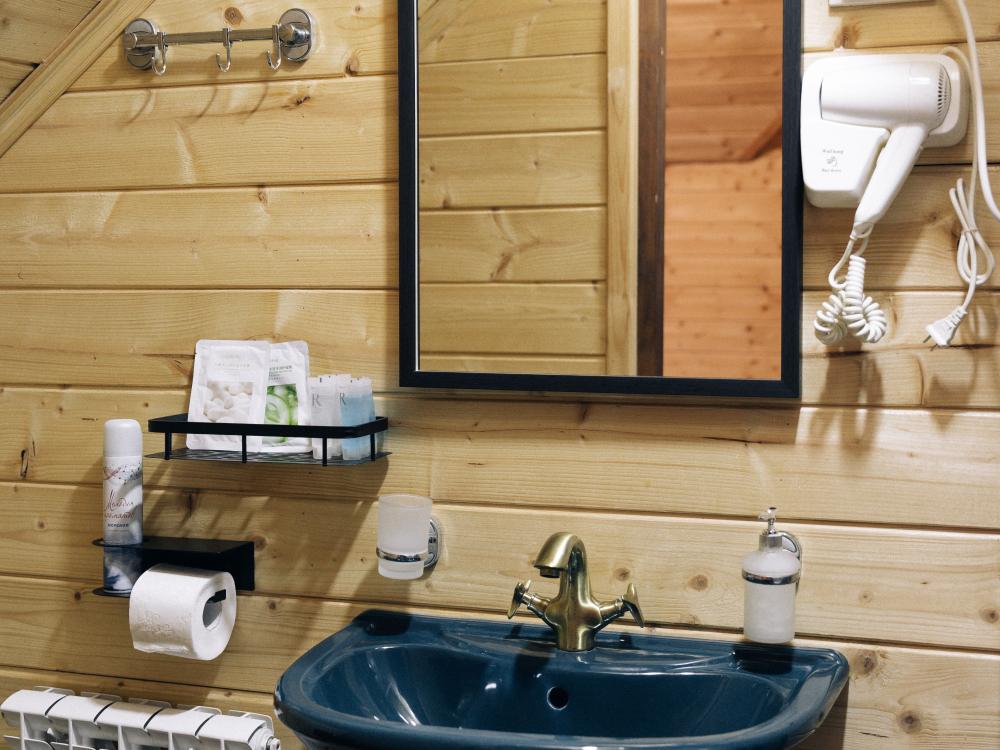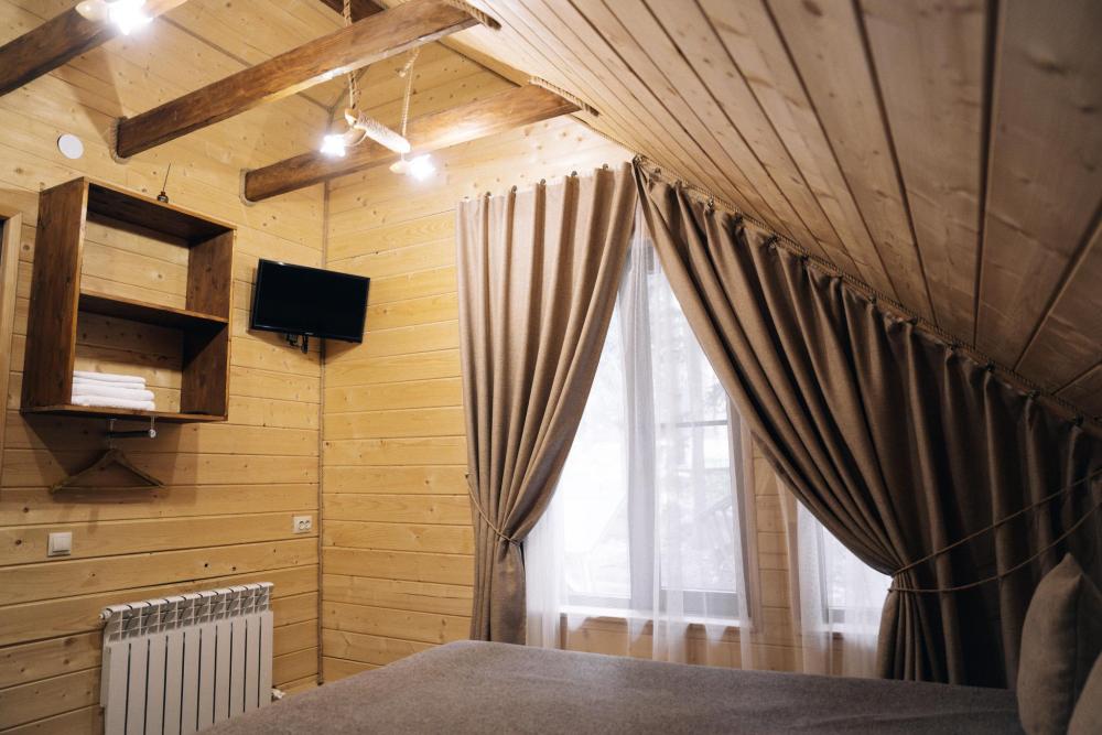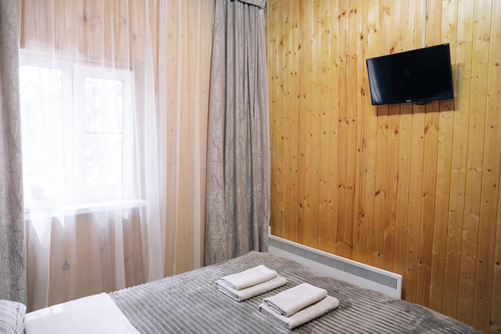 Стандартный двухместный номер с удобствами. В номере расположена двуспальная кровать. Также есть полки для хранения вещей, журнальный столик, прикроватная тумба, телевизор, фен. Все кухонные принадлежности находятся на общей кухне расположенной в соседнем здании. Кухня полностью оборудована и открыта круглосуточно. На территории есть беседки с мангальной зоной, парковка, зона костра, качели, гамаки и детская площадка. Вместимость 2 человека. Просим обратить внимание: У нас не пьют! В отеле запрещено распитие алкоголя. Не предусмотрено размещение с животными.