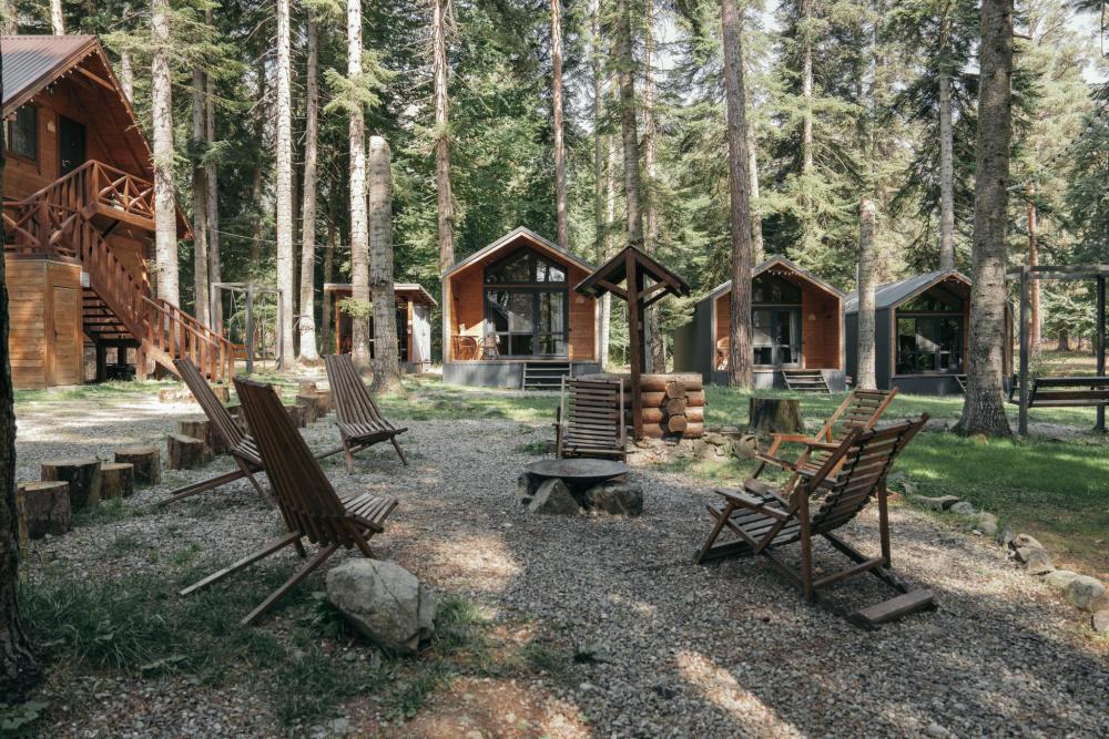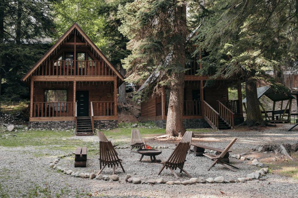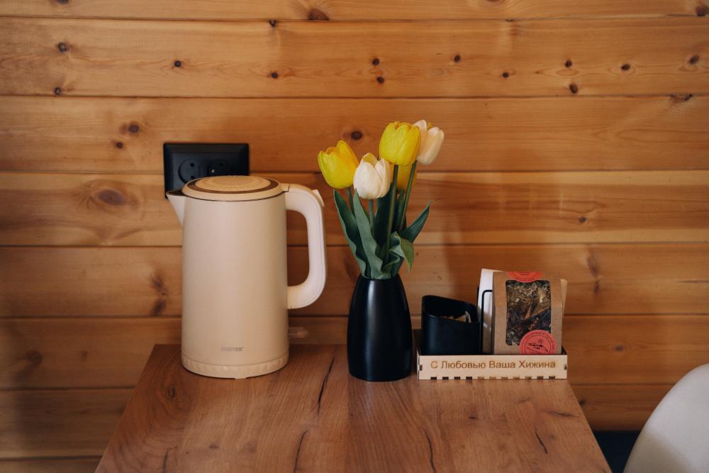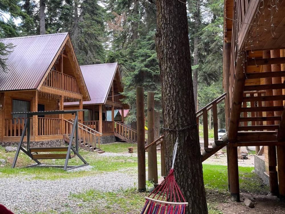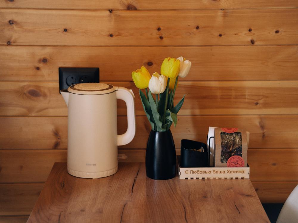 Стандартный двухместный номер с удобствами. В номере расположена двуспальная кровать. Также есть полки для хранения вещей, журнальный столик, прикроватная тумба, телевизор, фен. Все кухонные принадлежности находятся на общей кухне расположенной в соседнем здании. Кухня полностью оборудована и открыта круглосуточно. На территории есть беседки с мангальной зоной, парковка, зона костра, качели, гамаки и детская площадка. Вместимость 2 человека. Просим обратить внимание: У нас не пьют! В отеле запрещено распитие алкоголя. Не предусмотрено размещение с животными.
