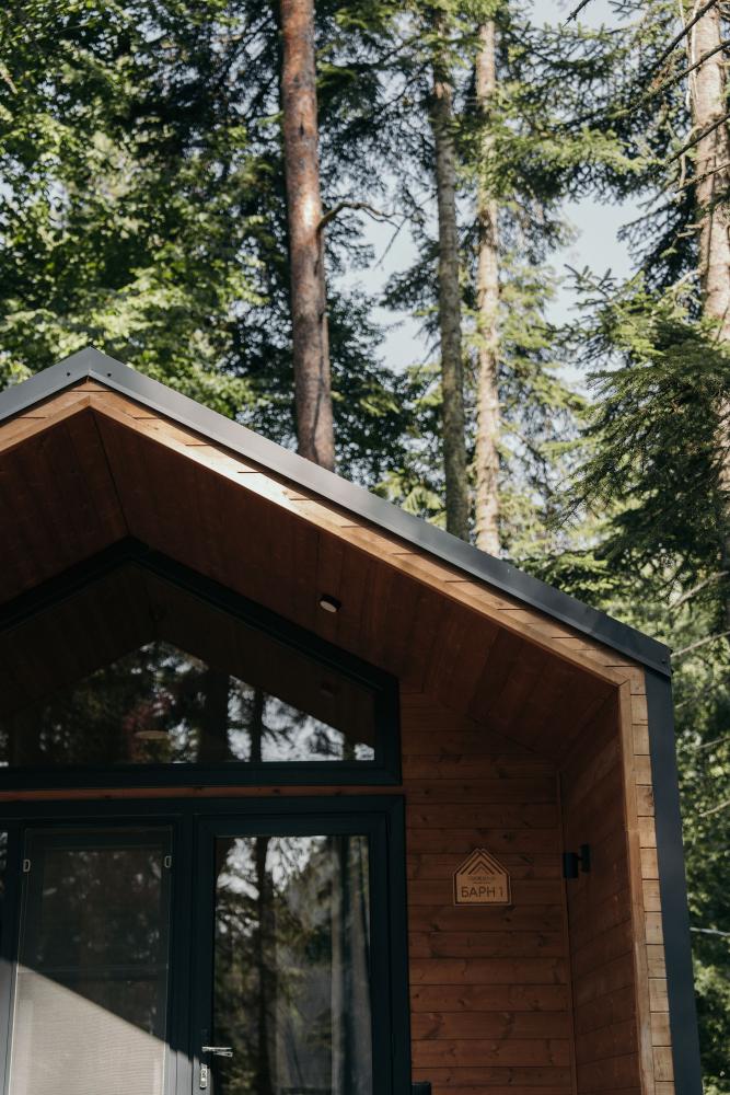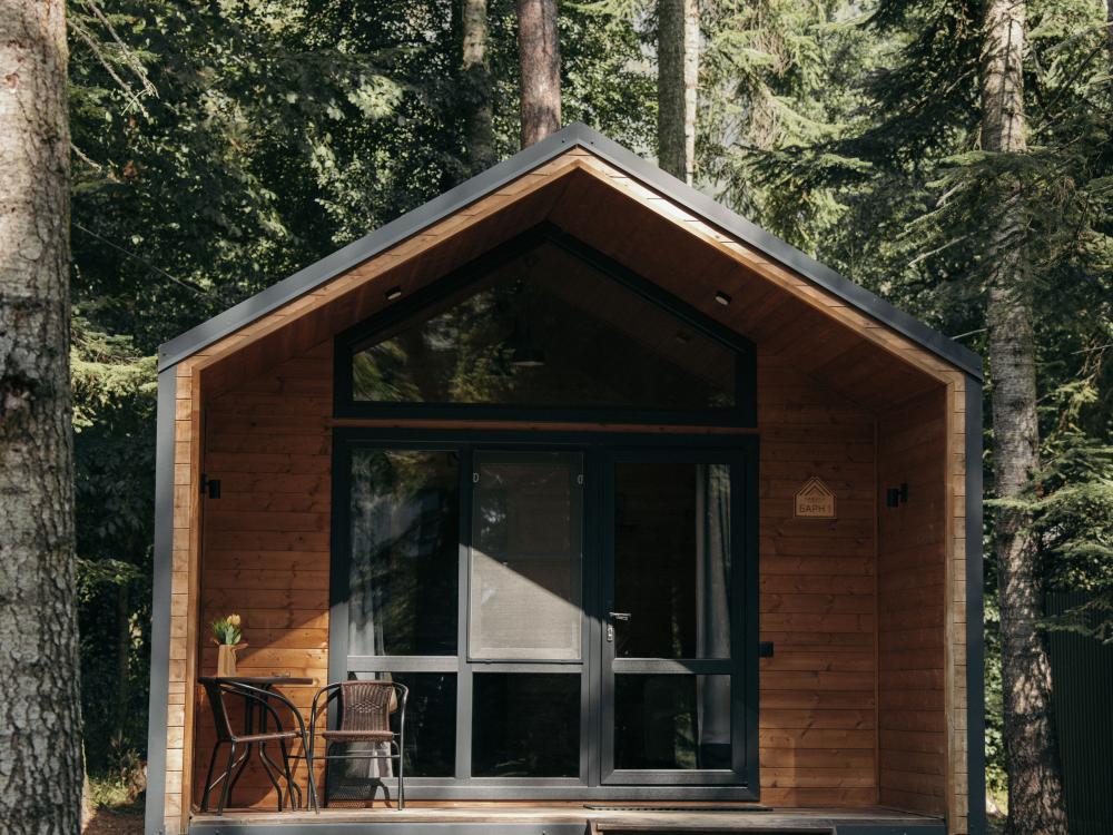 Стильные комфортабельные Барны с панорамными окнами полностью оборудованы всем необходимым для прекрасного отдыха. Домик представляет собой изолированную спальную комнату, кухню-гостиную, санузел, террасу. Вместимость до 4-х человек. Просим обратить внимание: У нас не пьют! В отеле запрещено распитие алкоголя. Не предусмотрено размещение с животными.