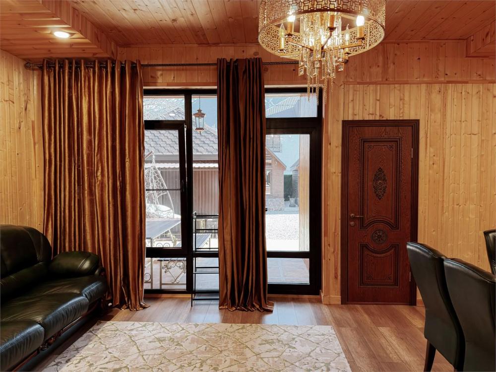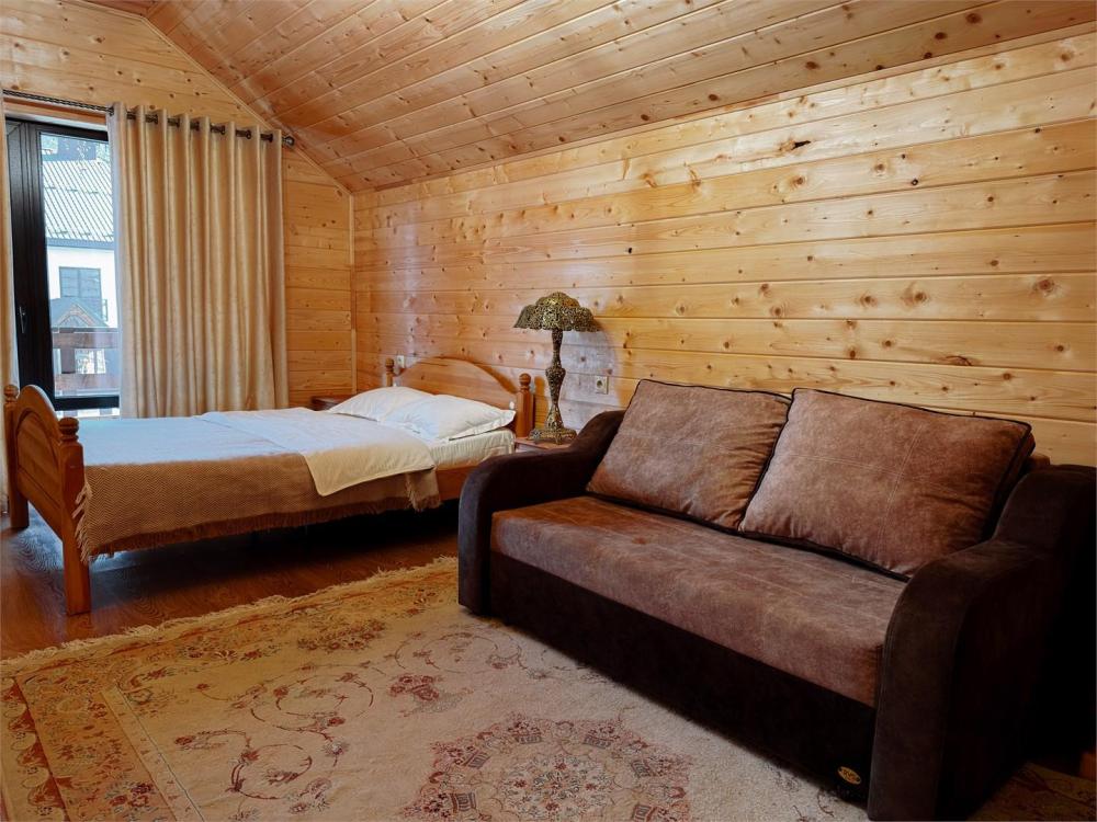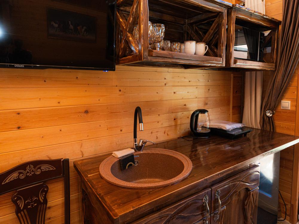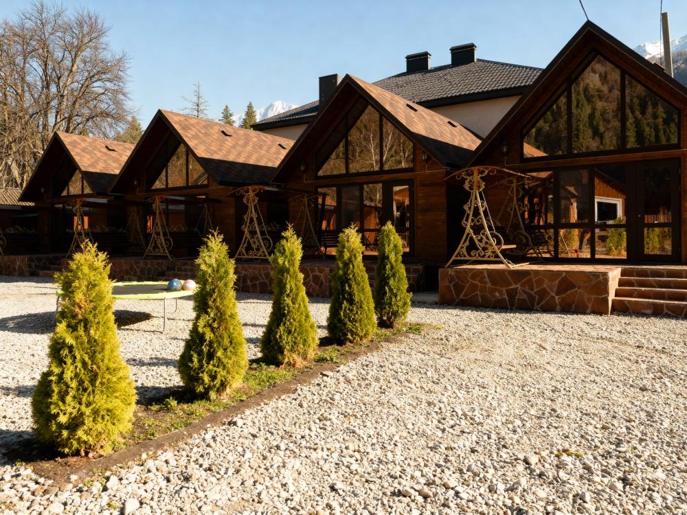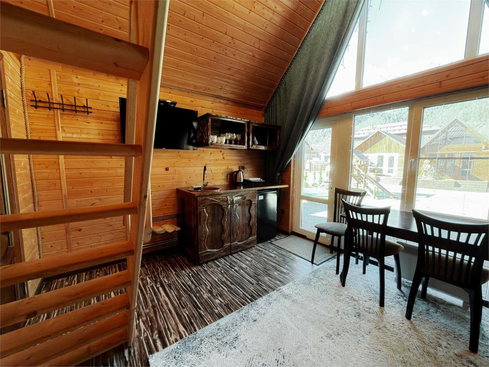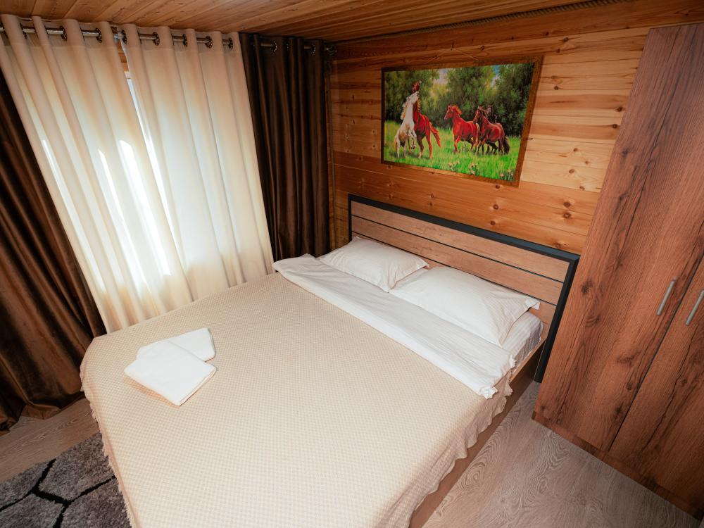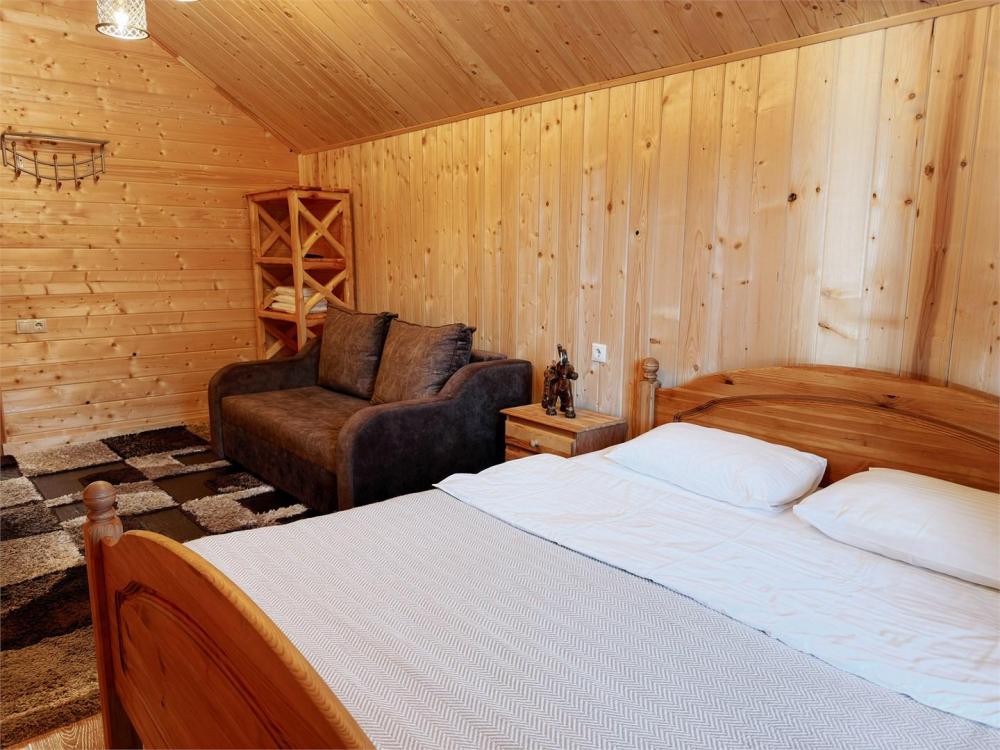 Улучшенное шале общей площадью 45 кв.м. с комфортным размещением до 4-х гостей. Для комфортного проживания гостей дом оснащен всем необходимым: гостиная с обеденной зоной, кухня оснащенная необходимой техникой и посудой (чайник, холодильник, плита, посуда), телевизор, диван, две спальни с двухспальной кроватью, ванная комната с душем, набор полотенец, туалетно-гигиенические принадлежности, фен.