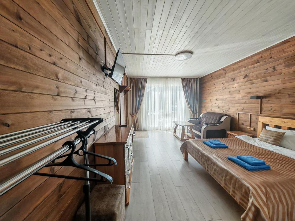 Уютный тёплый номер со своей верандой и прекрасным видом из окна, возможность насладиться природой, красота и днем и ночью, повышенный комфорт, шторы блэк-метал, зеркальный шкаф, тëплые полы, WiFi