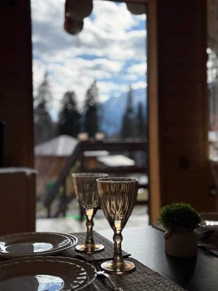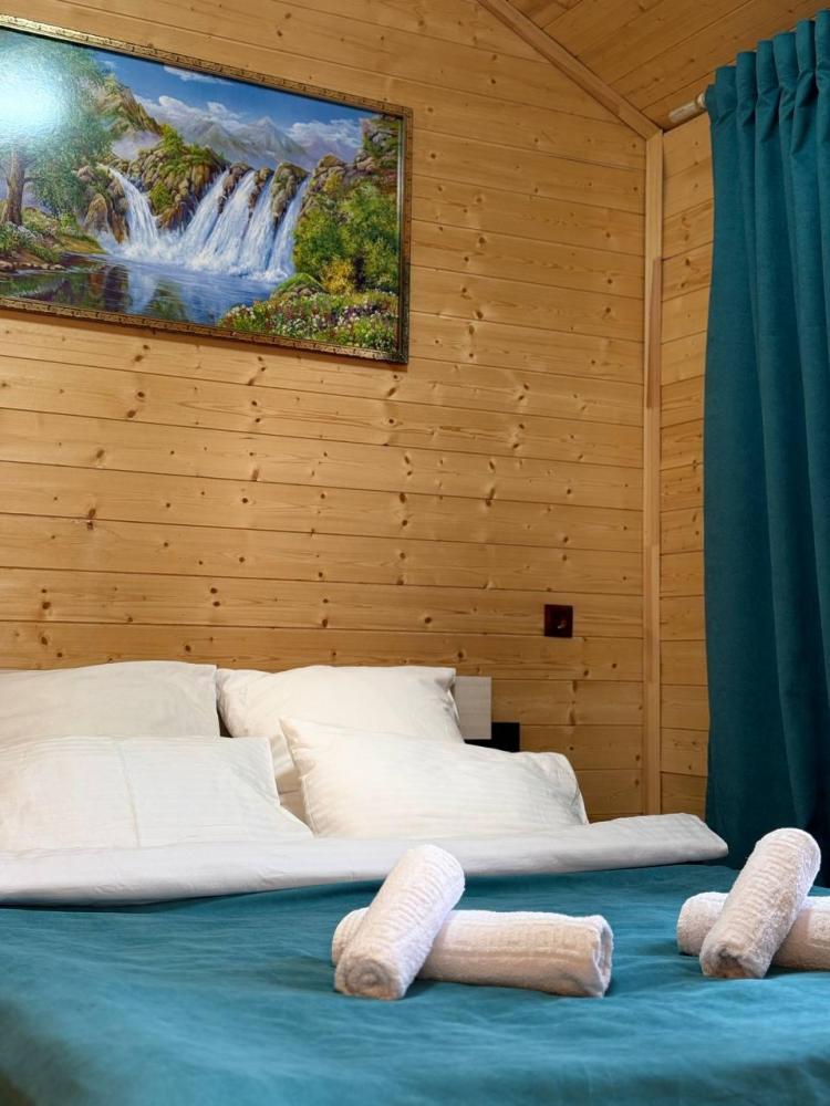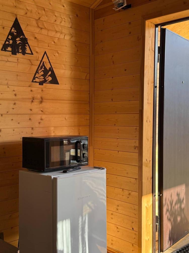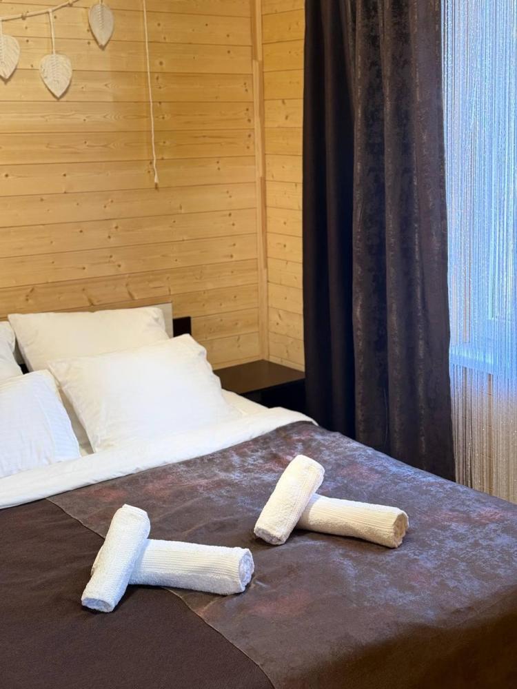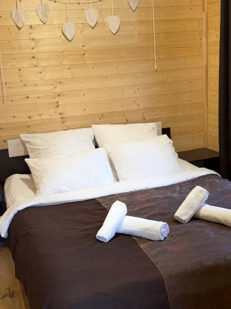 Уютное шале с видом на лес для 4 гостей. В домике: двуспальная кровать, диван, полноценная кухня с техникой и посудой, собственная ванная комната с душевой кабиной и феном, телевизор, предусмотрены наборы полотенец и постельного белья.