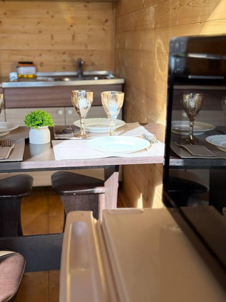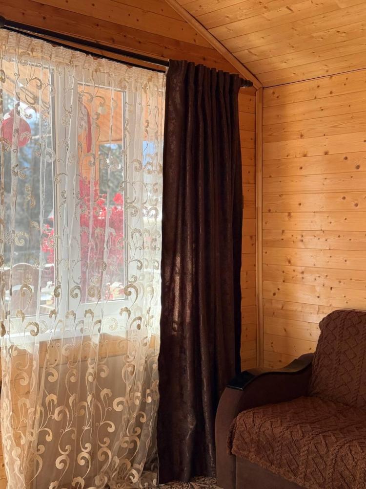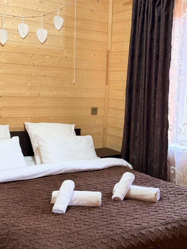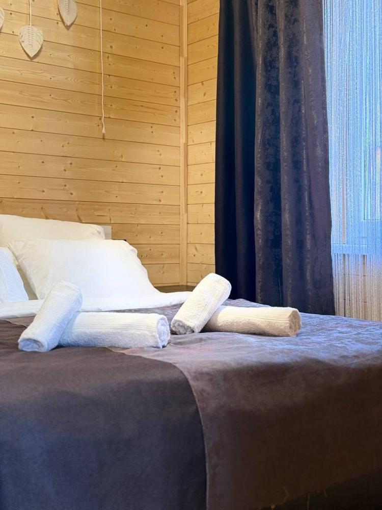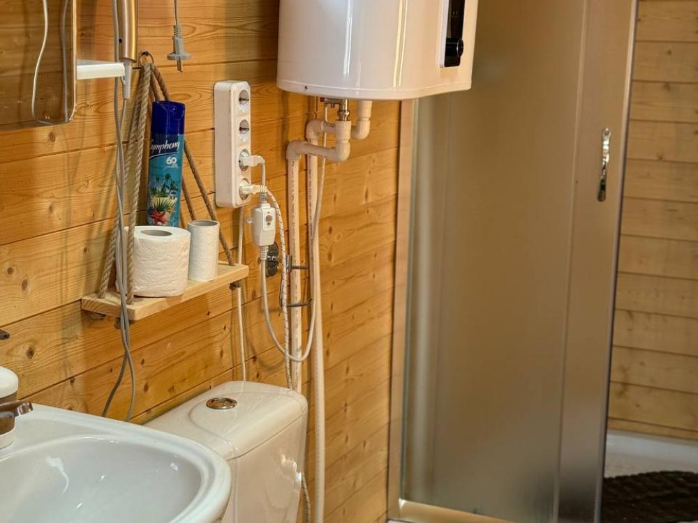 Уютное шале с видом на лес для 4 гостей. В домике: двуспальная кровать, диван, полноценная кухня с техникой и посудой, собственная ванная комната с душевой кабиной и феном, телевизор, предусмотрены наборы полотенец и постельного белья.