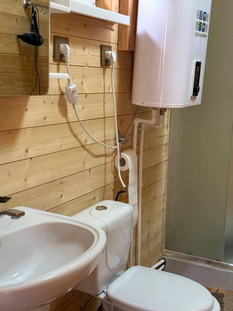 Уютное шале для комфортного проживания 10 гостей, расположенное в живописном лесу. В доме есть просторная гостиная с камином и большим диваном, где можно расслабиться и насладиться видами. Для сна предусмотрены четыре двуспальные кровати и два раскладных дивана. Кухня полностью оборудована бытовой техникой, посудой и всем необходимым для приготовления пищи. В доме также есть одна собственная ванная комната с душевыми кабинами и фенами, а также современная стиральная машина. Для развлечения предусмотрены телевизор, игровая приставка и Wi-Fi. Гостям предоставляются наборы полотенец, постельного белья и халатов.