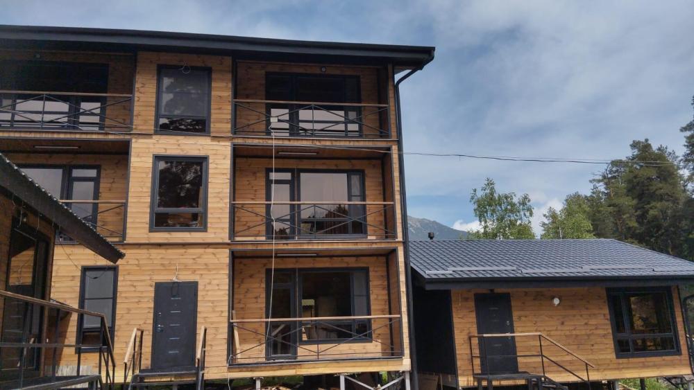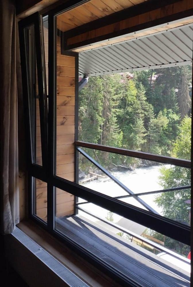 Комфортный двухкомнатный номер с балконом, с которого открывается шикарный вид на горы на реку. Номер оборудован всем необходимым. Двуспальная кровать в одной спальне и двуспальный диван в другой, современный санузел с туалетными косметическими принадлежностями, феном, мягкими полотенцами и бойлером. На первом этаже гостевого дома расположена общая кухня, баня с бассейном. На территории есть мангальная зона.