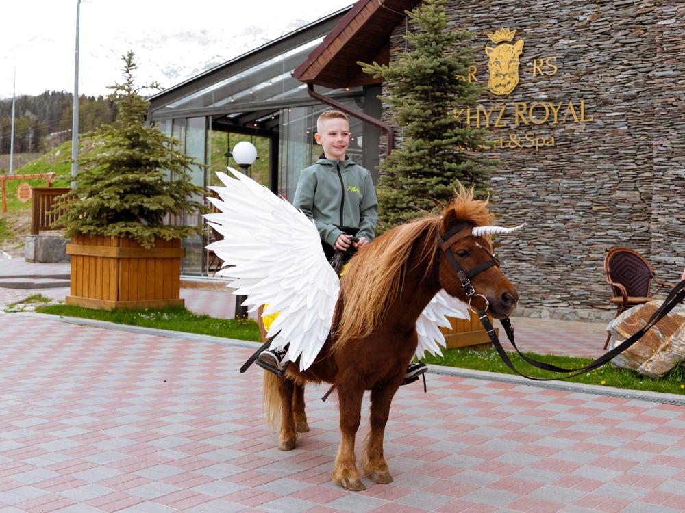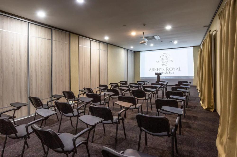 Эксклюзивный, комфортабельный номер, размером 37 кв.м. С роскошной видовой террасой, с отделенной спальней с одной двухспальной кроватью размера кинг-сайз и прекрасно декорированными гостиной и зонами отдыха. Номер Royal Люкс в зоне отдыха декорирован дизайнерской мебелью ручной работы и оборудован всем необходимым для максимального комфорта и продуман до мелочей, прекрасно подойдет для отдыха в кругу семьи, общения с друзьями или приема гостей. Просторная спальня в номере Royal Люкс оборудована зеркальным LED телевизором диагональю 32 дюйма, панорамное остекление окон позволит любоваться горными пейзажами. Номер оснащен ванной комнатой с душем с нотками роскоши в виде золотой мозаики. Размер номера: 37 м2• Бесплатный WiFi\n• Бесплатная парковка\n• Круглосуточная охрана