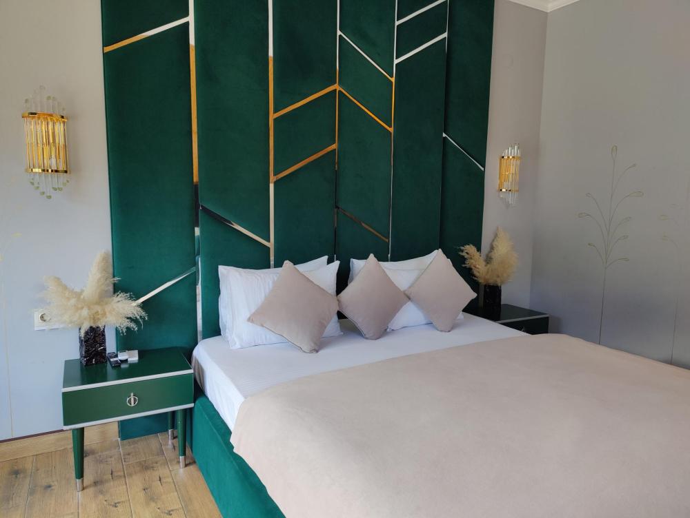Номер люкс с одной двуспальной или двумя односпальными кроватями, также в номере имеется мини диван. Комфортабельный номер со всеми удобствами. Расположен на 3 этаже. Номер с балконом и панорамным окном. В номерах имеется все, что необходимо для комфортного отдыха: халаты, тапочки, косметика, мини холодильник, чайник, чайные принадлежности, микроволновая печь, минимальный комплект посуды.
