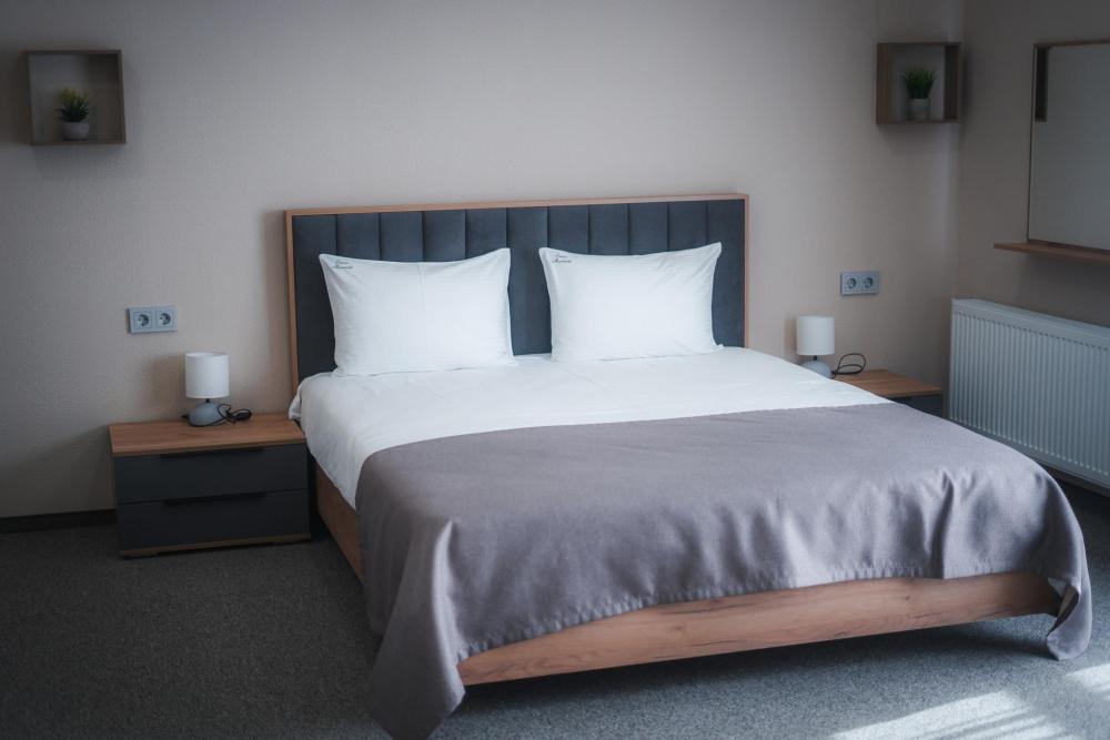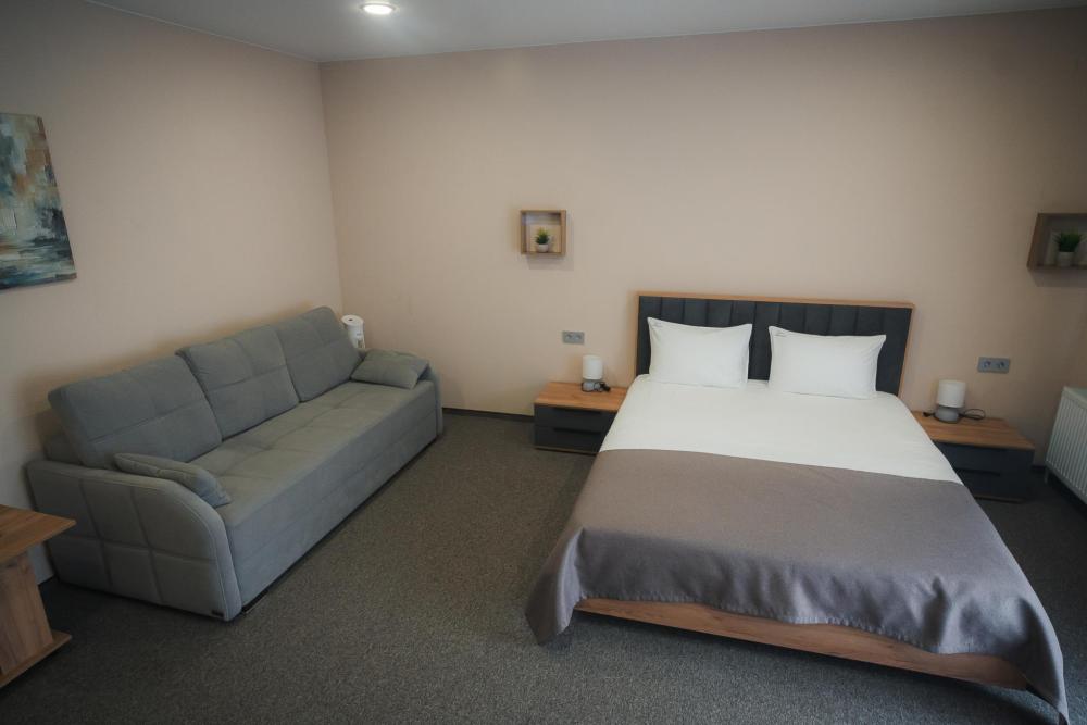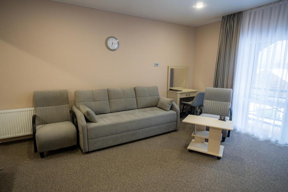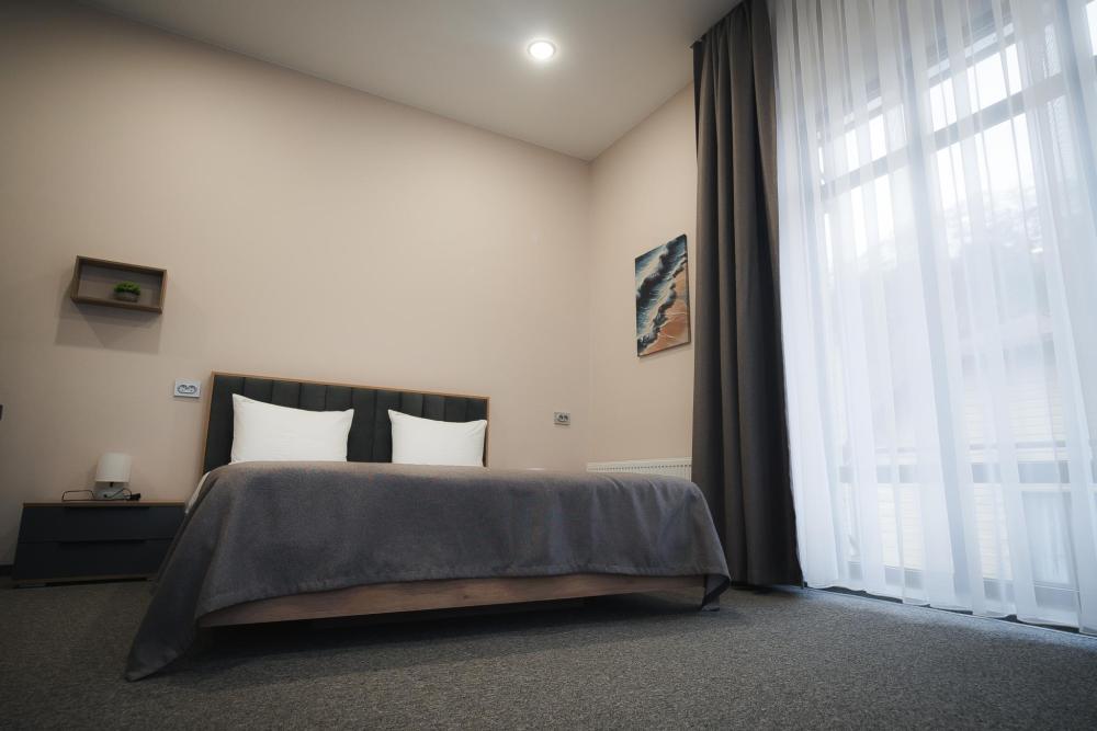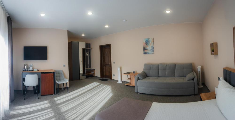 Номер имеет увеличенную площадь. Подойдет для размещения до 4 гостей. Спальные места: двуспальная кровать, раскладной диван. Для комфортного проживания имеются: собственный санузел, телевизор Smart TV, проводной Wi-Fi, сейф, фен, набор для гостей. Постельное белье, полотенца и ванные принадлежности предоставляются. В данных номерах имеется возможность выбора видовых комнат с потрясающими видами на горы.