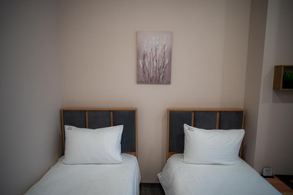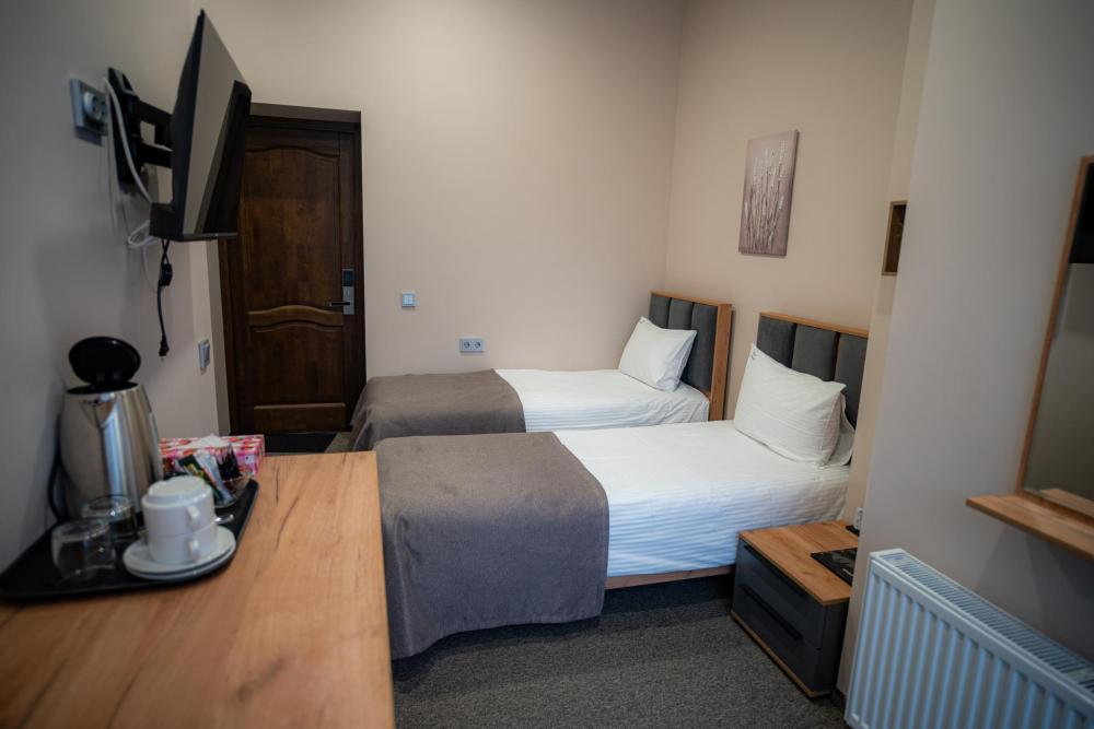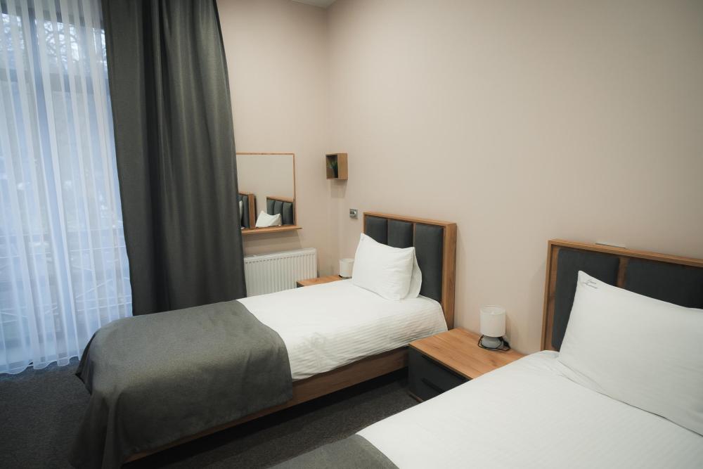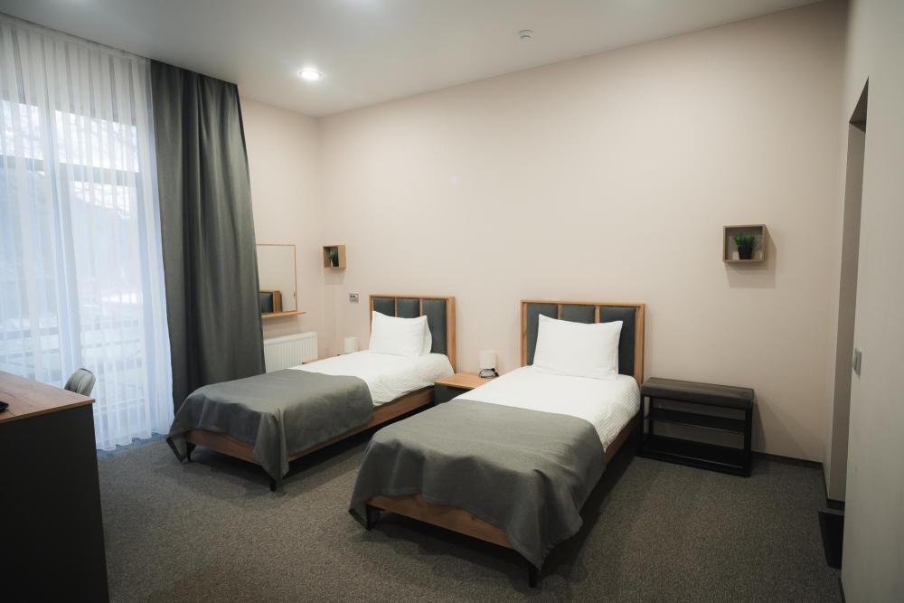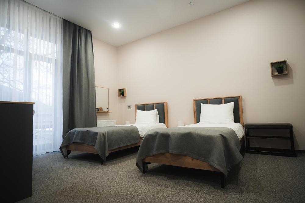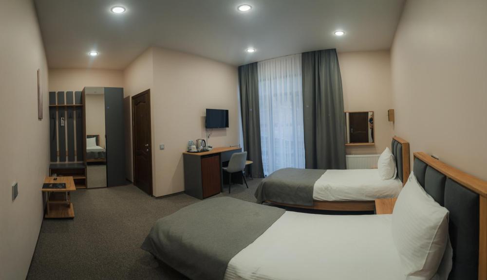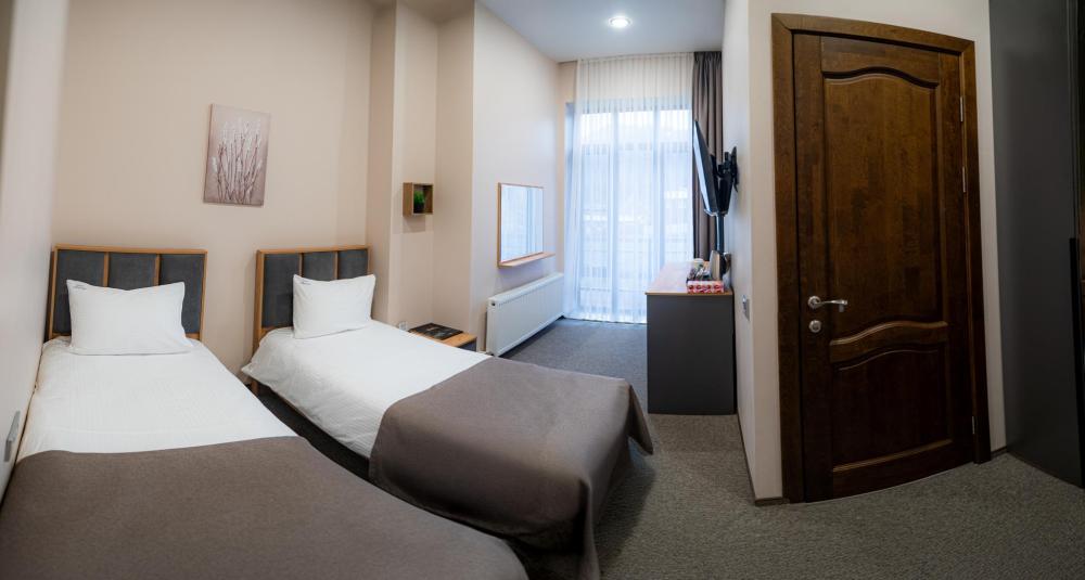 Номер подойдет для размещения до 2 гостей. Спальные места: 2 односпальные кровати с возможностью совмещения. Для комфортного проживания имеются: собственный санузел, телевизор Smart TV, проводной Wi-Fi, сейф, фен, набор для гостей. Постельное белье, полотенца и ванные принадлежности предоставляются. Есть собственный балкон с видом на горы.