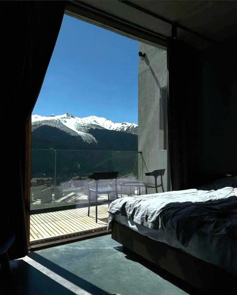 Комфортабельный номер категории standart c двуспальной кроватью, мультимедиа проектором, панорамным видом на горы и собственным балконом.