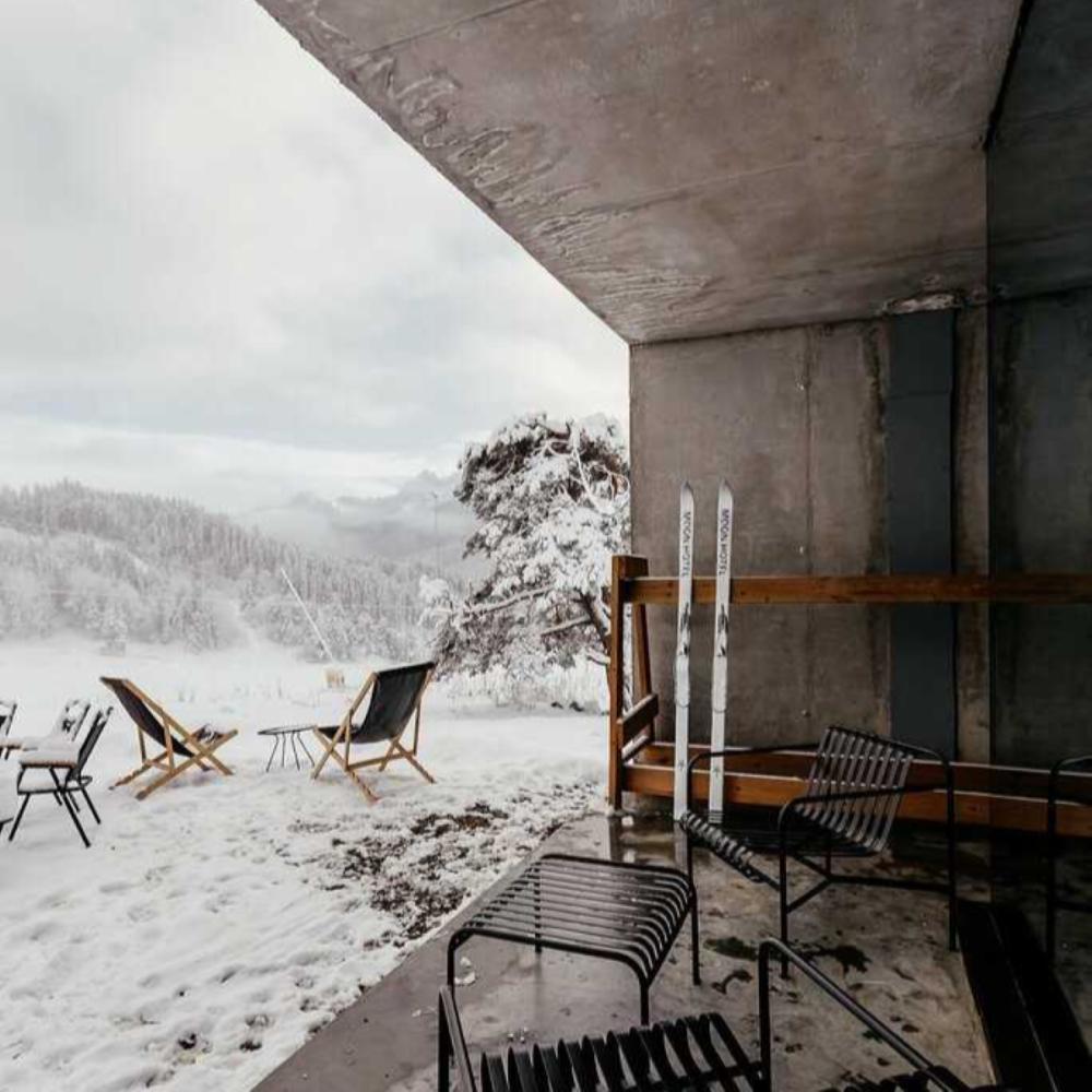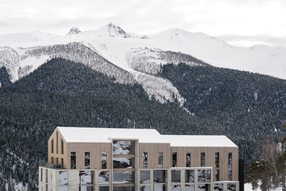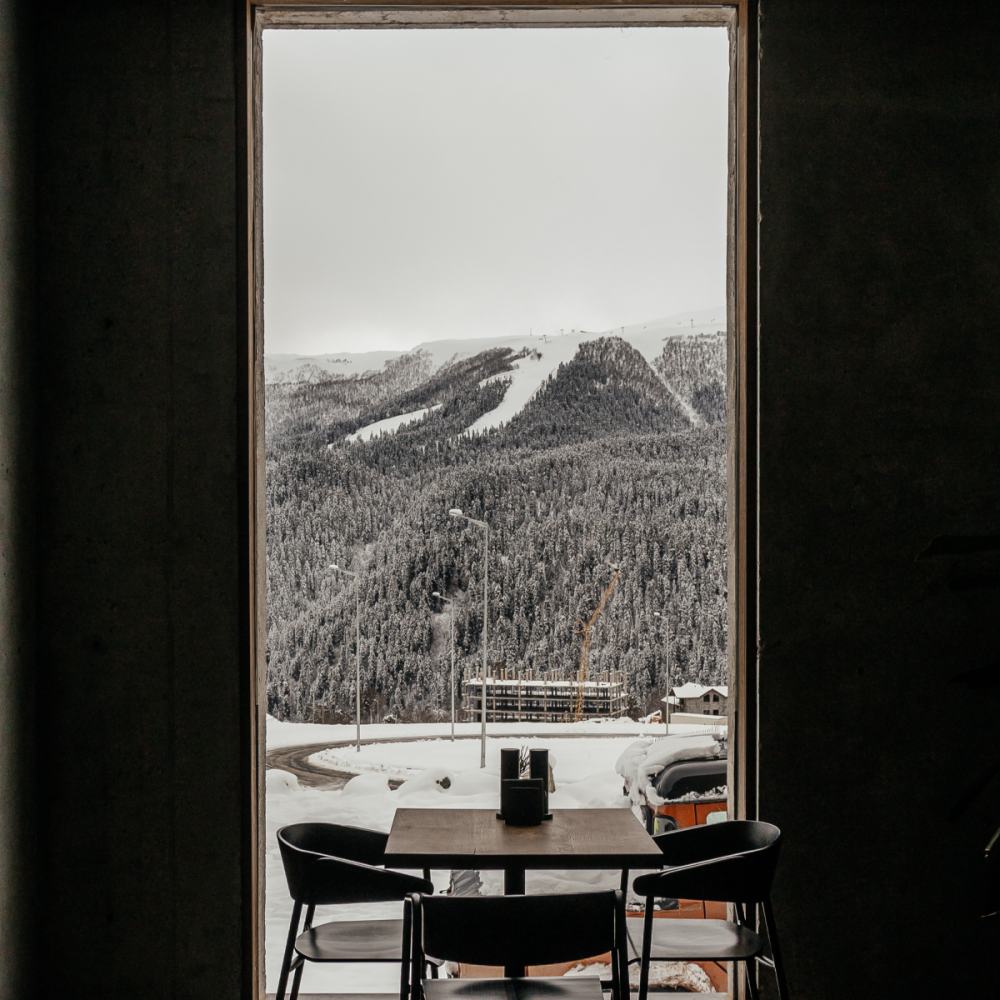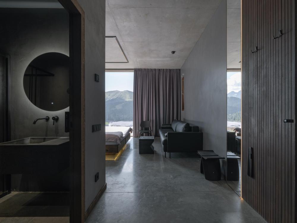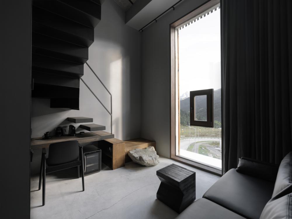 Двухуровневый люкс "Каллисто" предлагает гостям 2 комнаты и гостиную с панорамным остеклением и видом на горы. В номере есть собственная терраса с джакузи на улице и панорамными окнами.