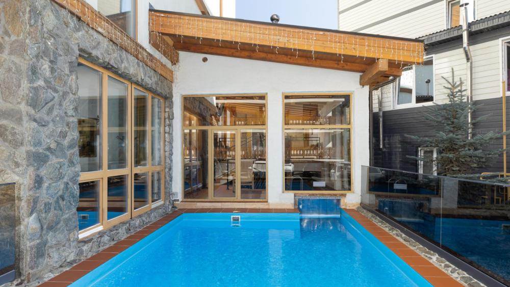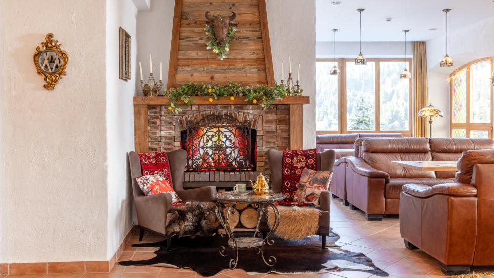 Роскошный двухэтажный люкс на пятом этаже с прекрасным видом на горы общей площадью 80 кв.м для размещения до 5-ти гостей. На первом этаже: просторная гостиная: два кожаных дивана, журнальный столик, большой телевизор, письменный стол, мини-бар, два шкафа для одежды, выход на балкон, санузел. Отдельная спальная комната: двуспальная кровать king size с ортопедическим матрасом, телевизор, письменный стол, выход на балкон, ванная комната. На втором этаже: мансарда с полутораспальной кроватью с ортопедическим матрасом, отдельная спальная комната с полутораспальной кроватью с ортопедическим матрасом, ванная комната.