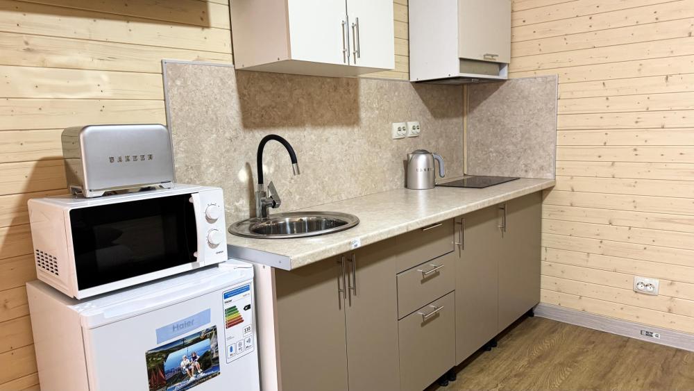 Уютный однокомнатный номер предназначен для комфортного проживания двух человек. Двуспальная кровать или две односпальных кровати. Сан. узел (с душевой кабиной), фен, косметические принадлежности (1 раз на заезд-шампунь, гель для душа). ЖК телевизор, холодильник, чайник, набор посуды, прикроватные лампы. Предоставляется набор полотенец – банное, лицевое, для ног по количеству лиц, проживающих в номере. Площадь номера – 17 кв.м. Предоставляется сейф по запросу.