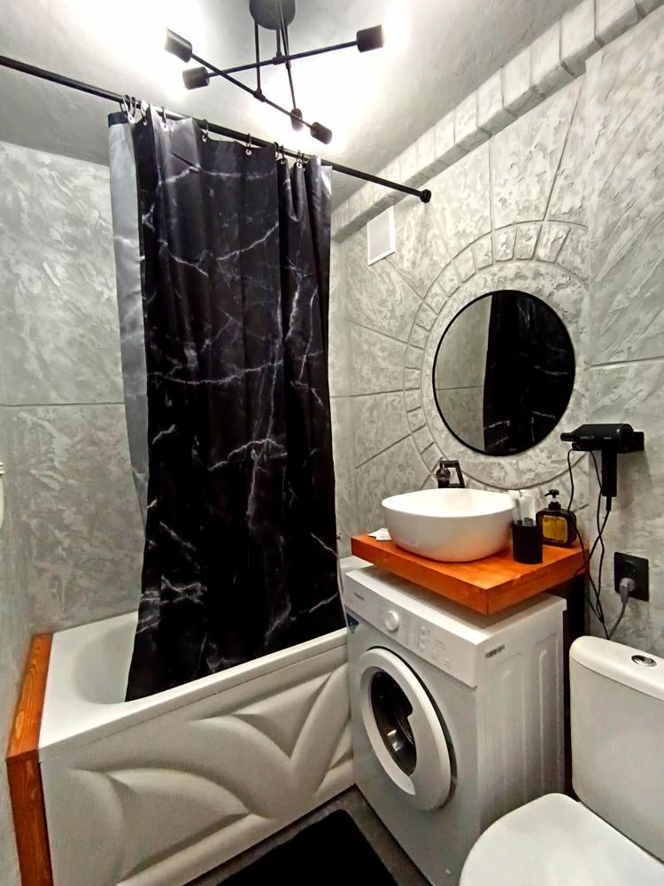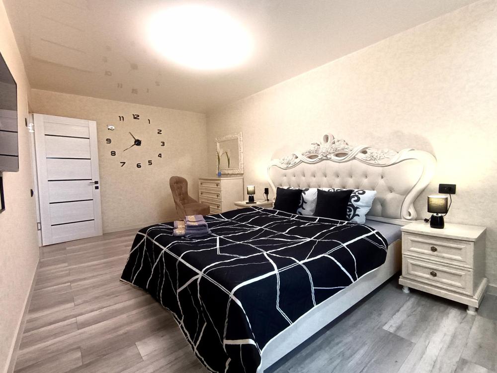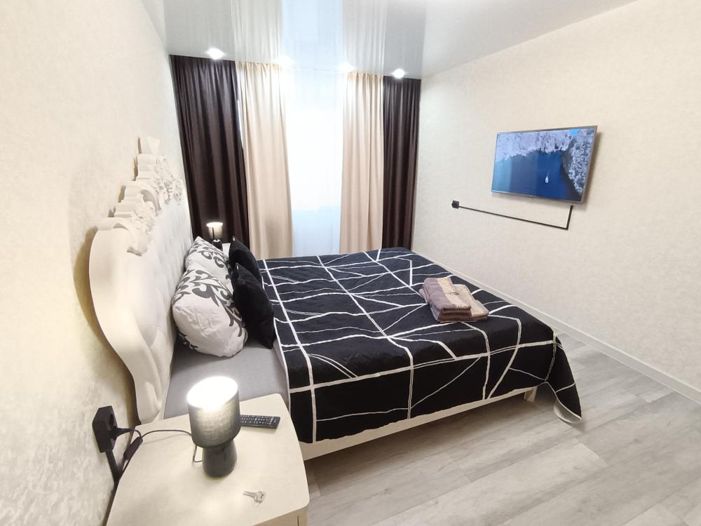 Однокомнатные апартаменты подойдут для возможного размещения 2 гостей. Спальные места представлены в виде 1 двуспальной кровати. Из мебели имеются: кухонный гарнитур с необходимой посудой и столовыми приборами для приготовления и подачи еды, стол, стулья, двуспальная кровать, шкаф, гладильная доска и сушилка для белья. Из необходимой техники: микроволновая печь, холодильник, стиральная машина, чайник, плита, утюг, фен. Доступны WI-FI и SMART TV. На территории двора есть парковка.