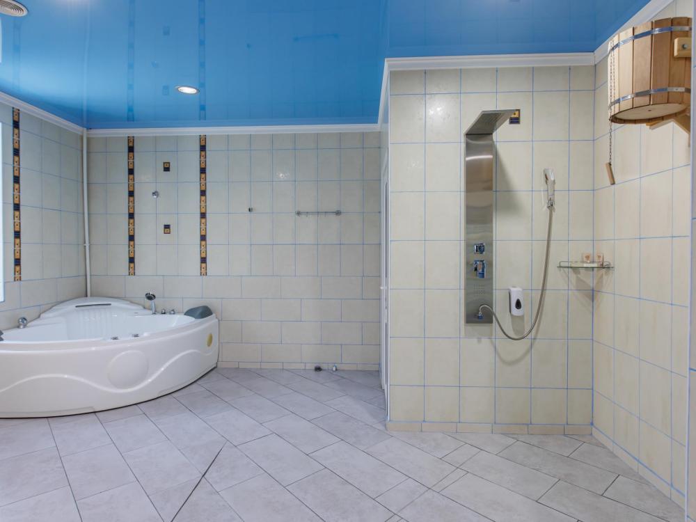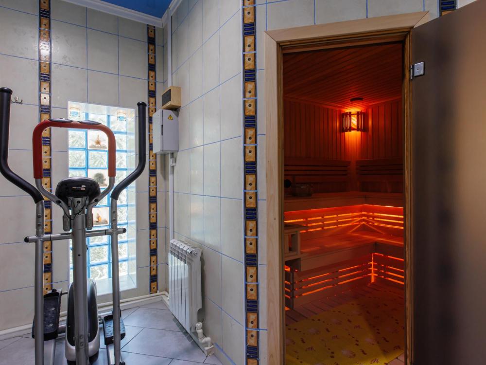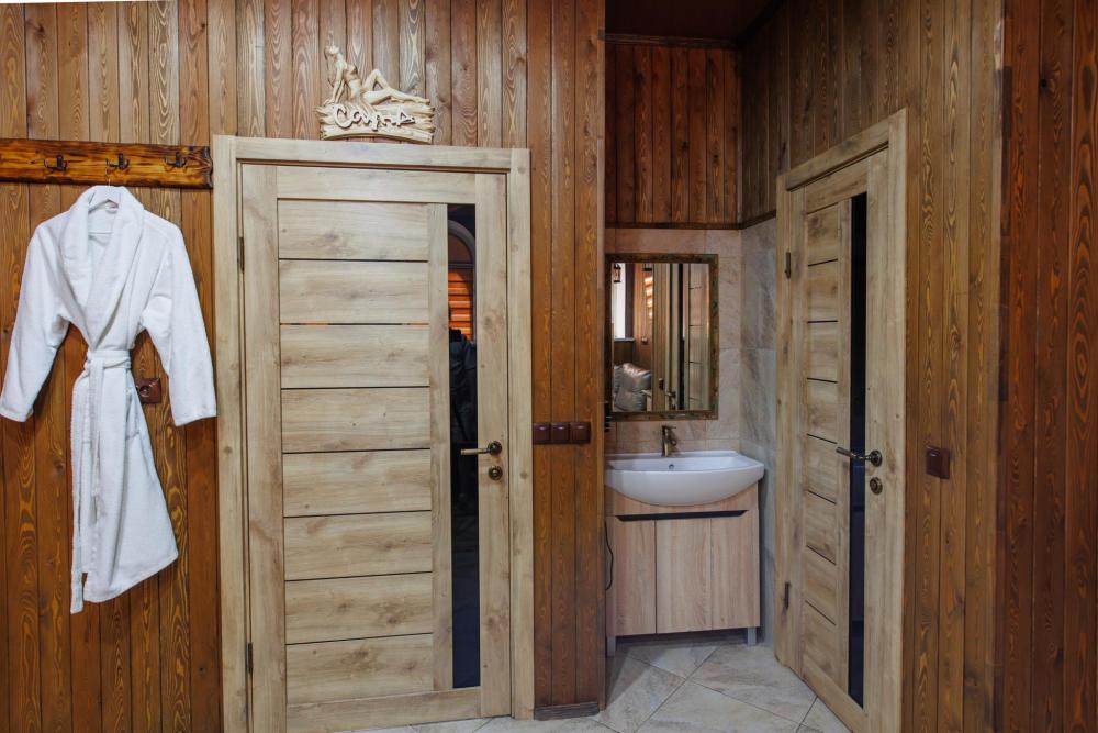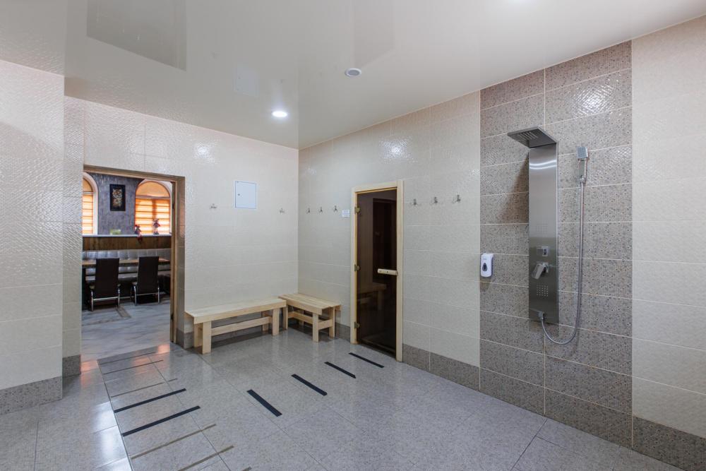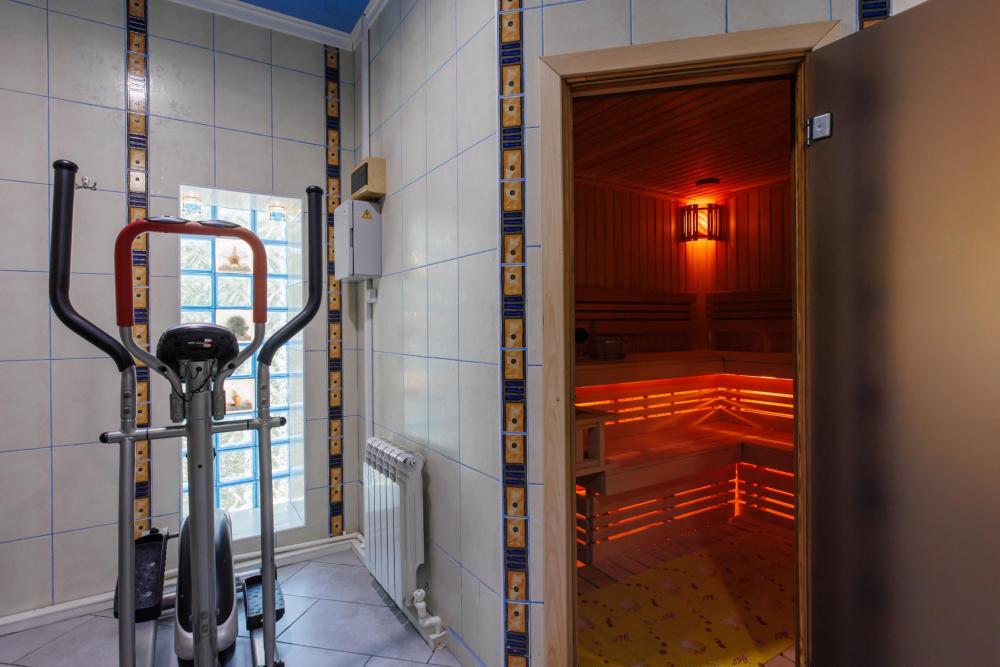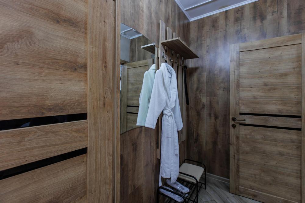 Номер люкс с кухней общей площадью 80 кв.м. для размещения до 4-х гостей (с учетом дополнительного места). Оснащение номера: двухспальная кровать, прикроватные тумбочки, кондиционер, диван, телевизор, холодильник, чайник, обеденная зона, столовые приборы, микроволновая печь, ванная комната с душем, сауна (за дополнительную плату), фен, туалетно-гигиенические принадлежности.